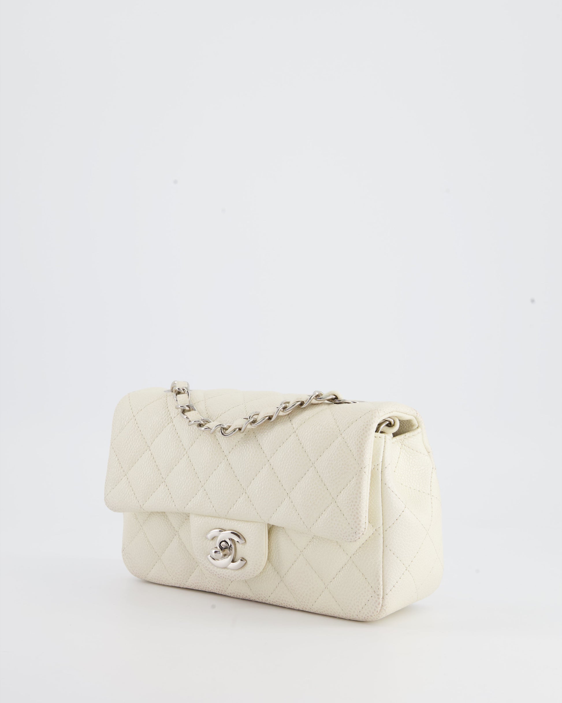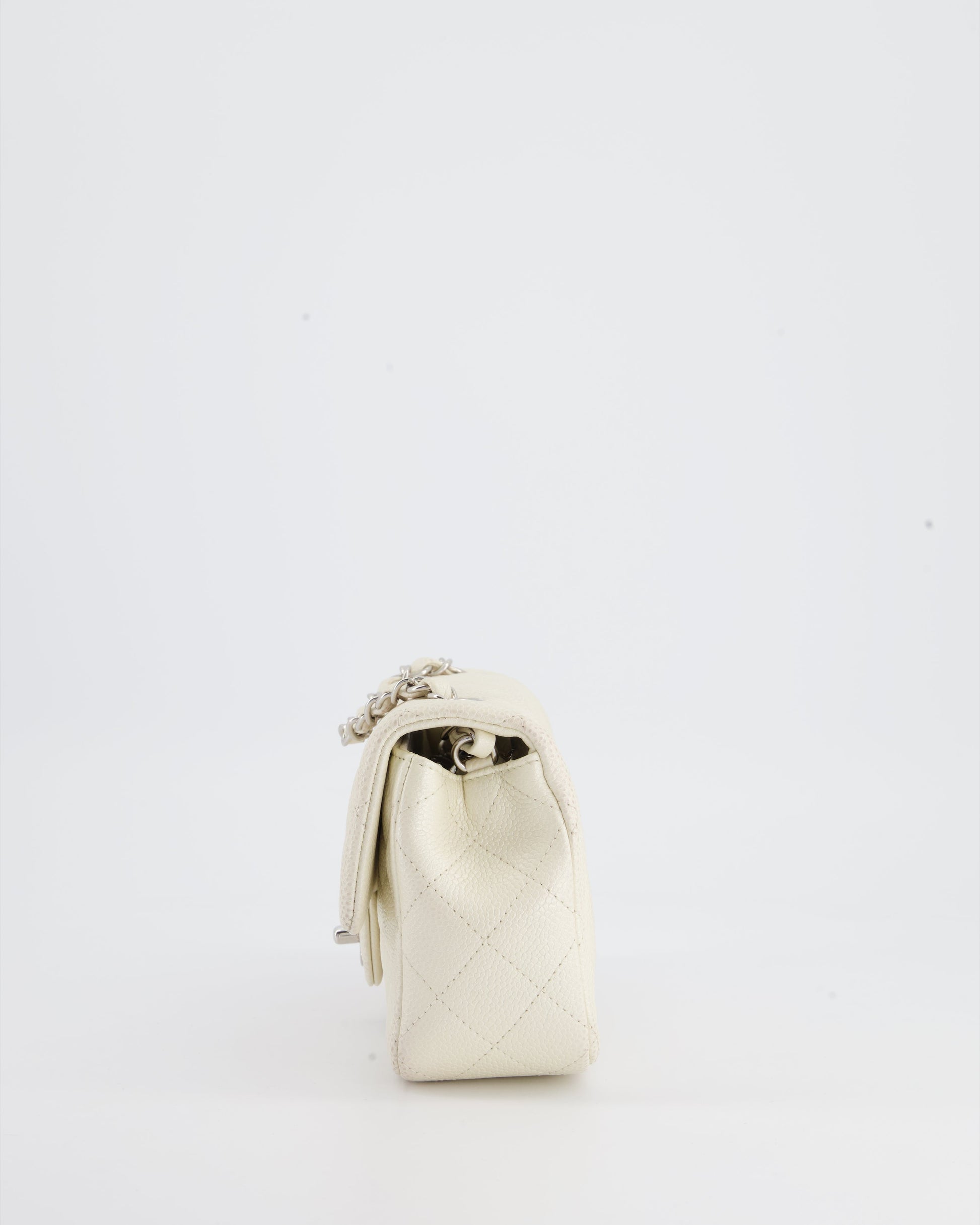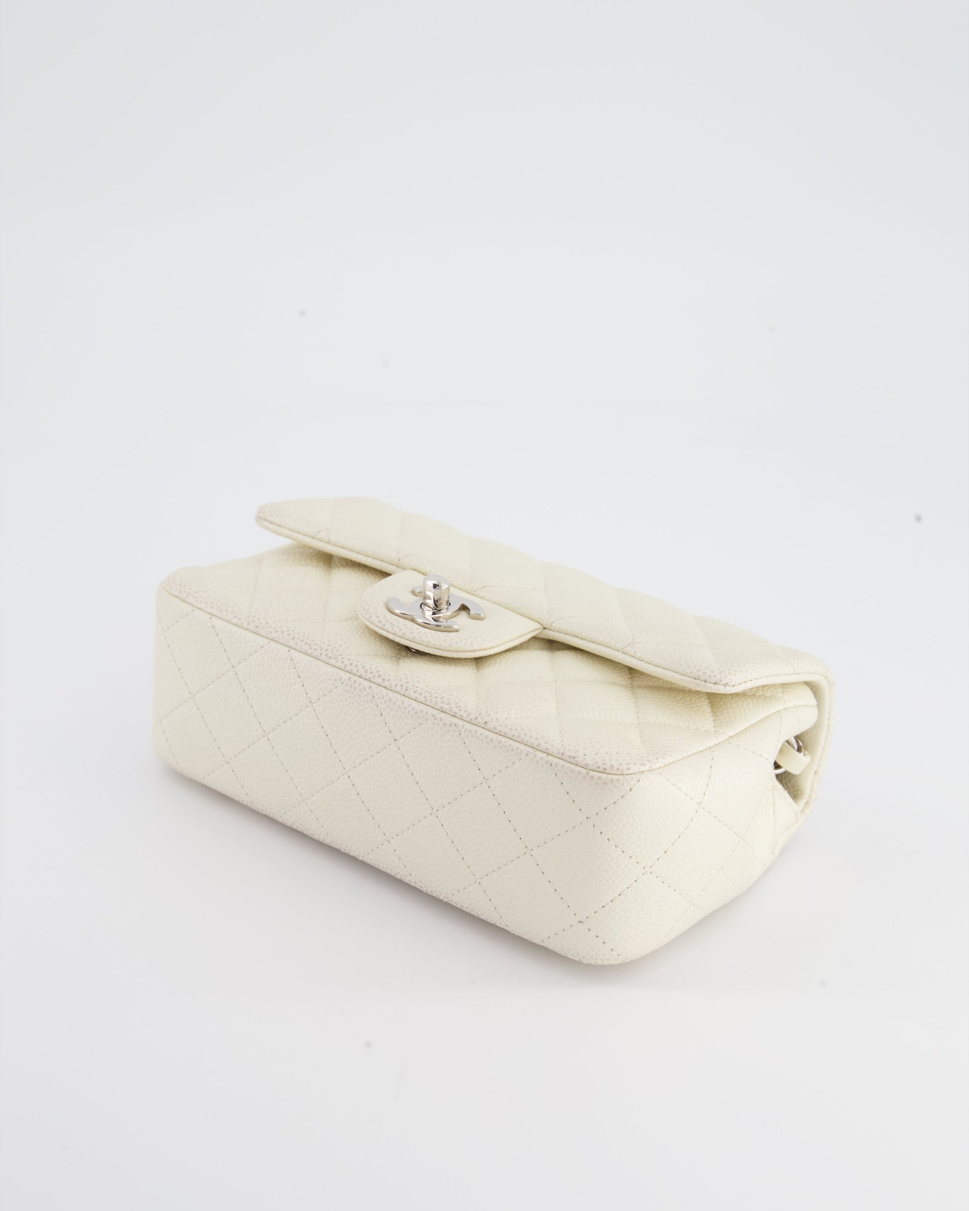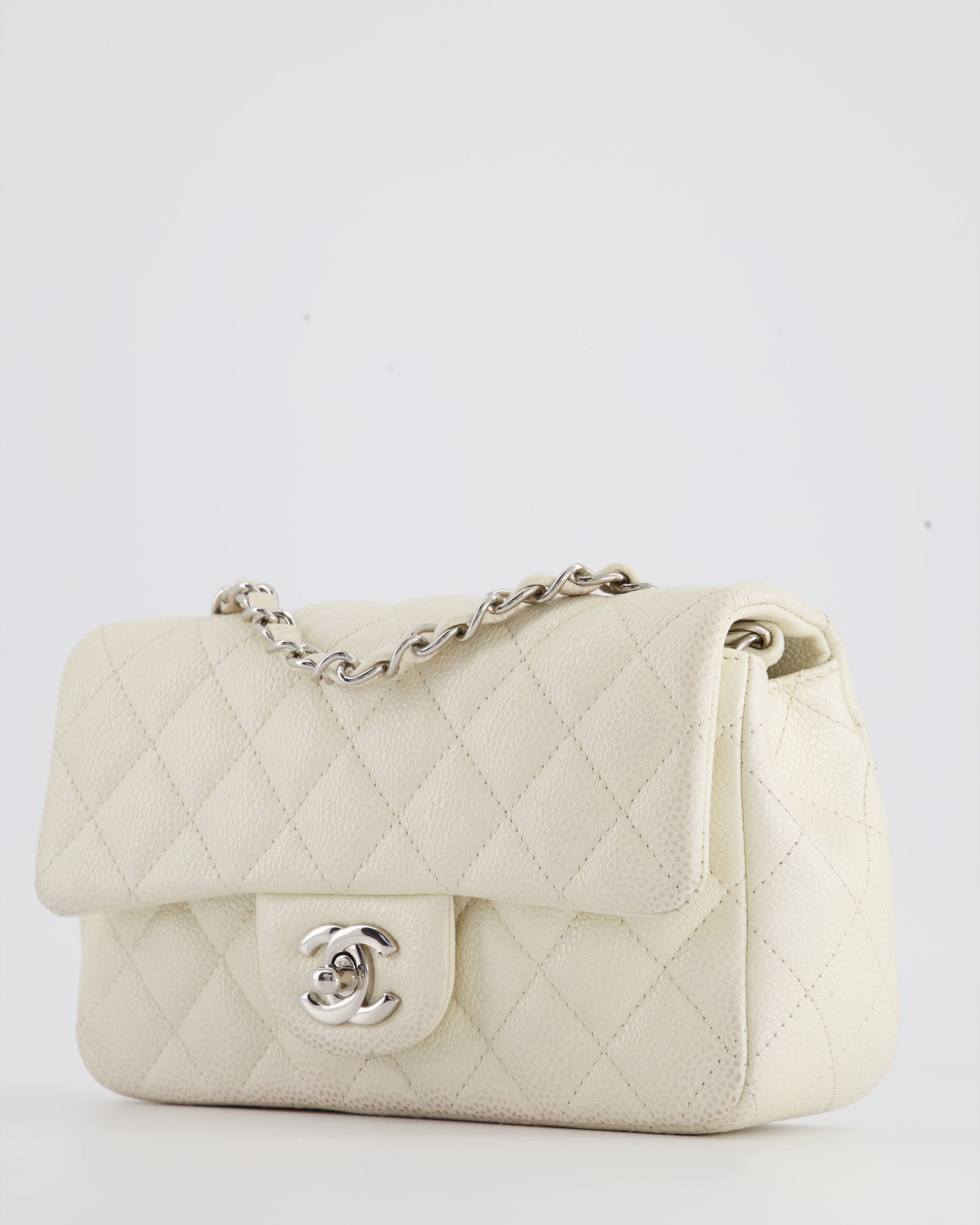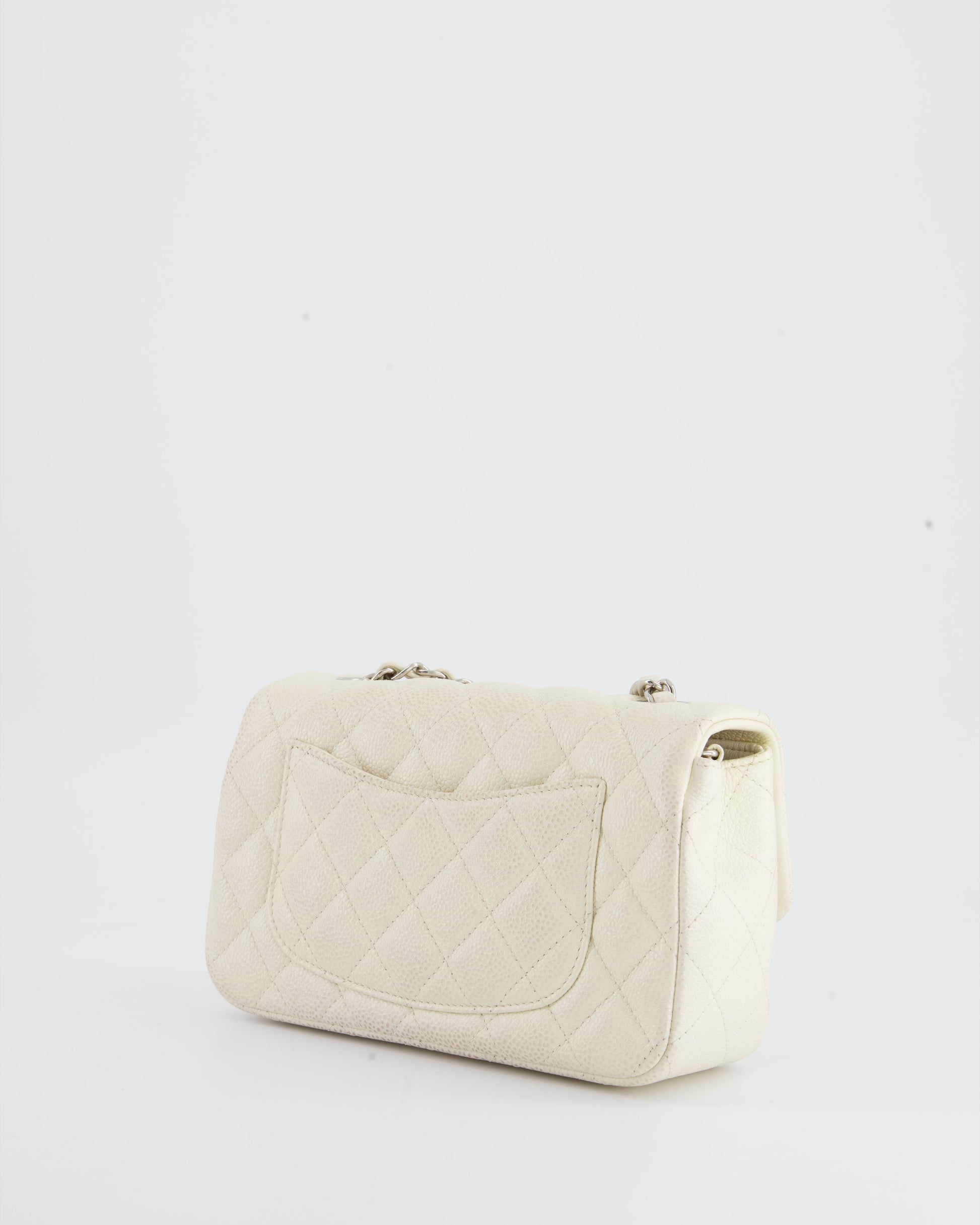 Chanel White Pearlescent Caviar Mini Rectangular Single Flap Bag with Silver Hardware