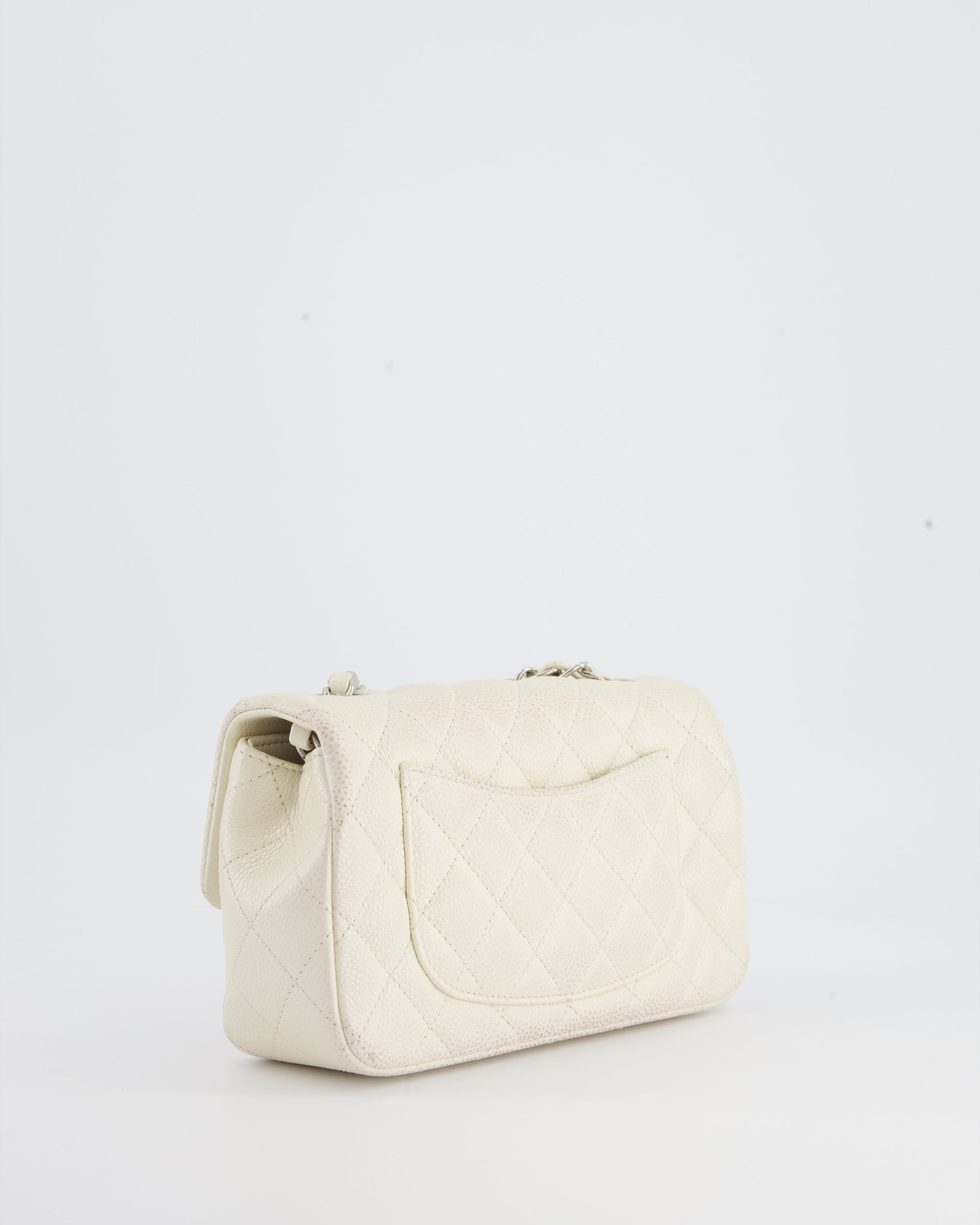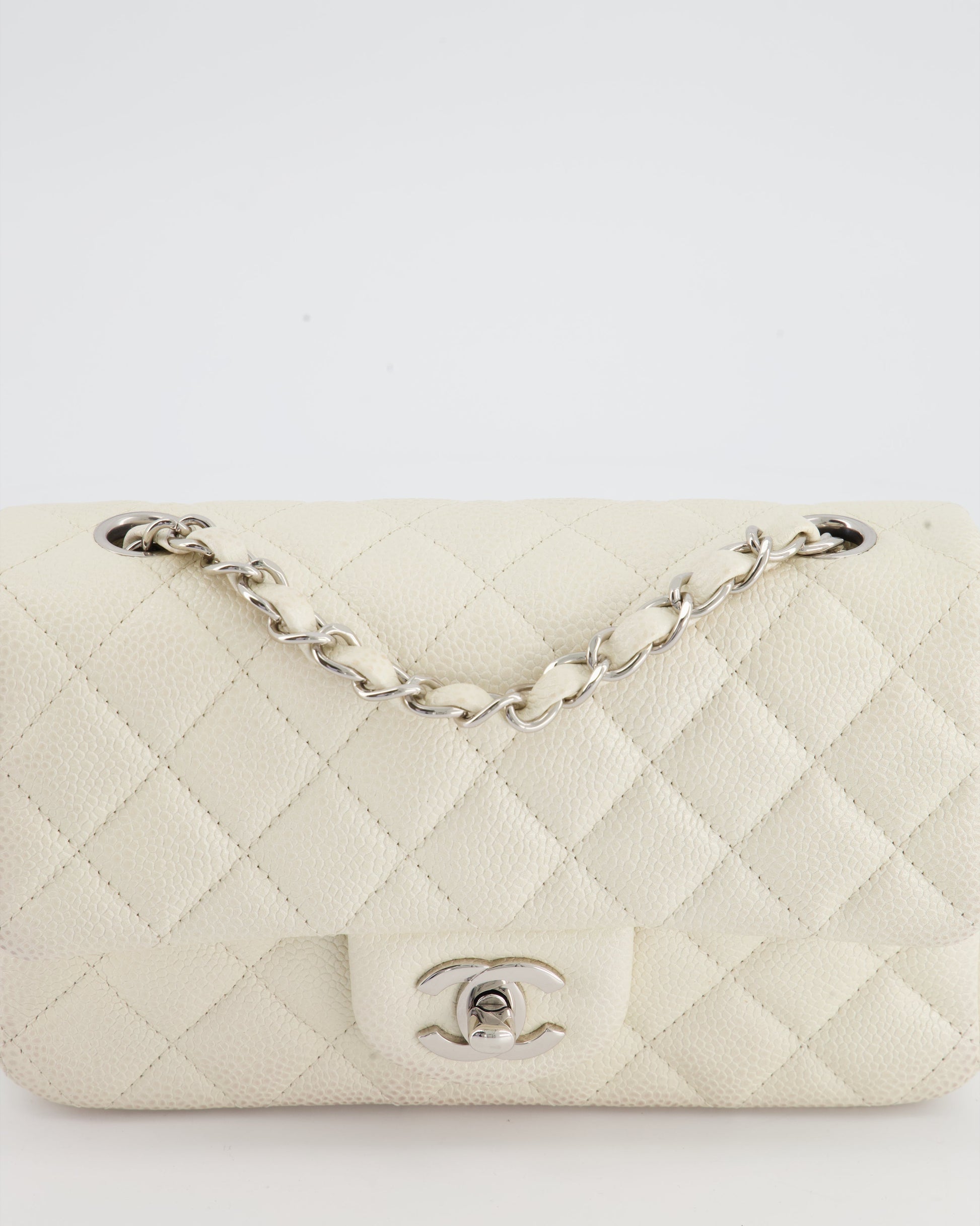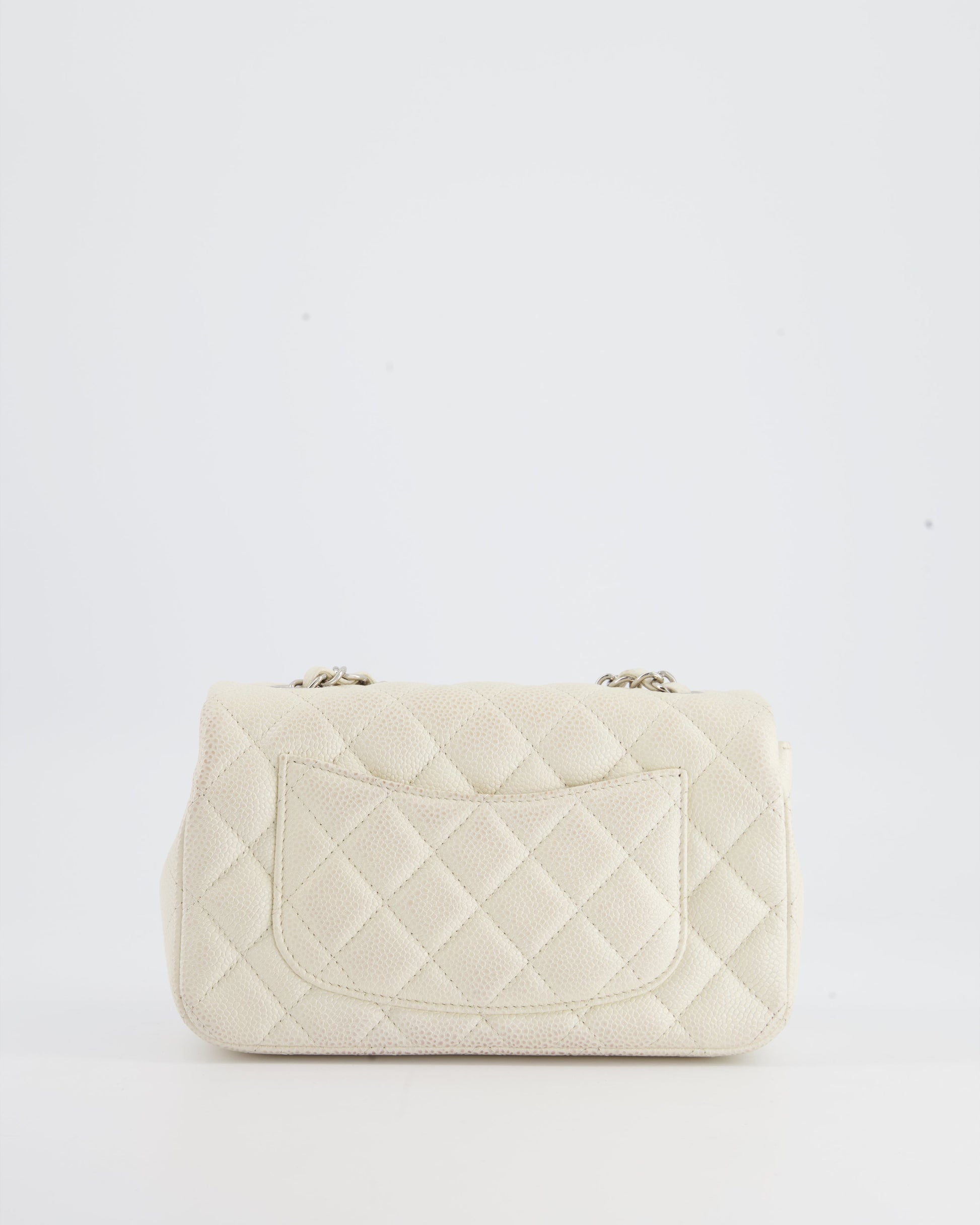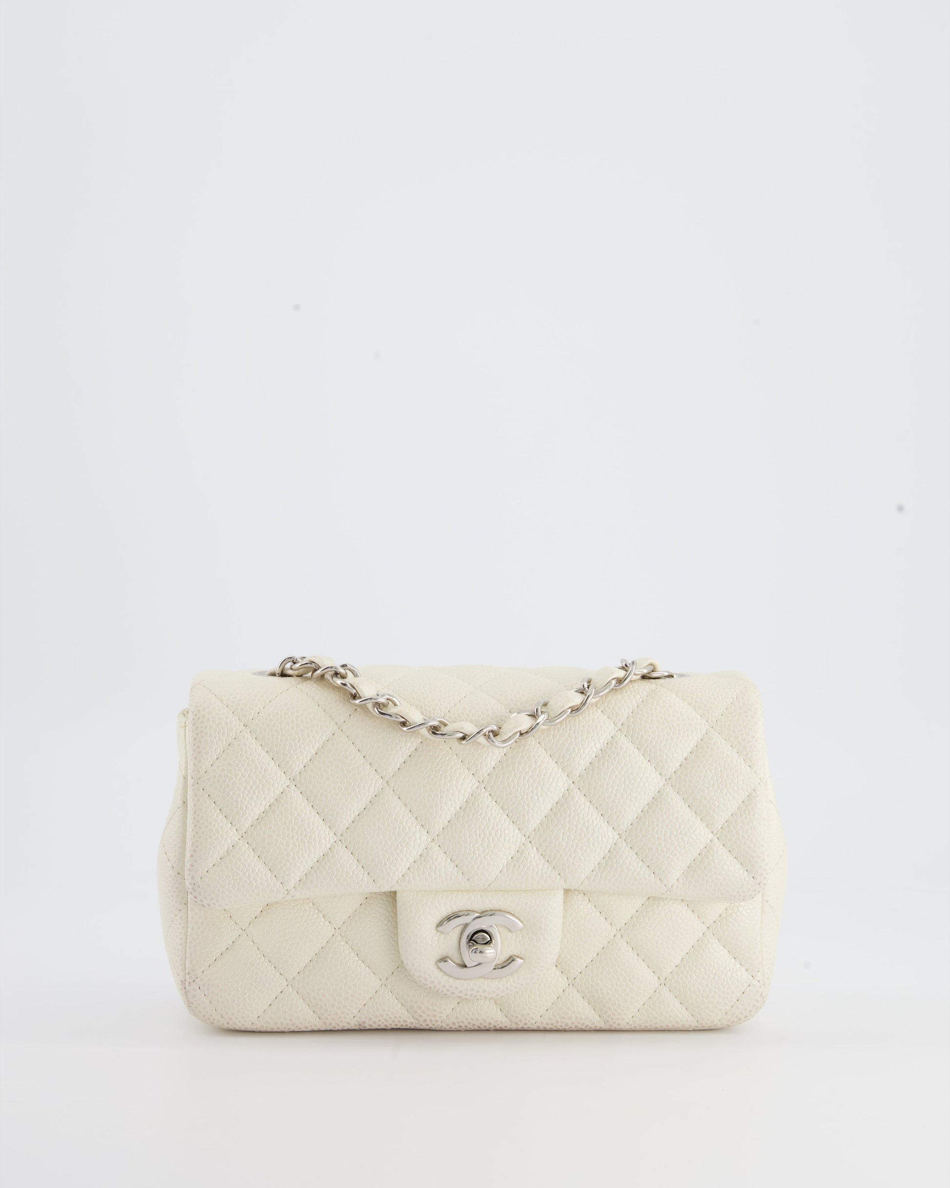 Chanel White Pearlescent Caviar Mini Rectangular Single Flap Bag with Silver Hardware