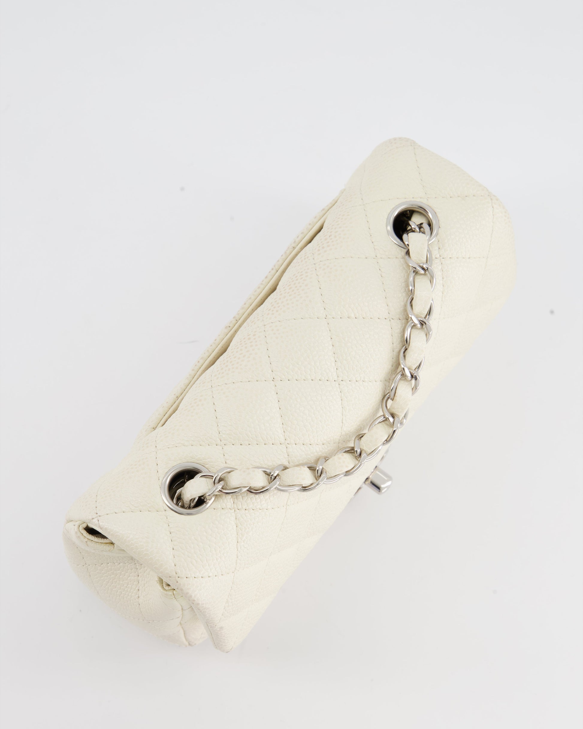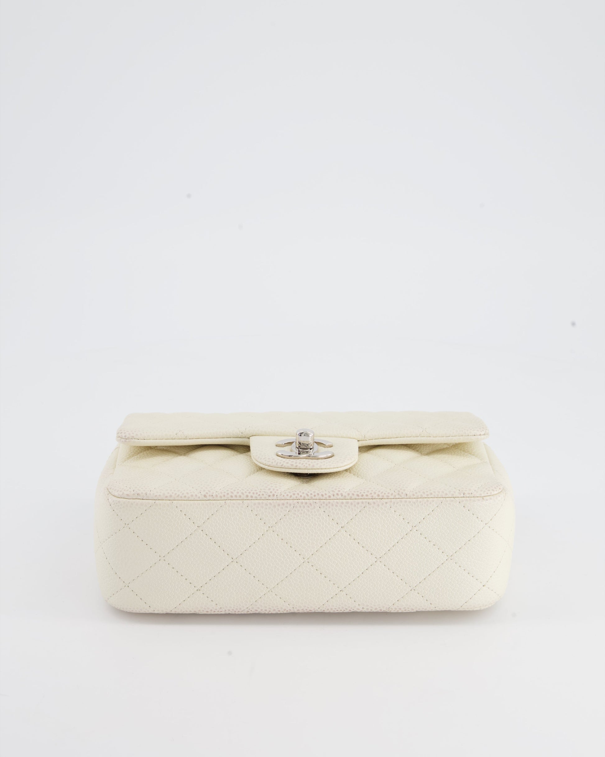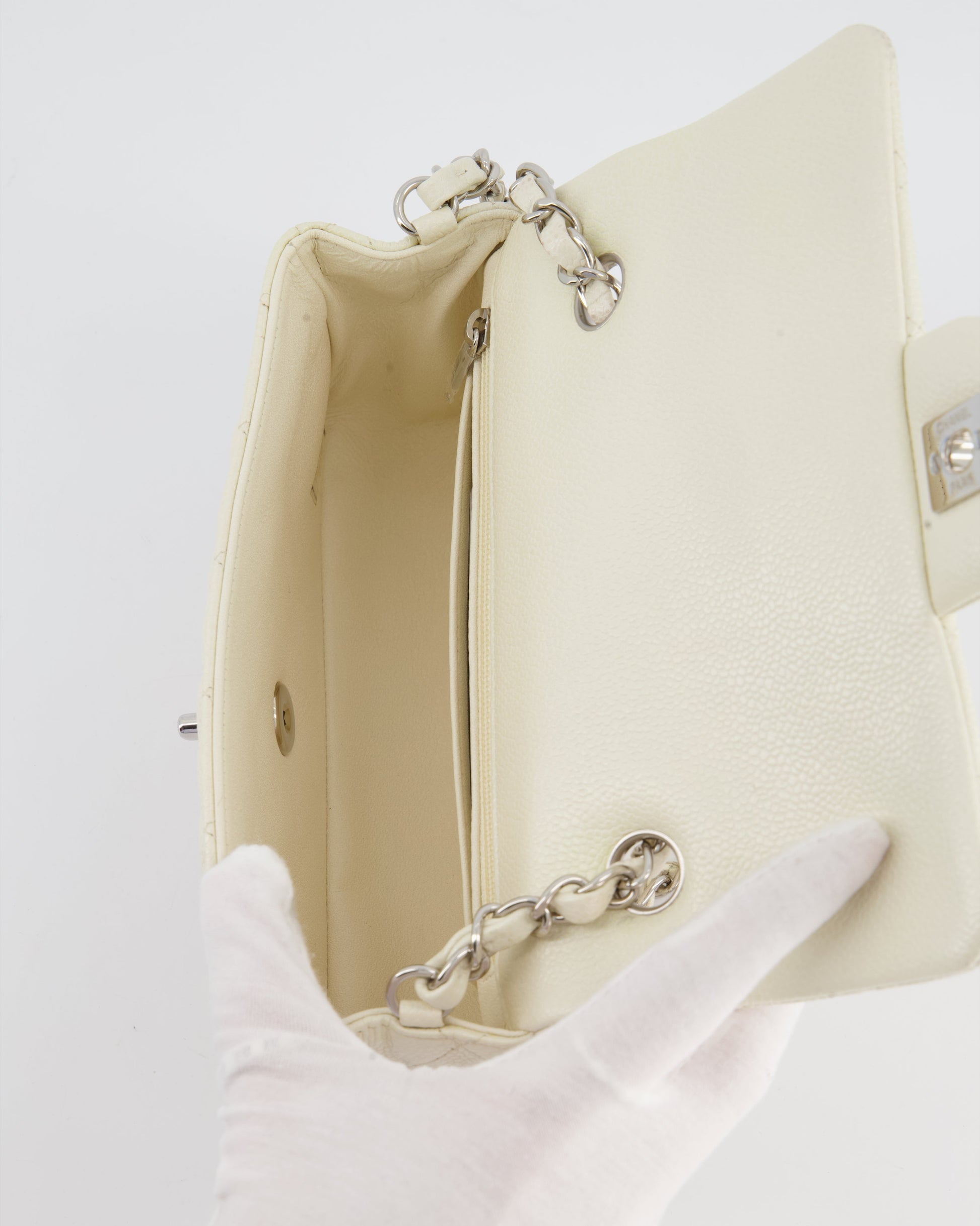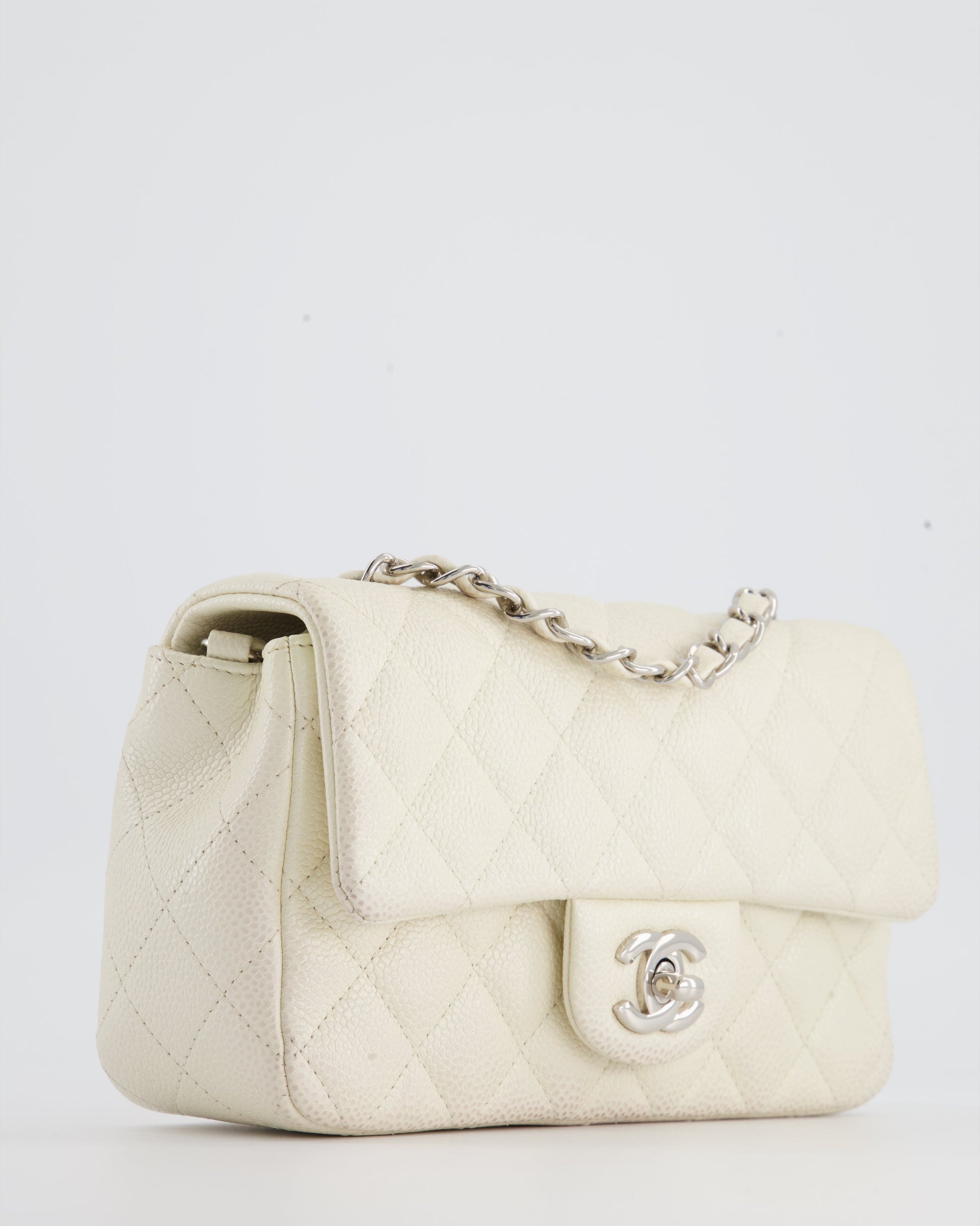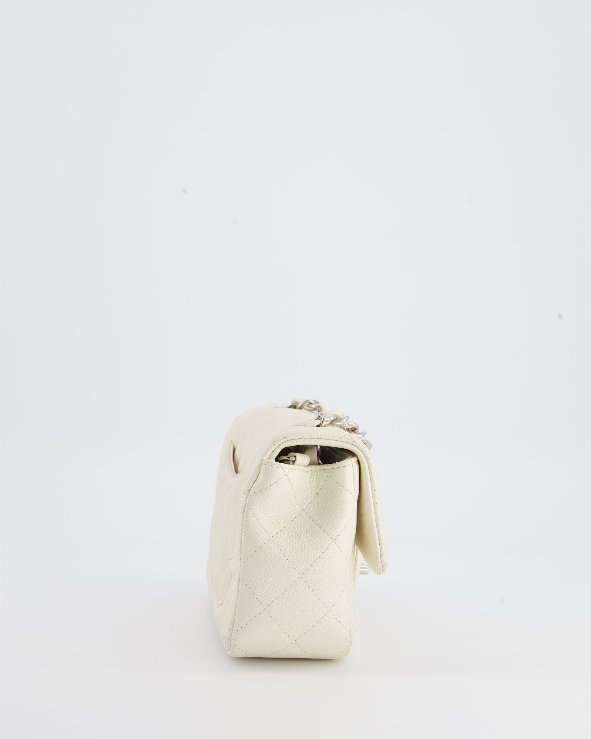 Chanel White Pearlescent Caviar Mini Rectangular Single Flap Bag with Silver Hardware