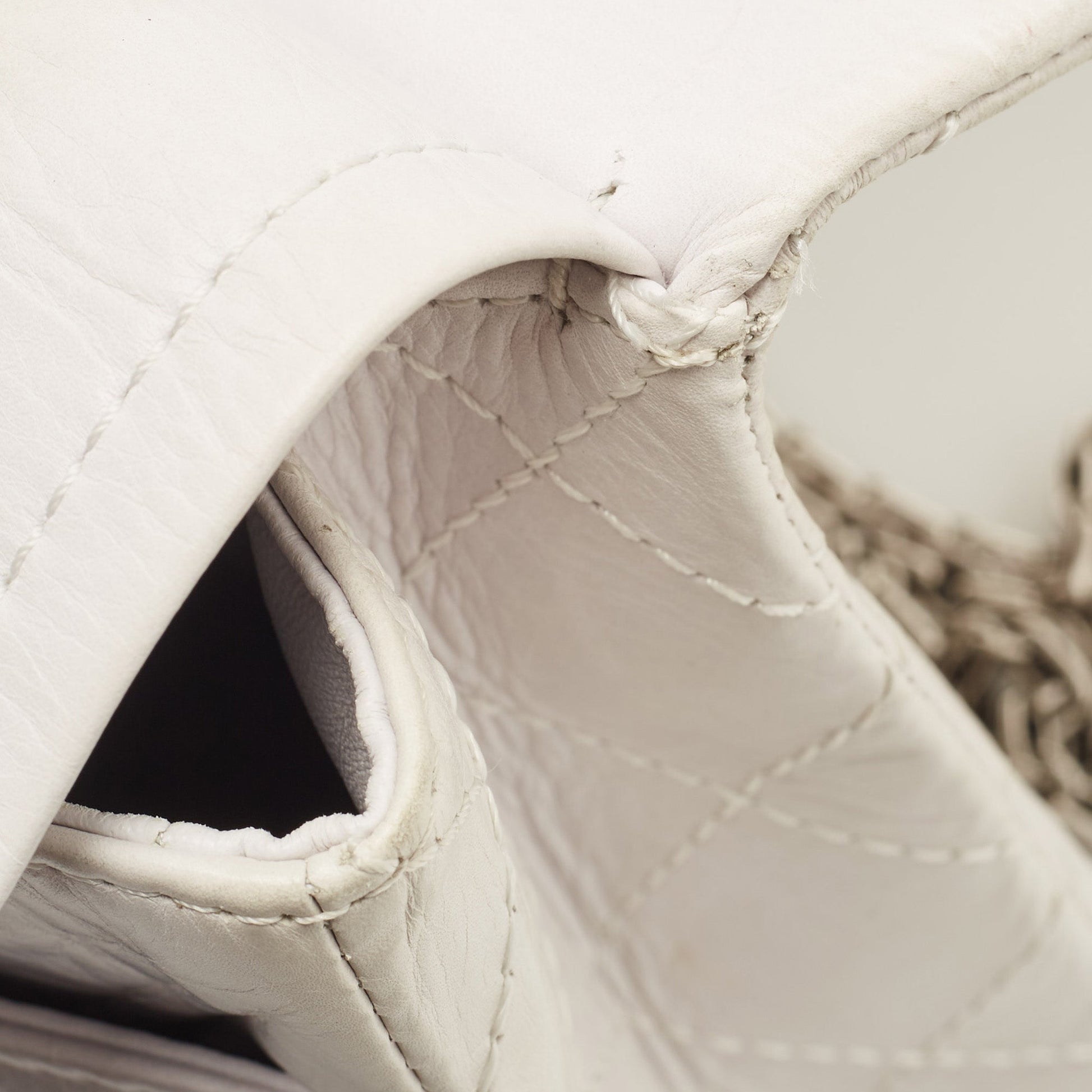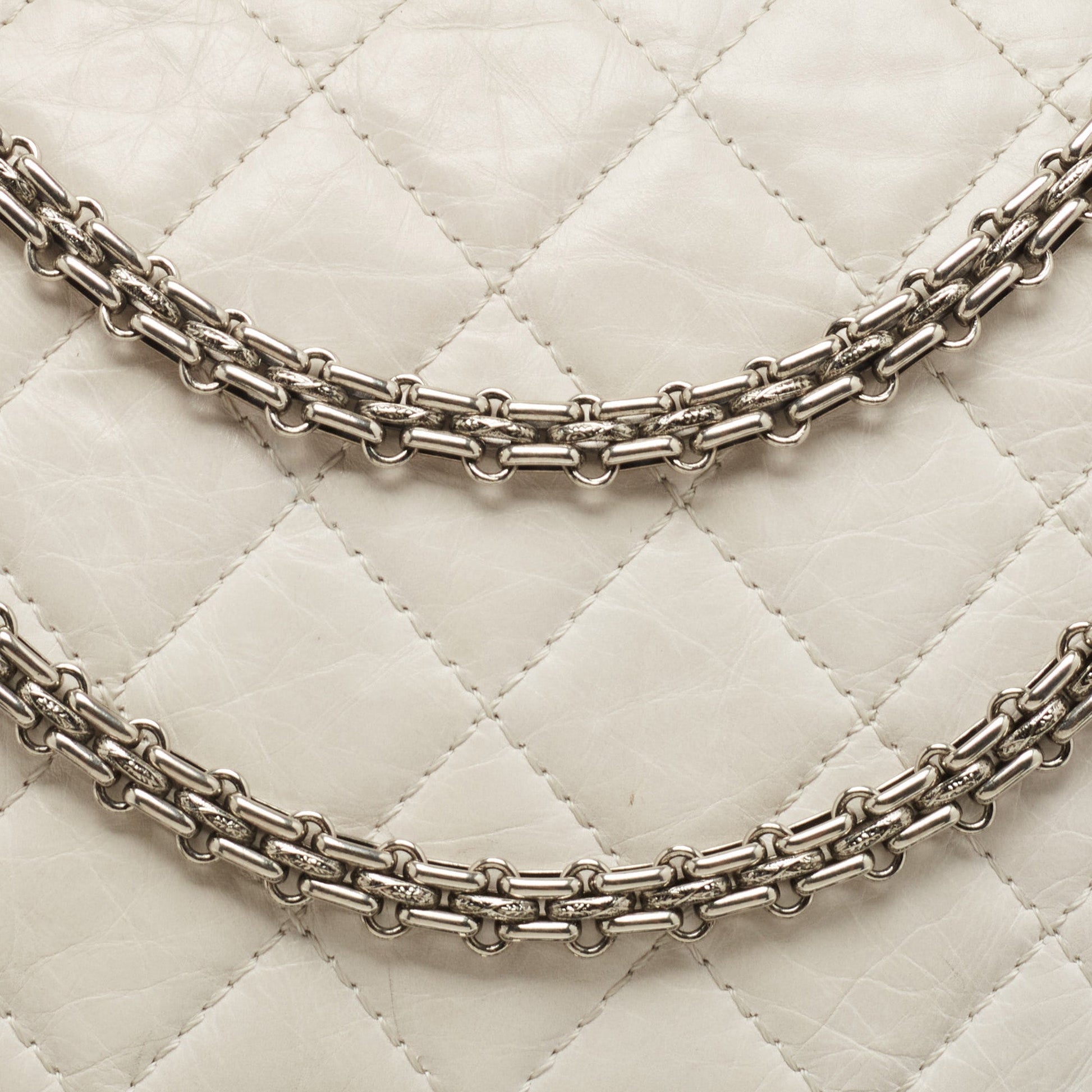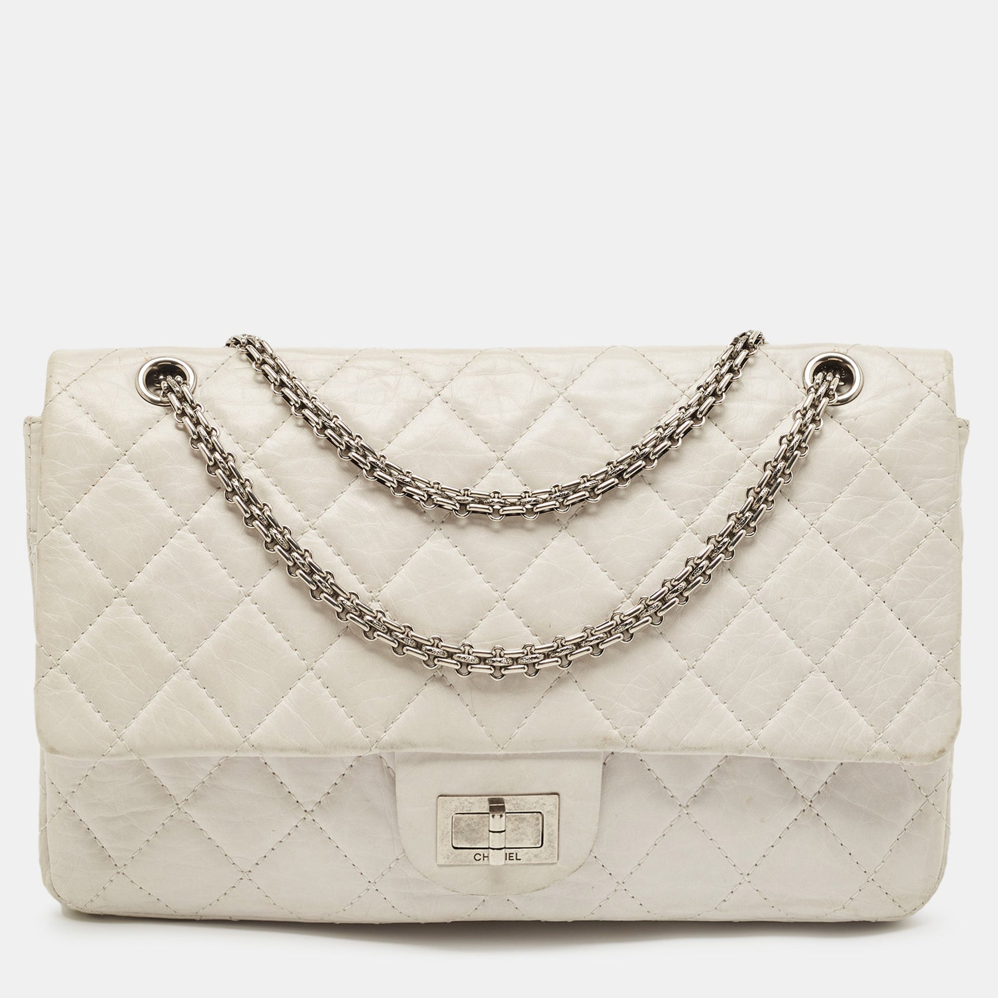 CHANEL White Quilted Aged Leather Reissue 2.55 Classic 227 Flap Bag