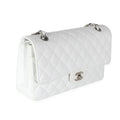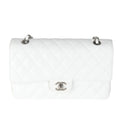 CHANEL White Quilted Caviar Medium Classic Double Flap Bag
