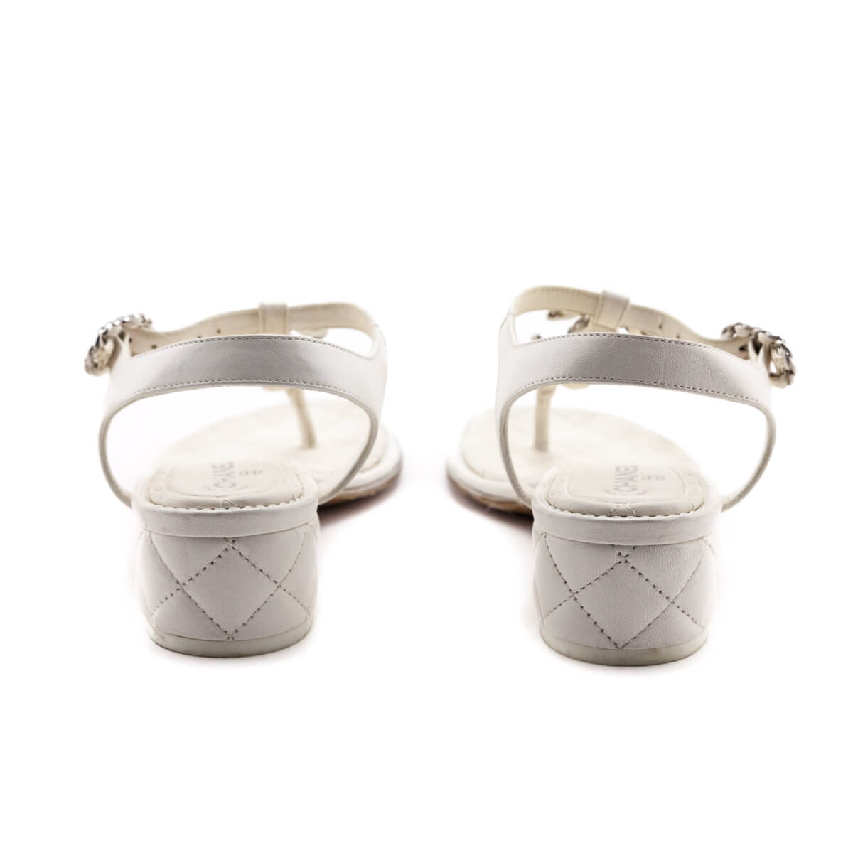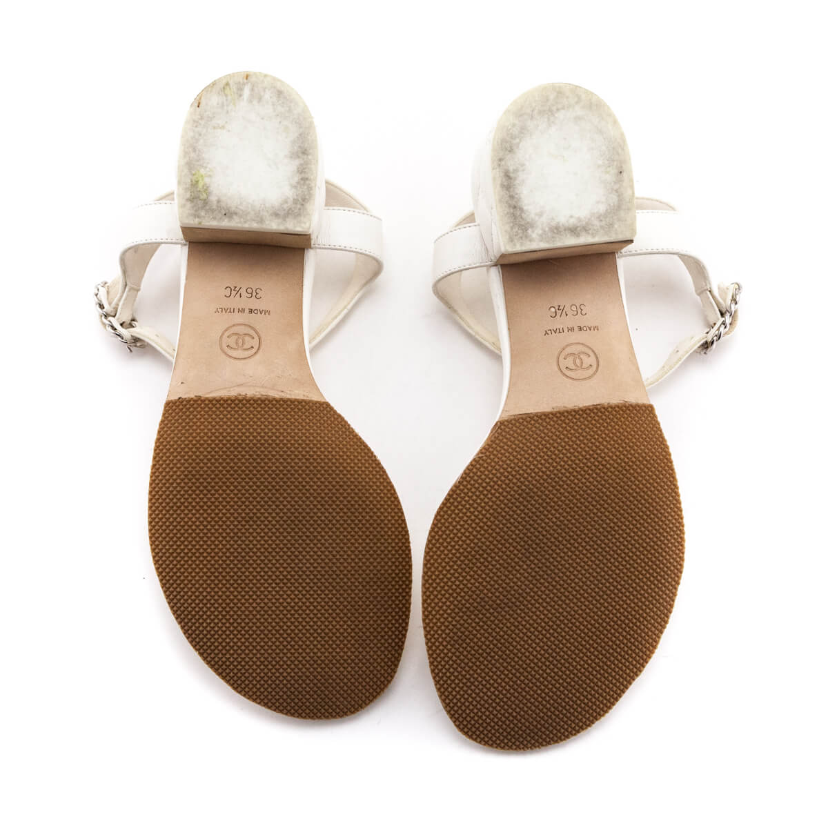 Chanel White Quilted Chain CC T-Strap Sandals Size US 6.5 | EU 36.5