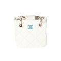 CHANEL White Quilted Lambskin Tiny Shopping Bag