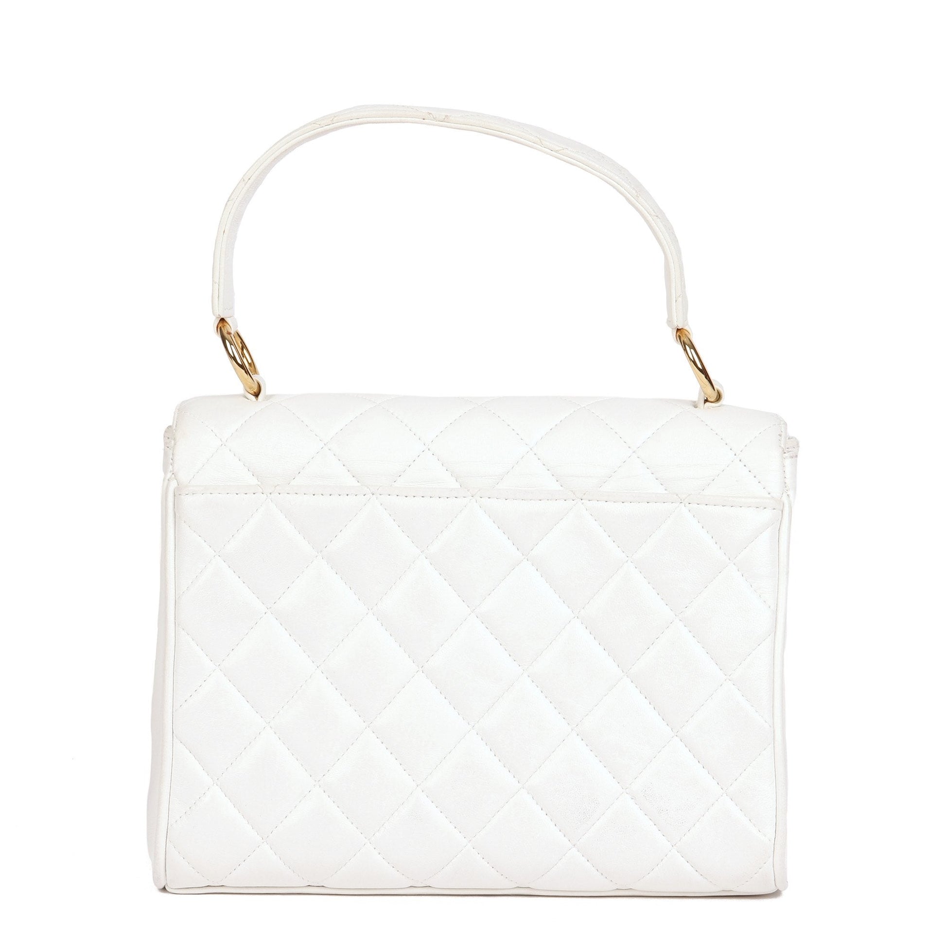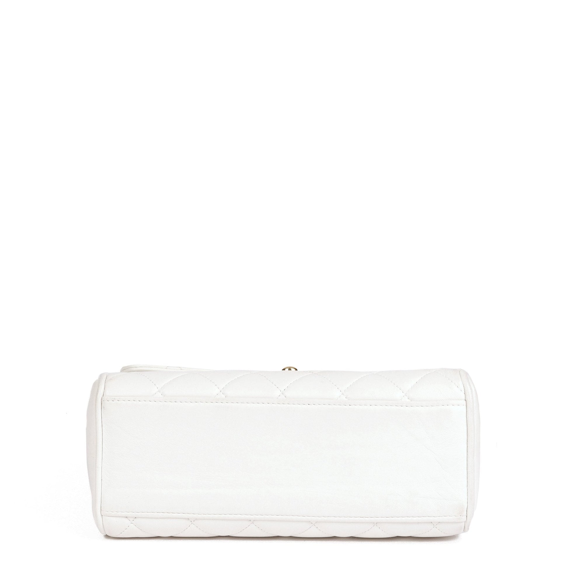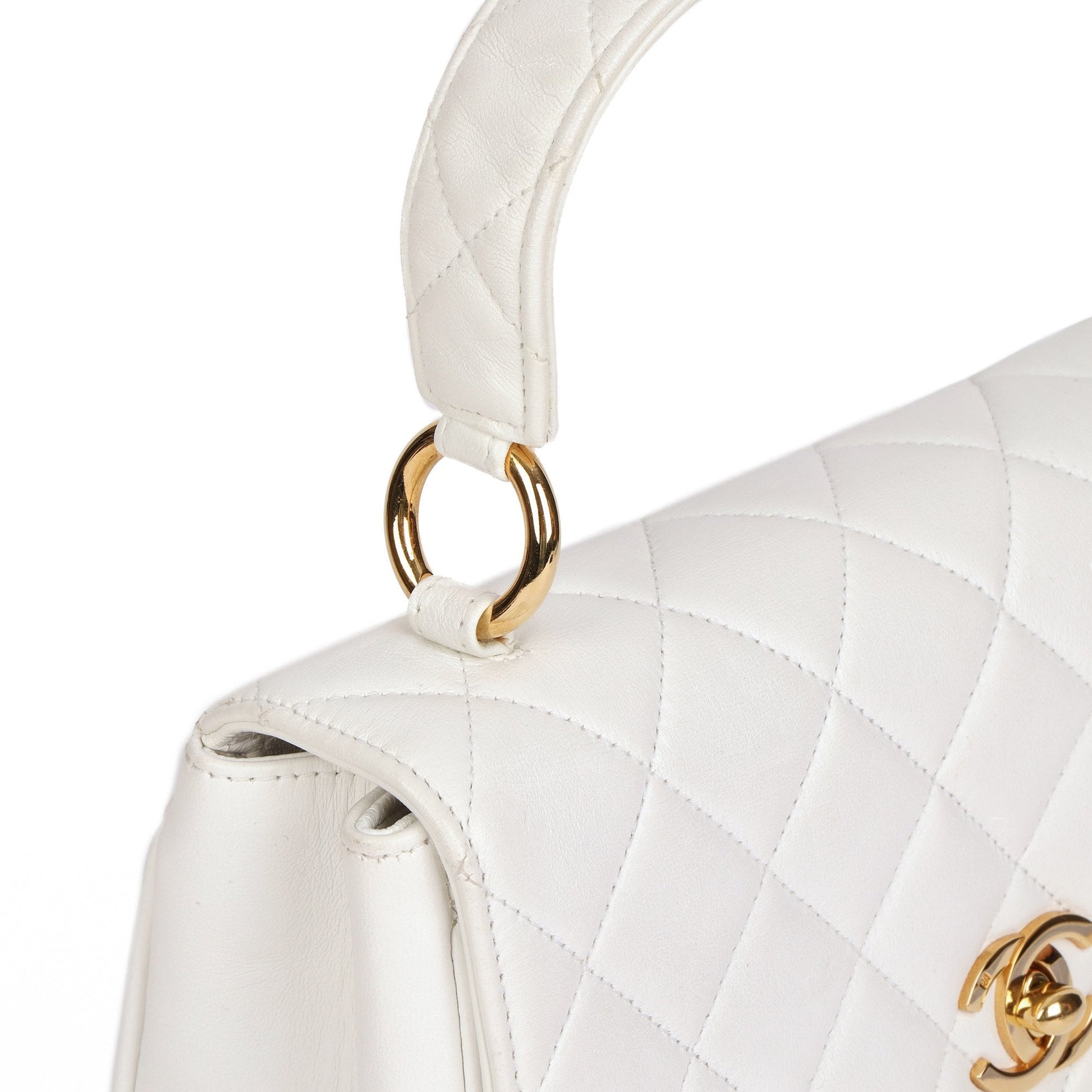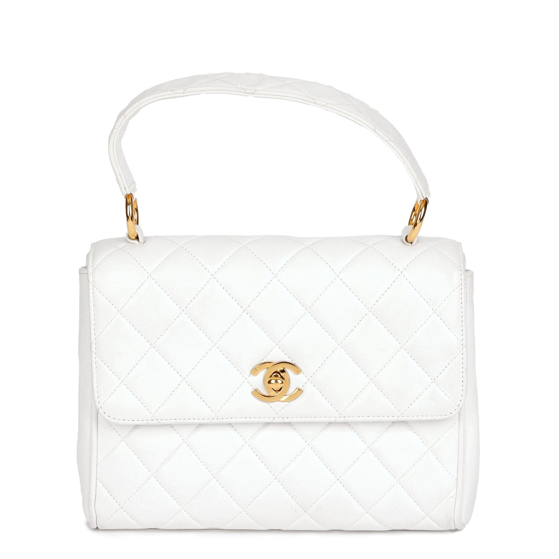 Chanel White Quilted Lambskin Vintage Classic Kelly Top Handle Bag