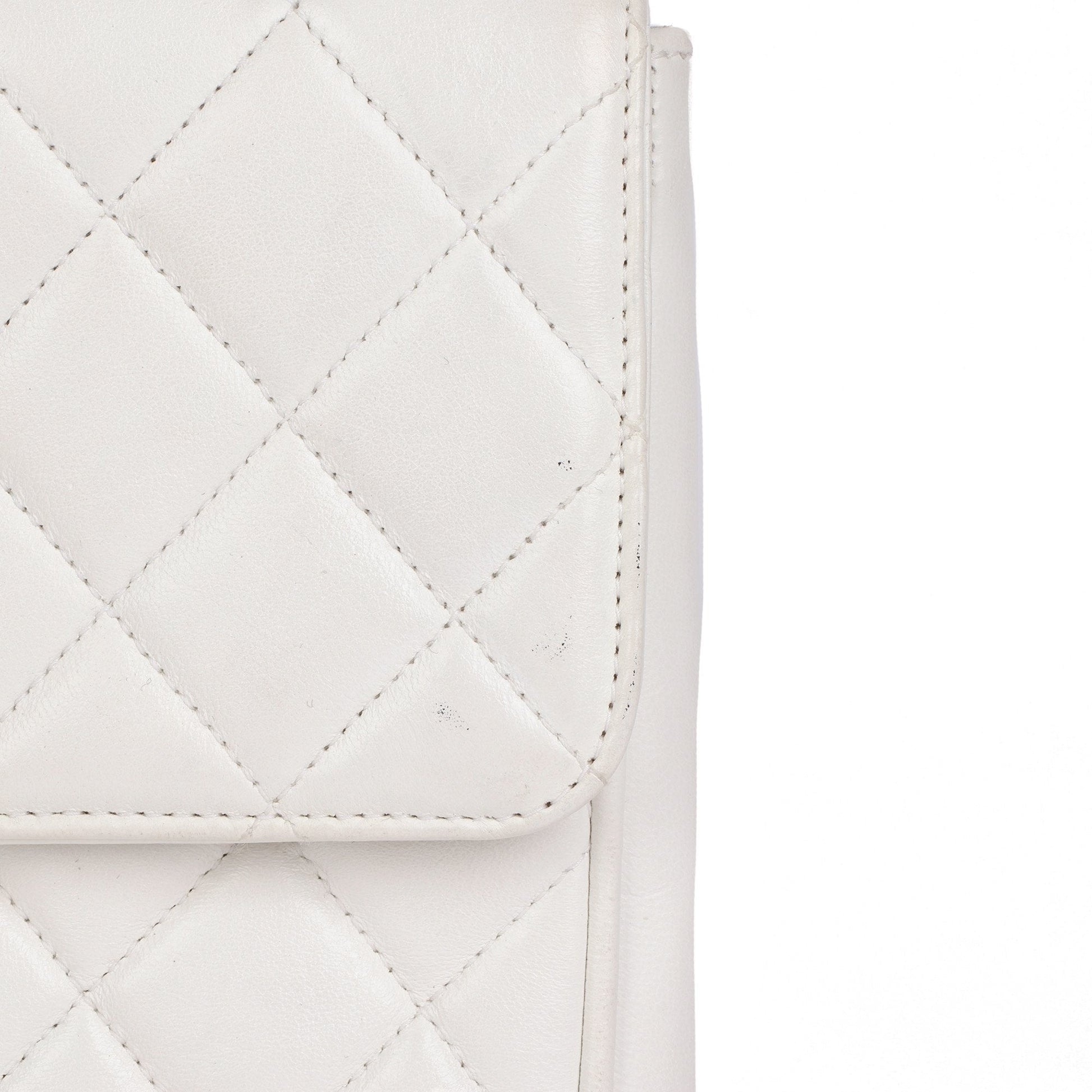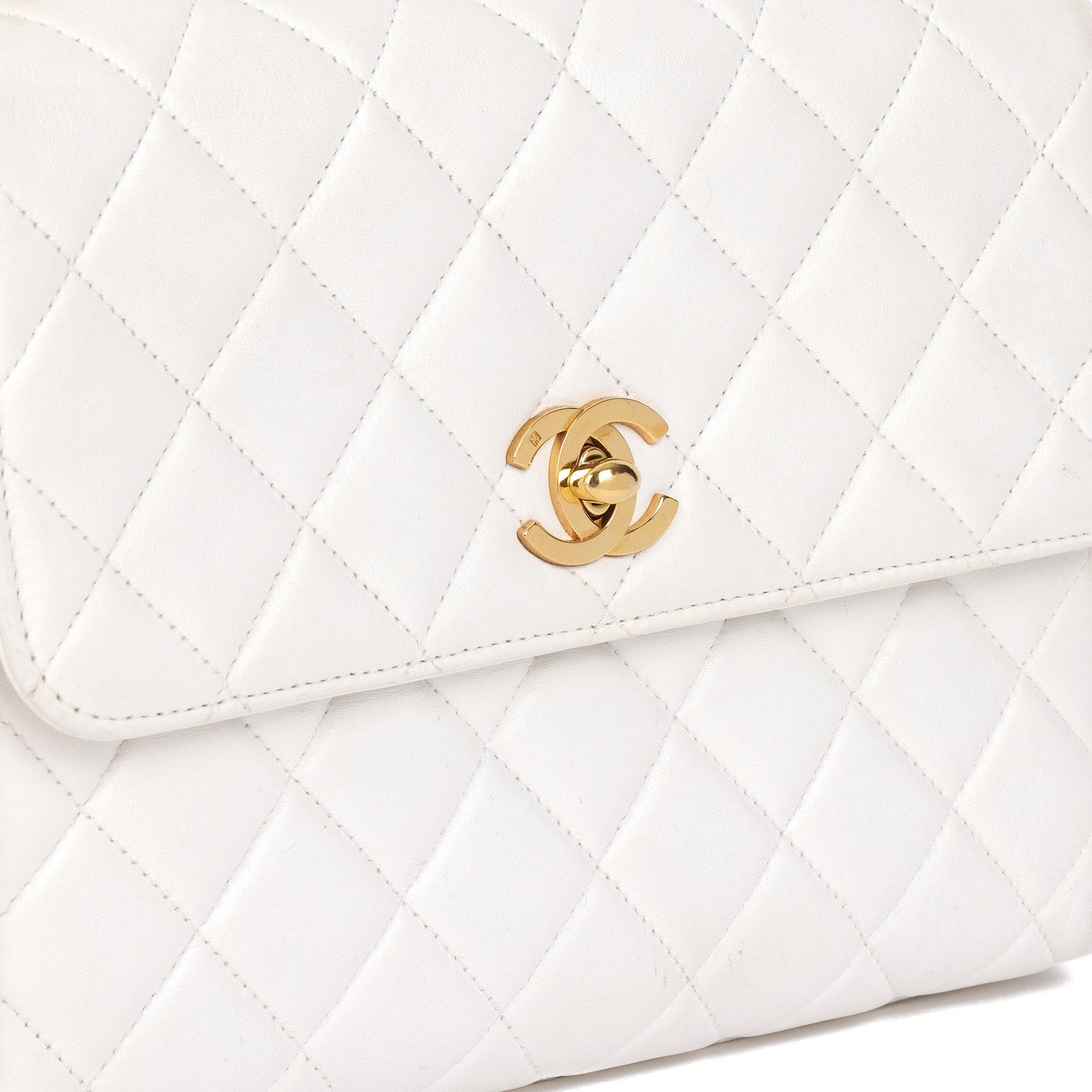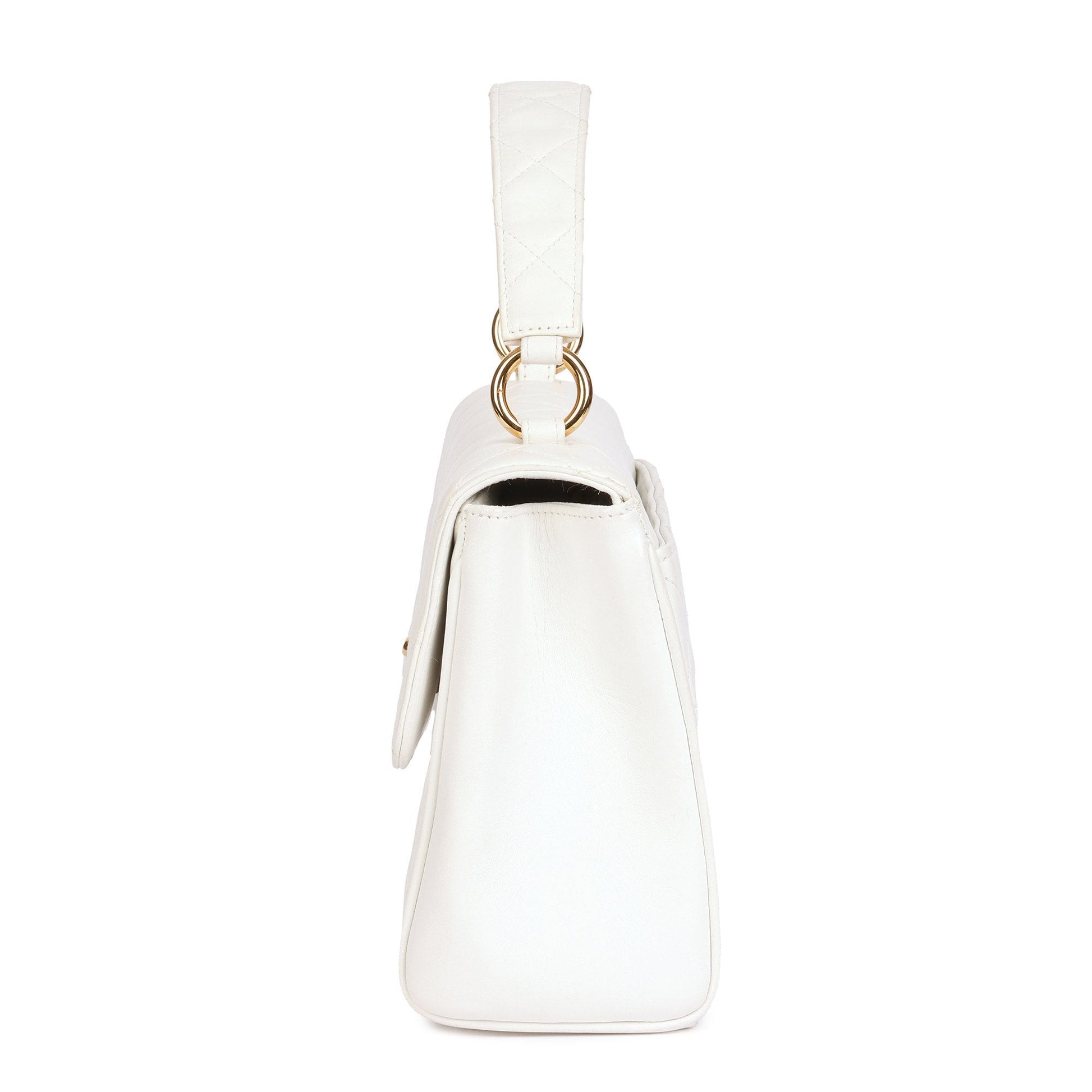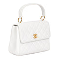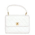 Chanel White Quilted Lambskin Vintage Classic Kelly Top Handle Bag
