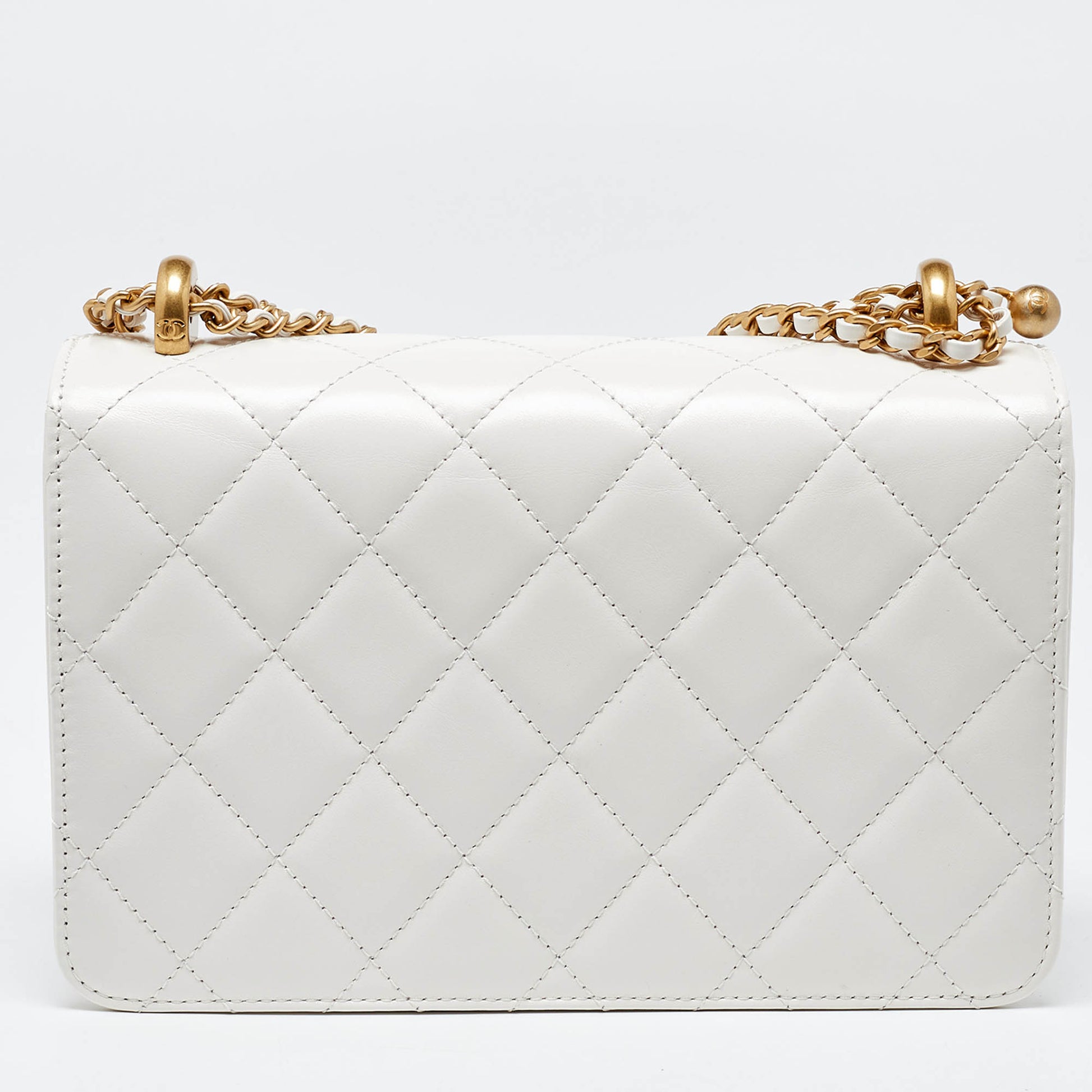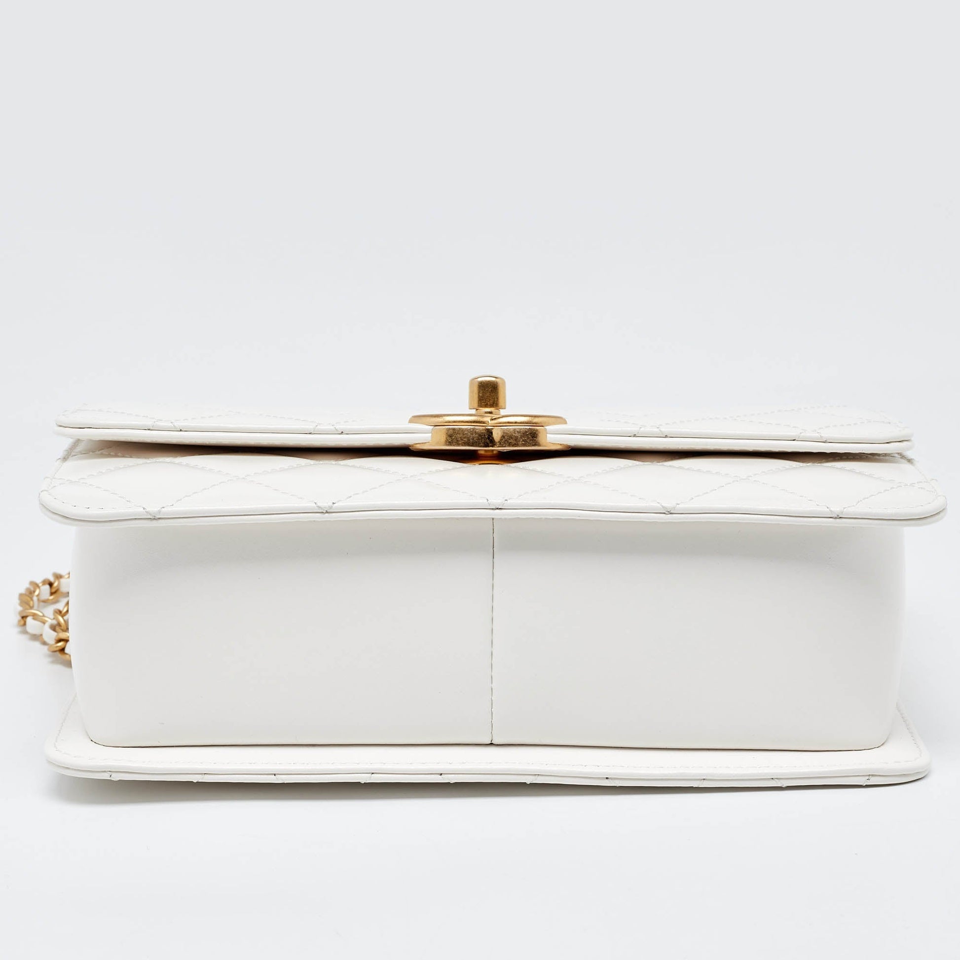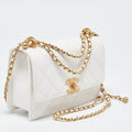 CHANEL White Quilted Leather Small Flap Shoulder Bag