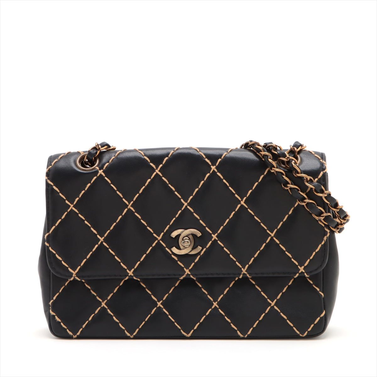 Chanel Wild Stick Single Flap Double Chain Bag Black G 6th