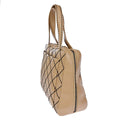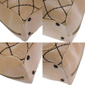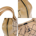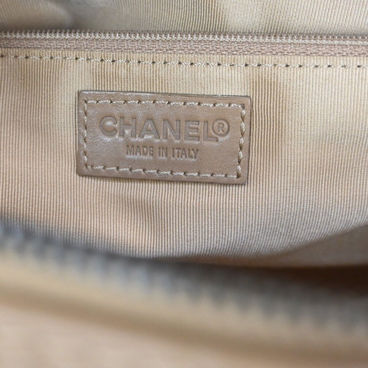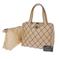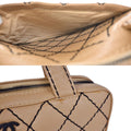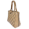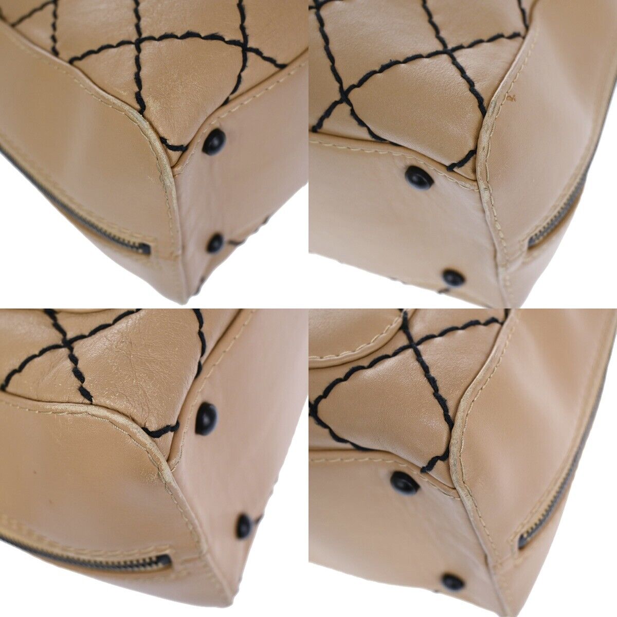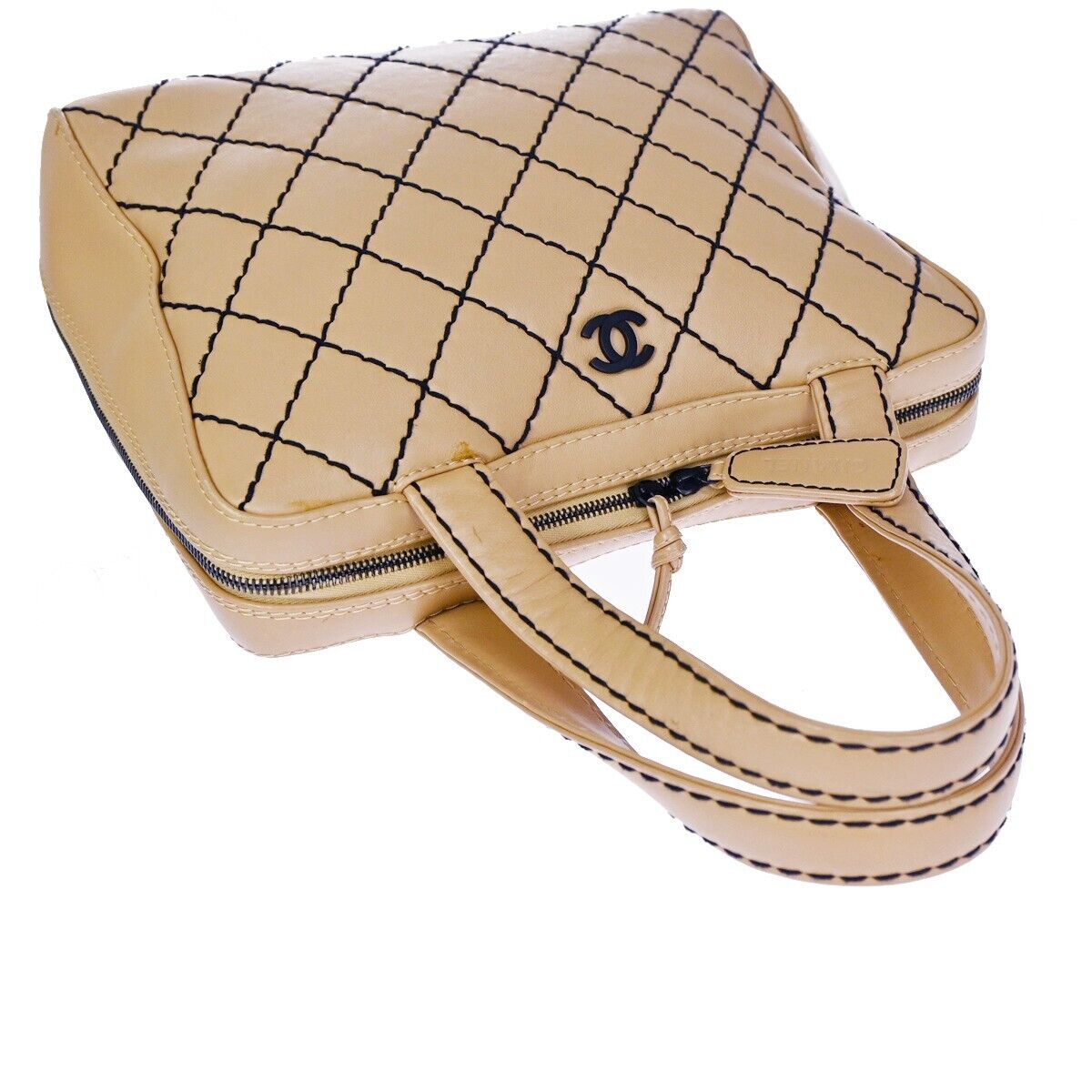 Introducing the Chanel V-Stitch handBag, a stylish rectangular accessory designed for casual occasions. Crafted with beige leather and adorned with black hardware, this Bag features double handles and a canvas lining in matching beige.