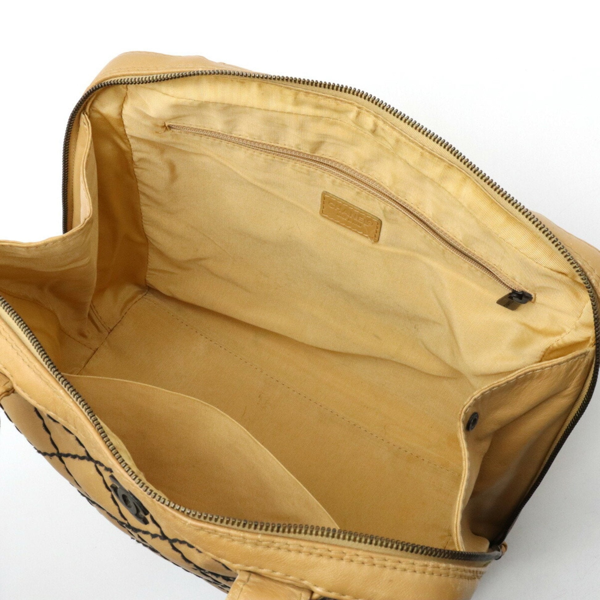 Chanel Wild Stitch Coco Mark Tote Bag HandBag Leather Beige A14693