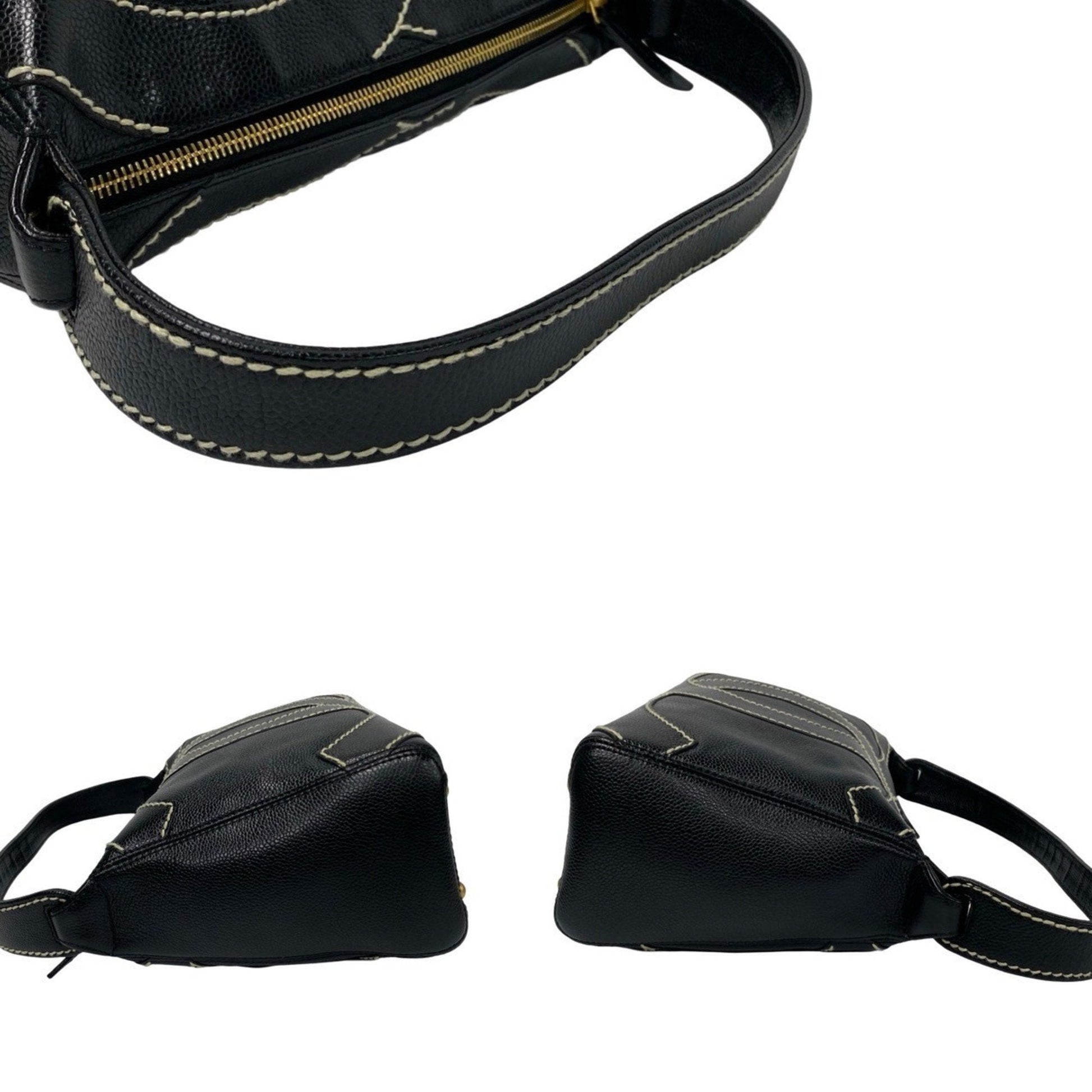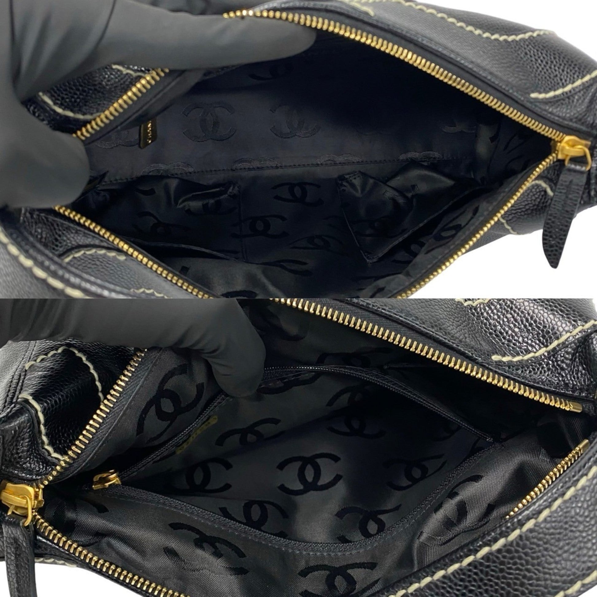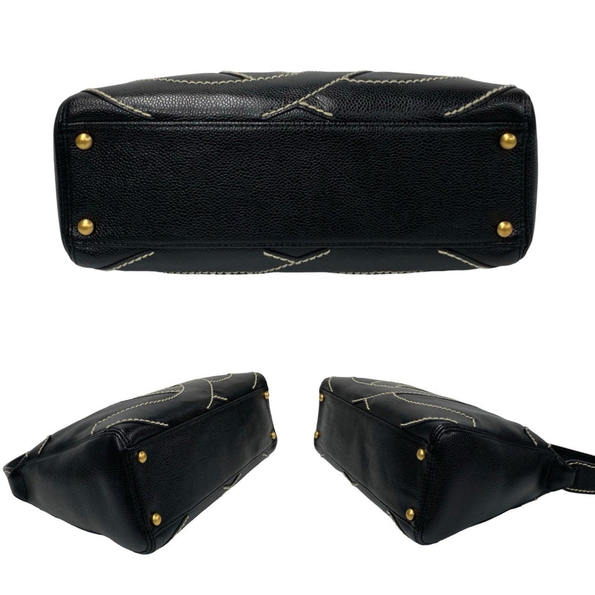 CHANEL Wild Stitch Decacoco Caviar Skin Leather Handbag Black 03356