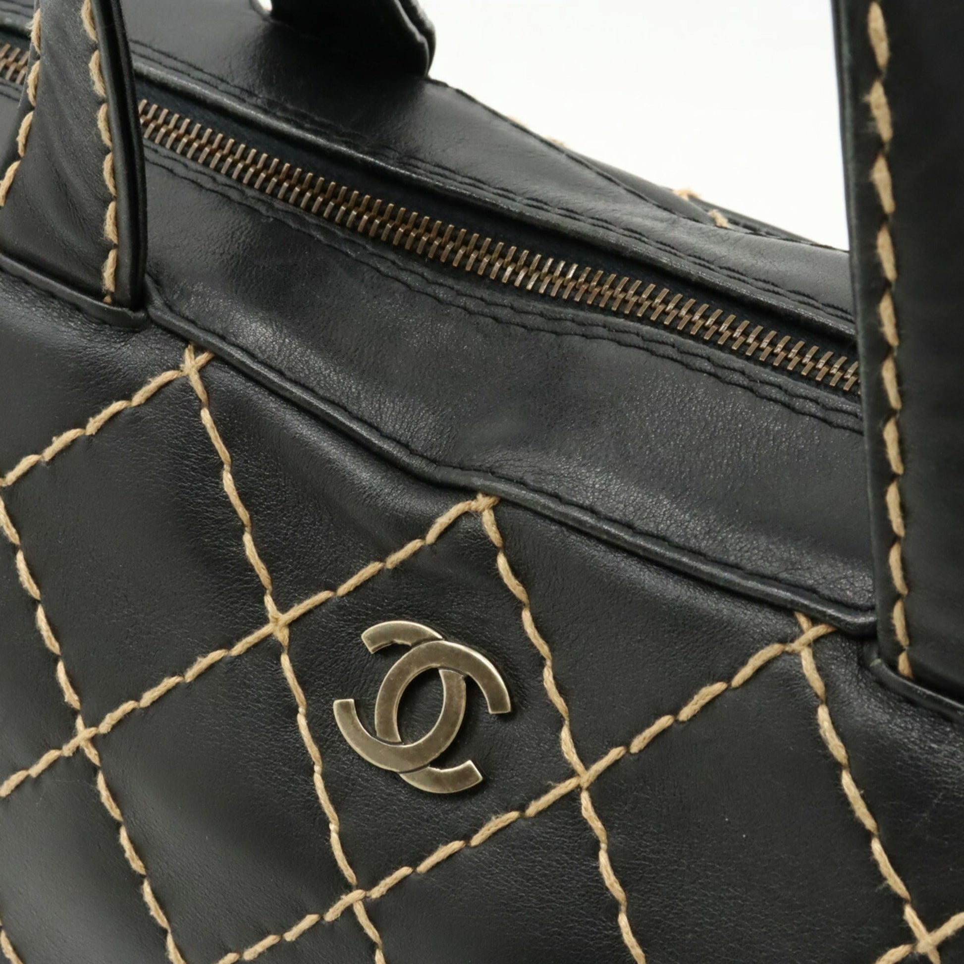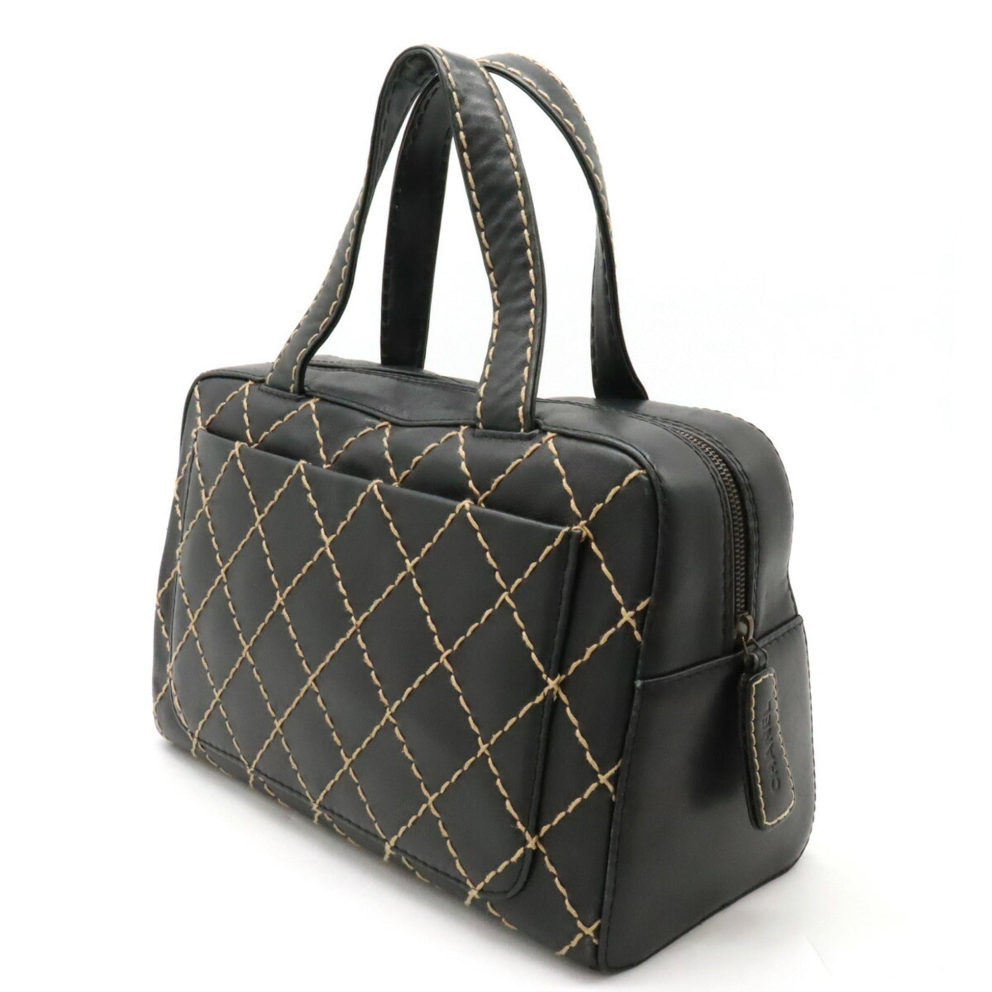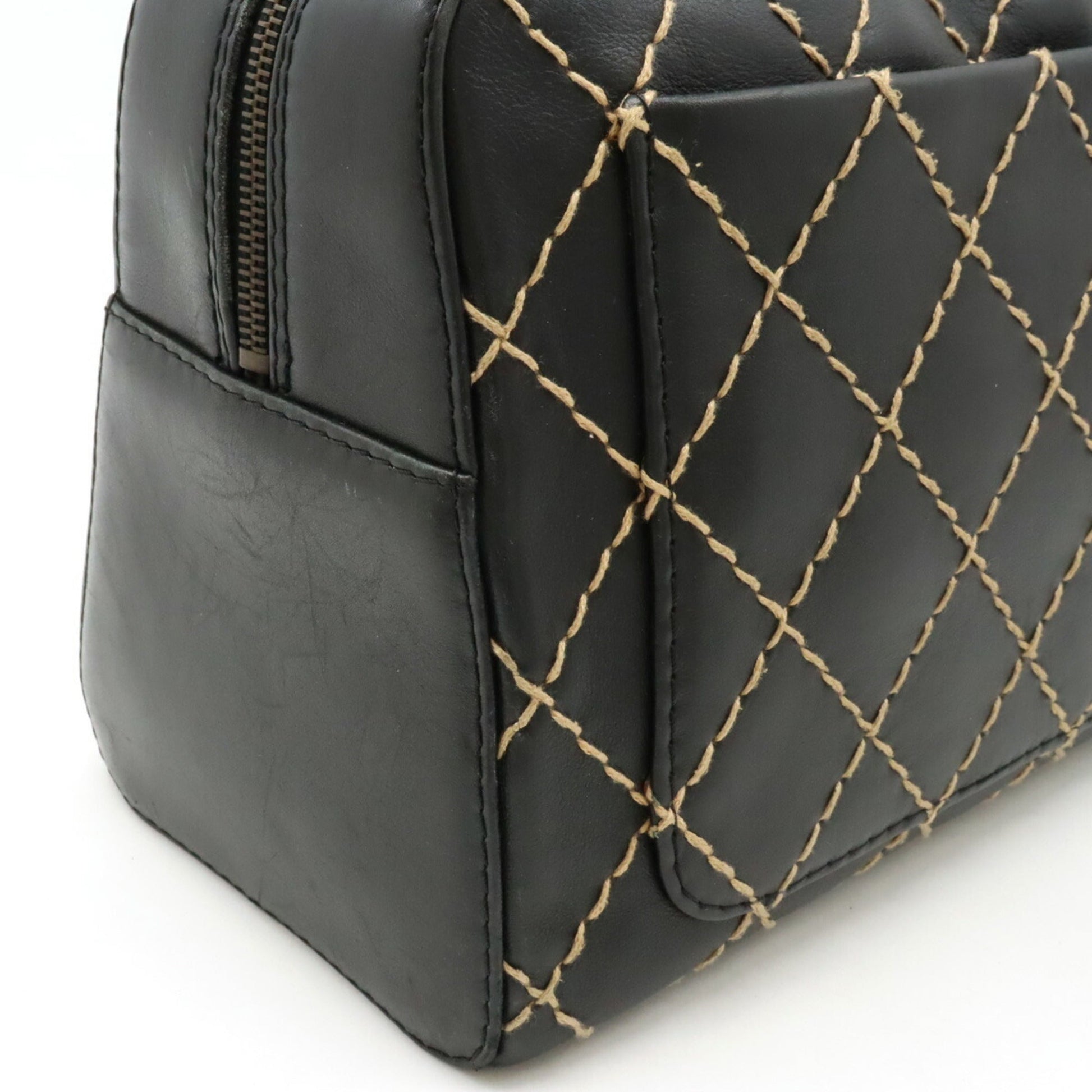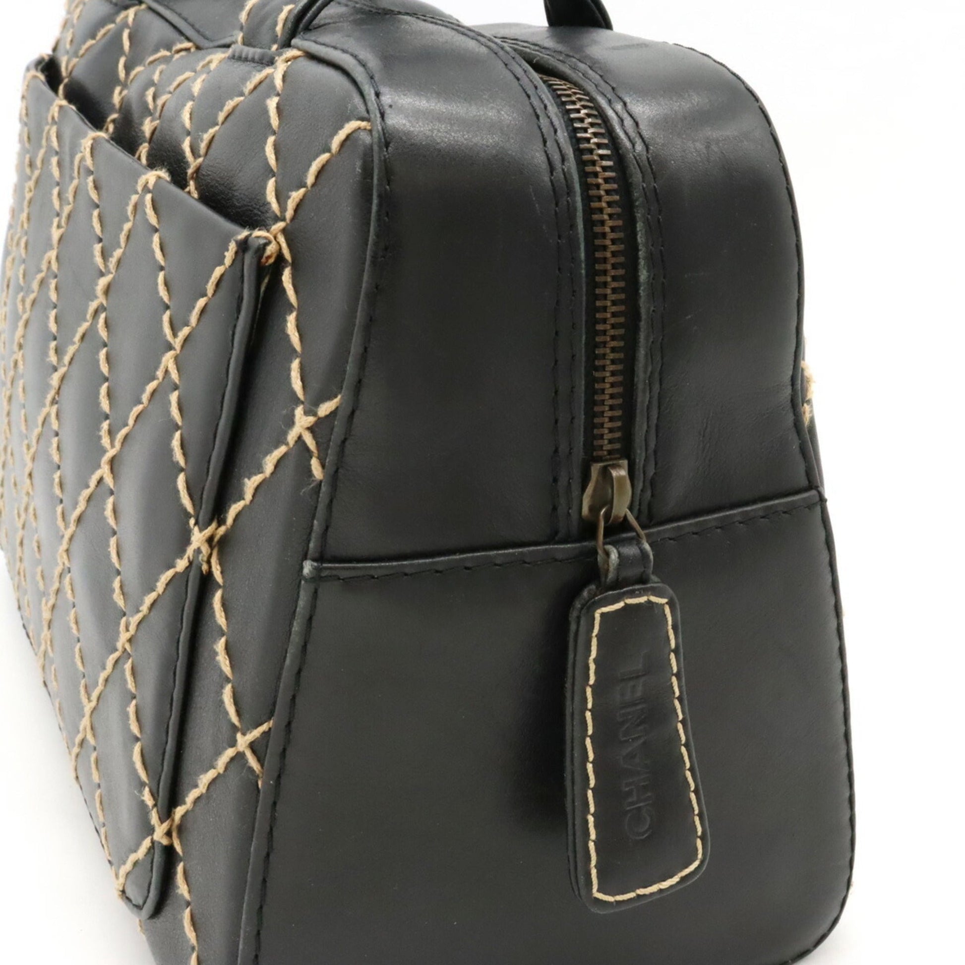 CHANEL Wild Stitch Handbag Boston Bag Leather Black A14692