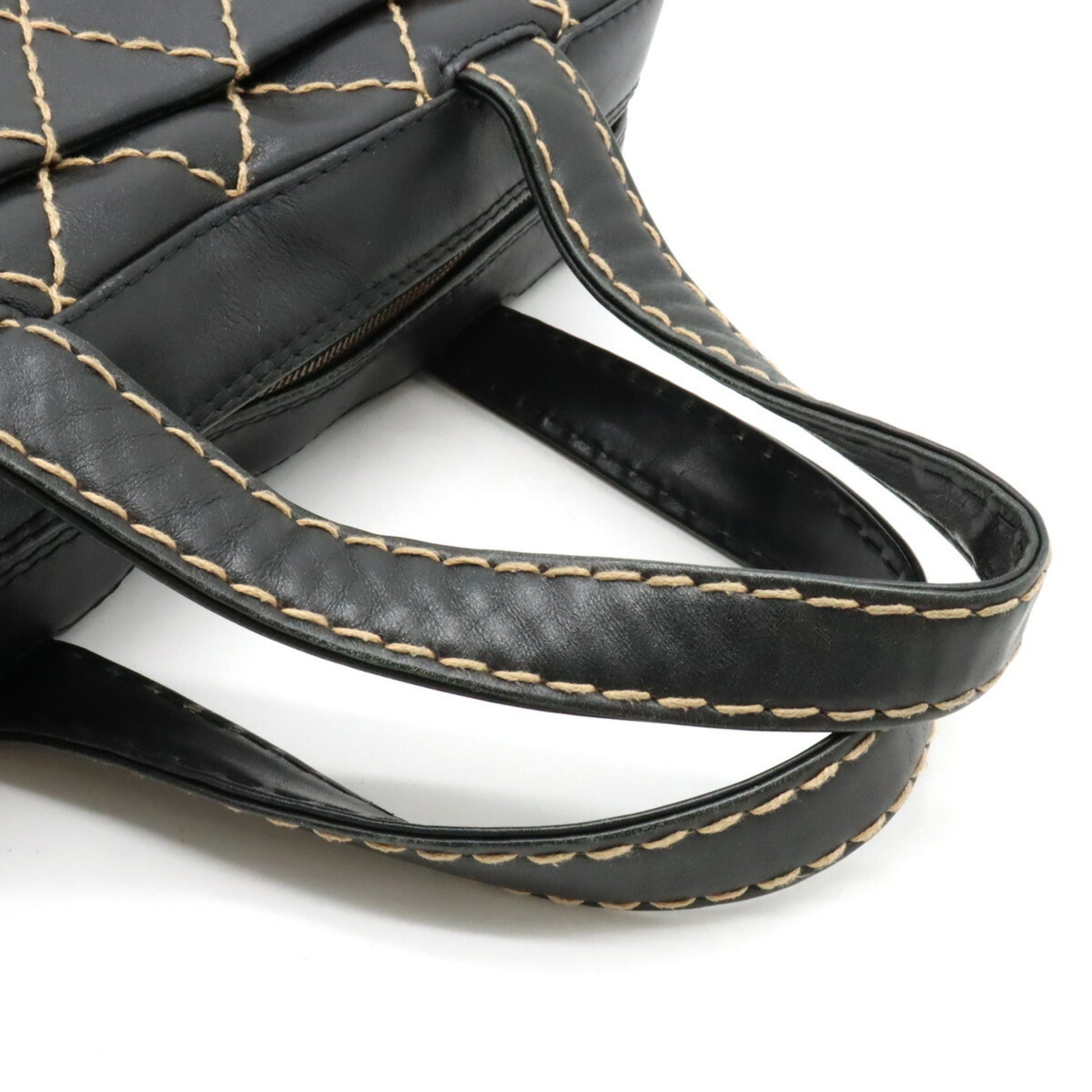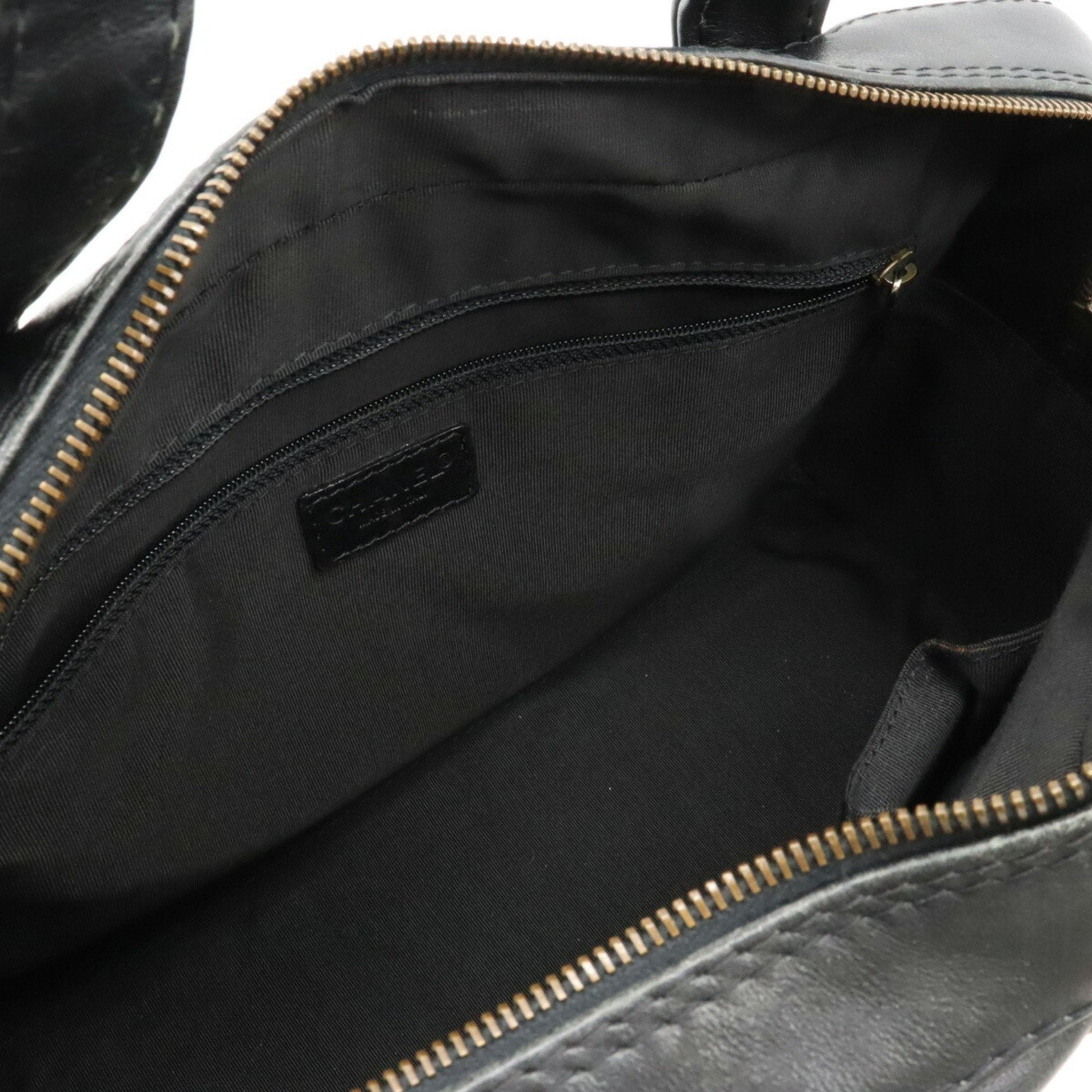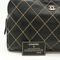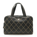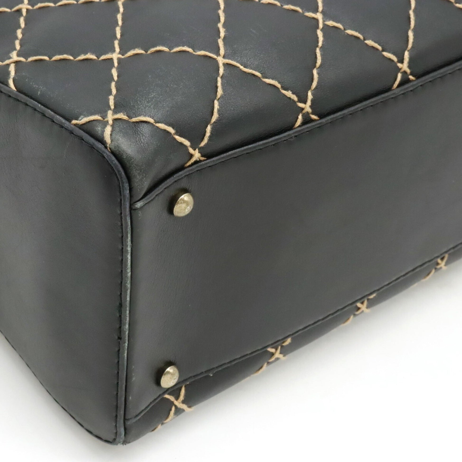 CHANEL Wild Stitch Handbag Boston Bag Leather Black A14692