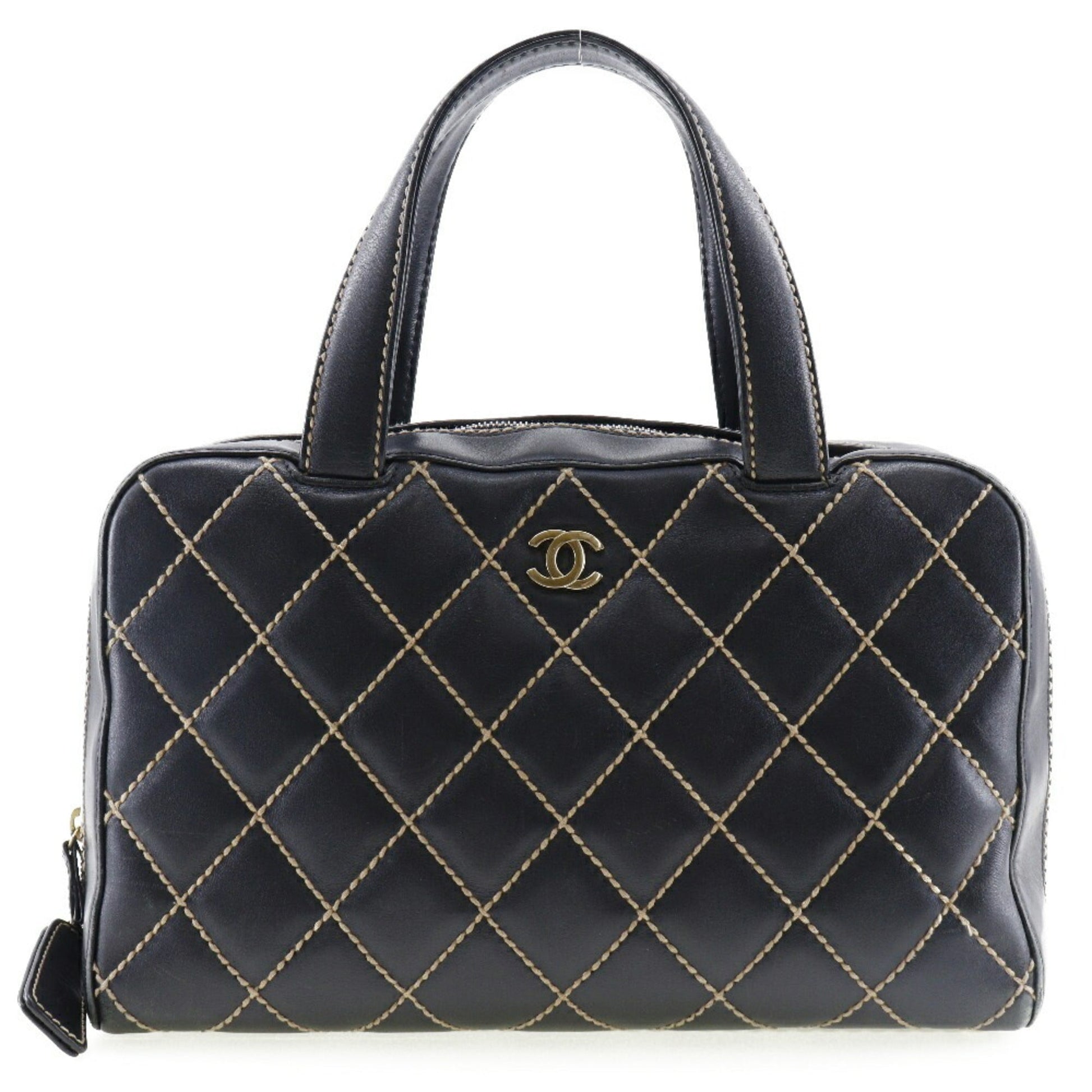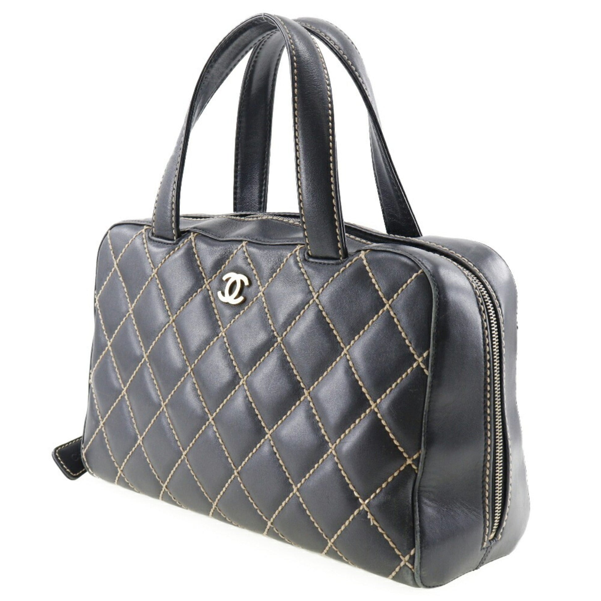 Chanel Wild Stitch HandBag Mini Boston A14692 Calf Black Ladies