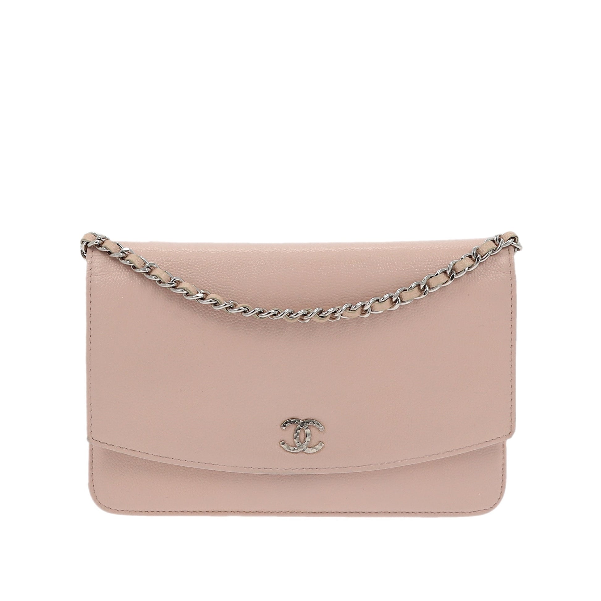 Chanel WOC Wallet On a Chain Pochette In pink caviar leather with silver hardware