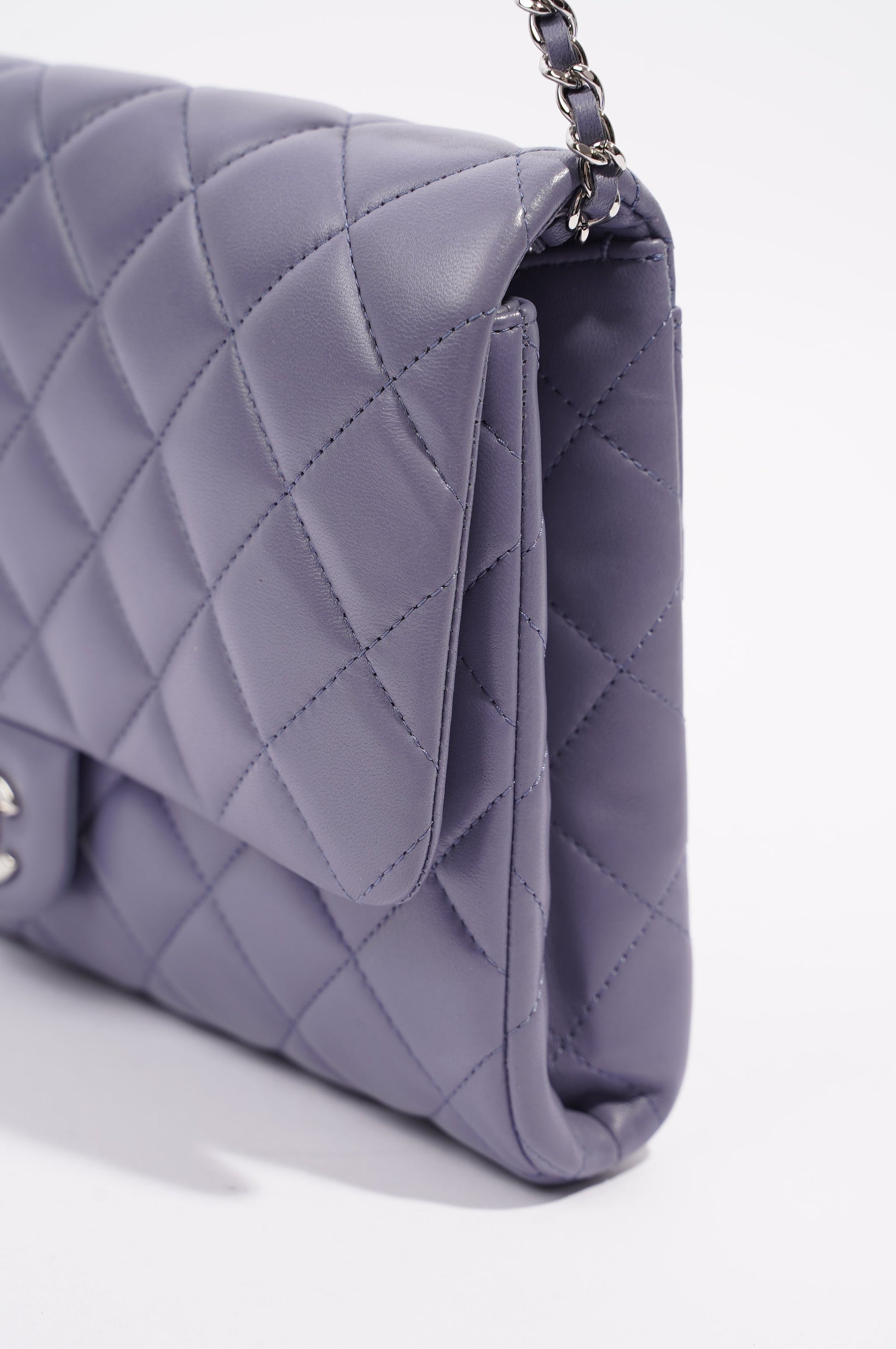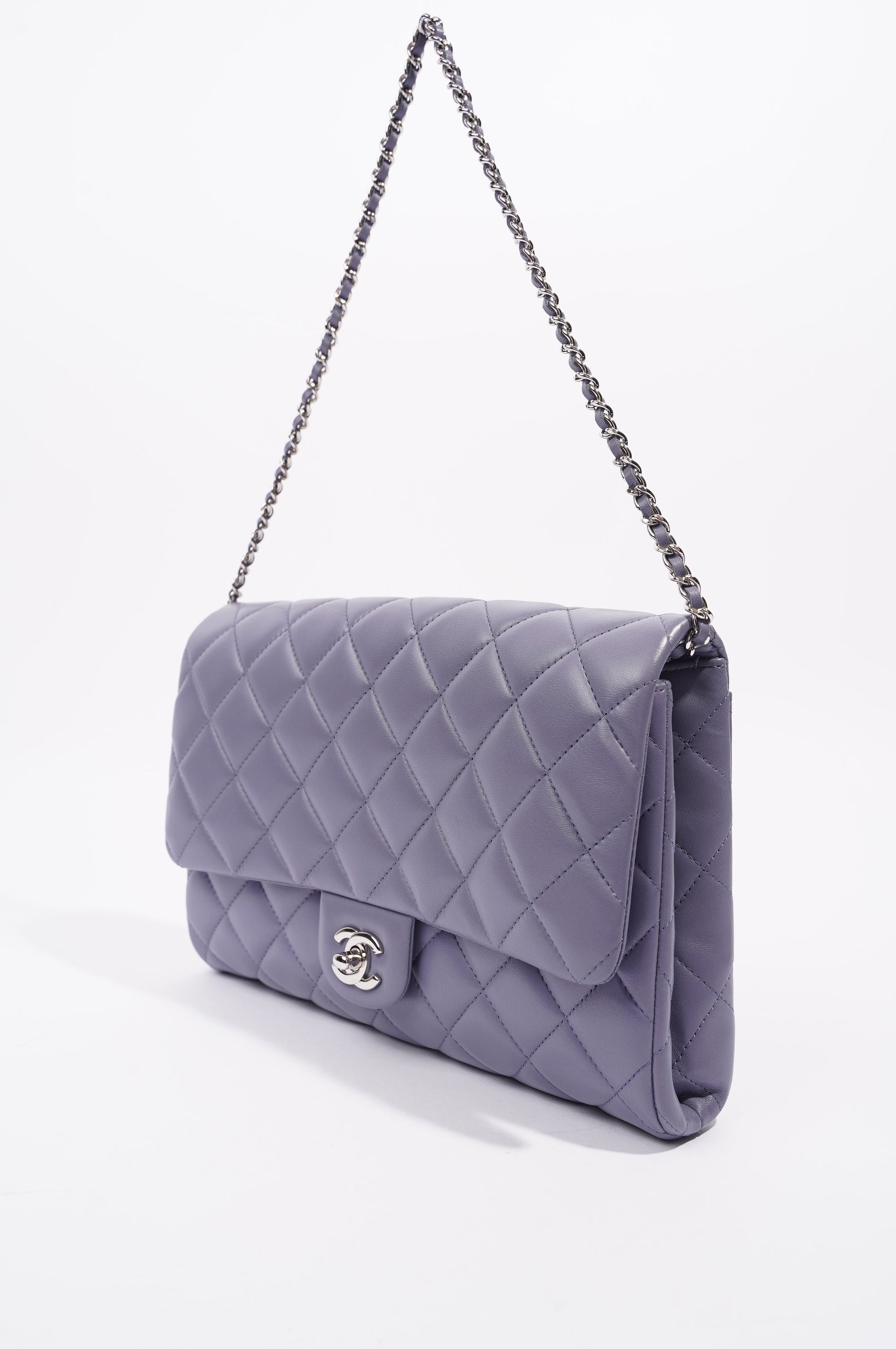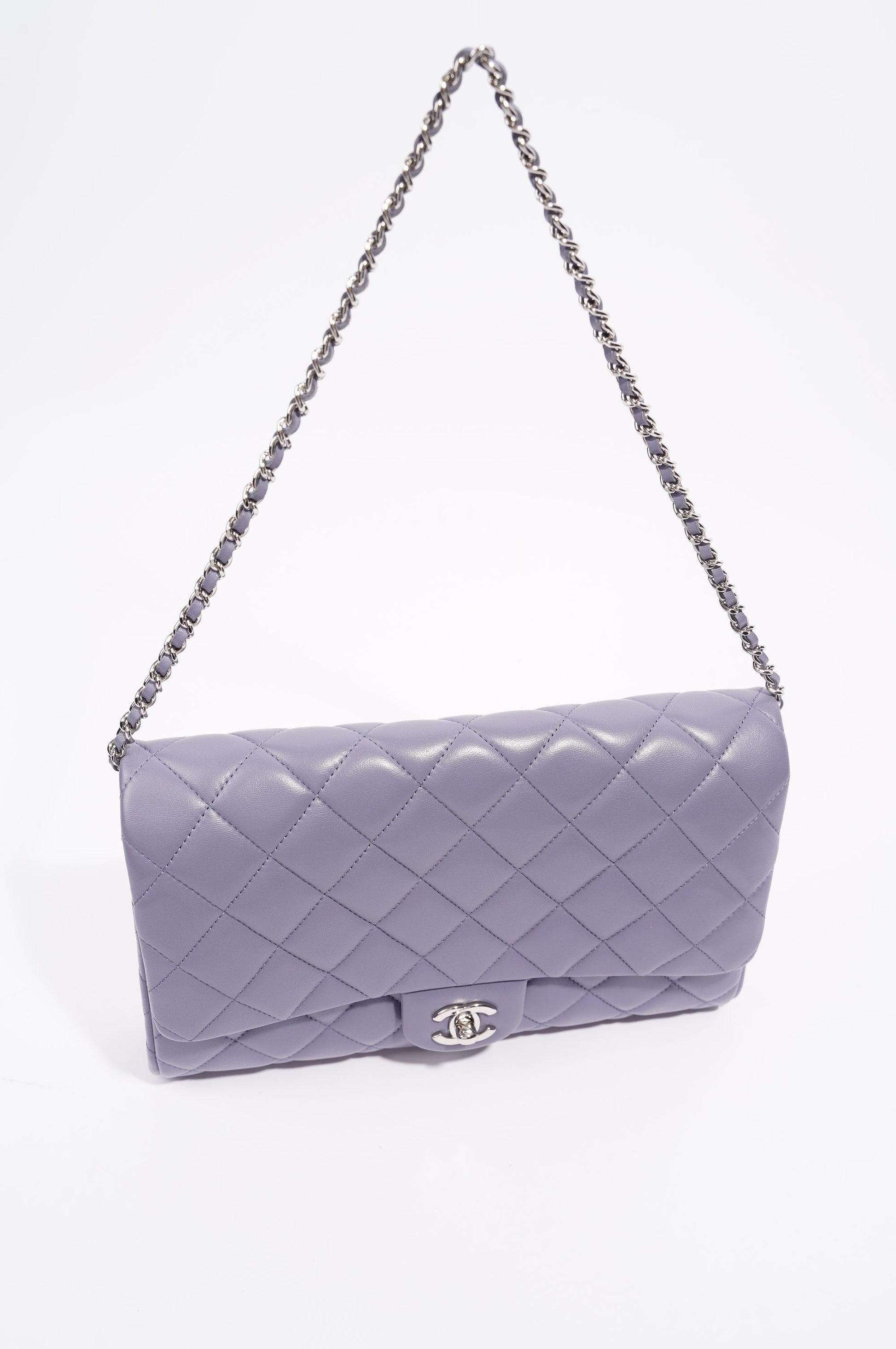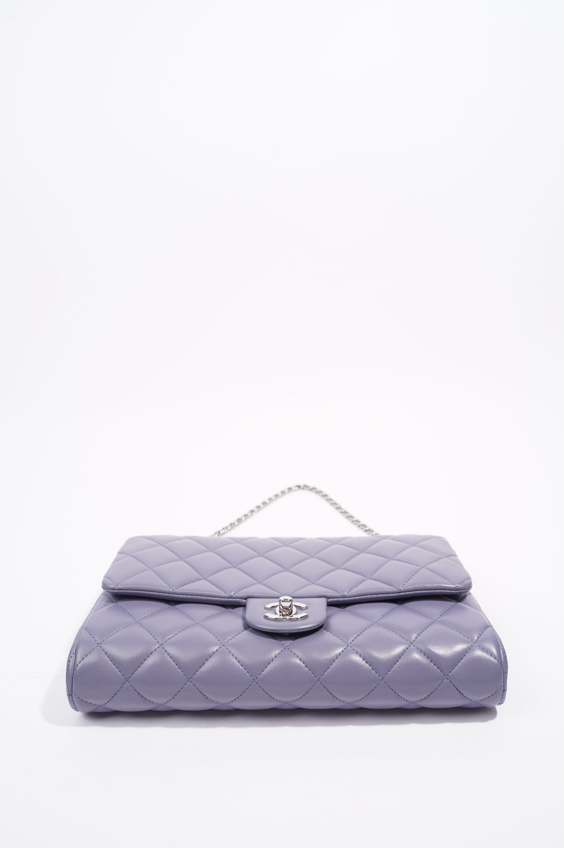 Chanel Womens Lambskin Clutch With Chain Lavender Large
