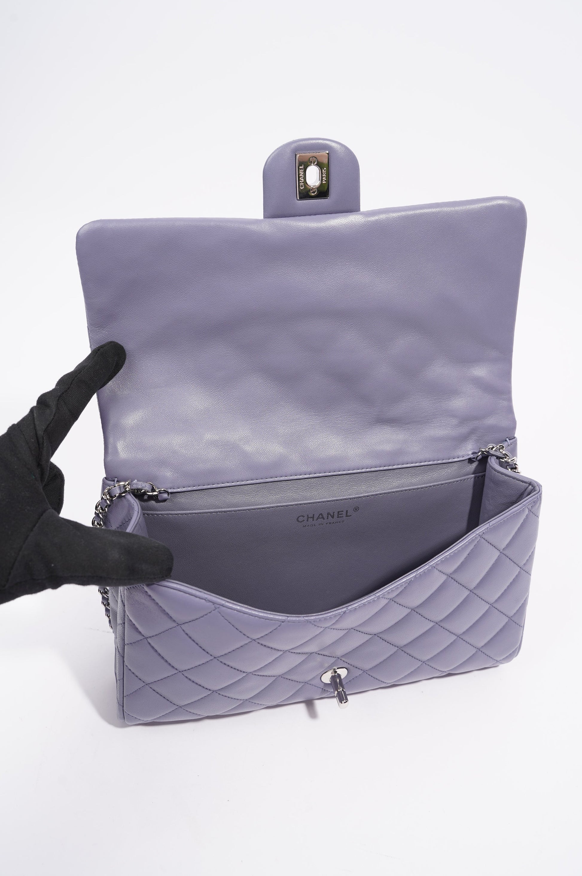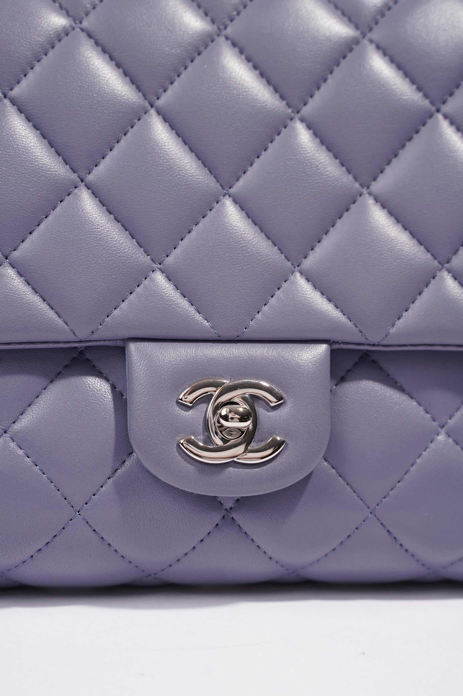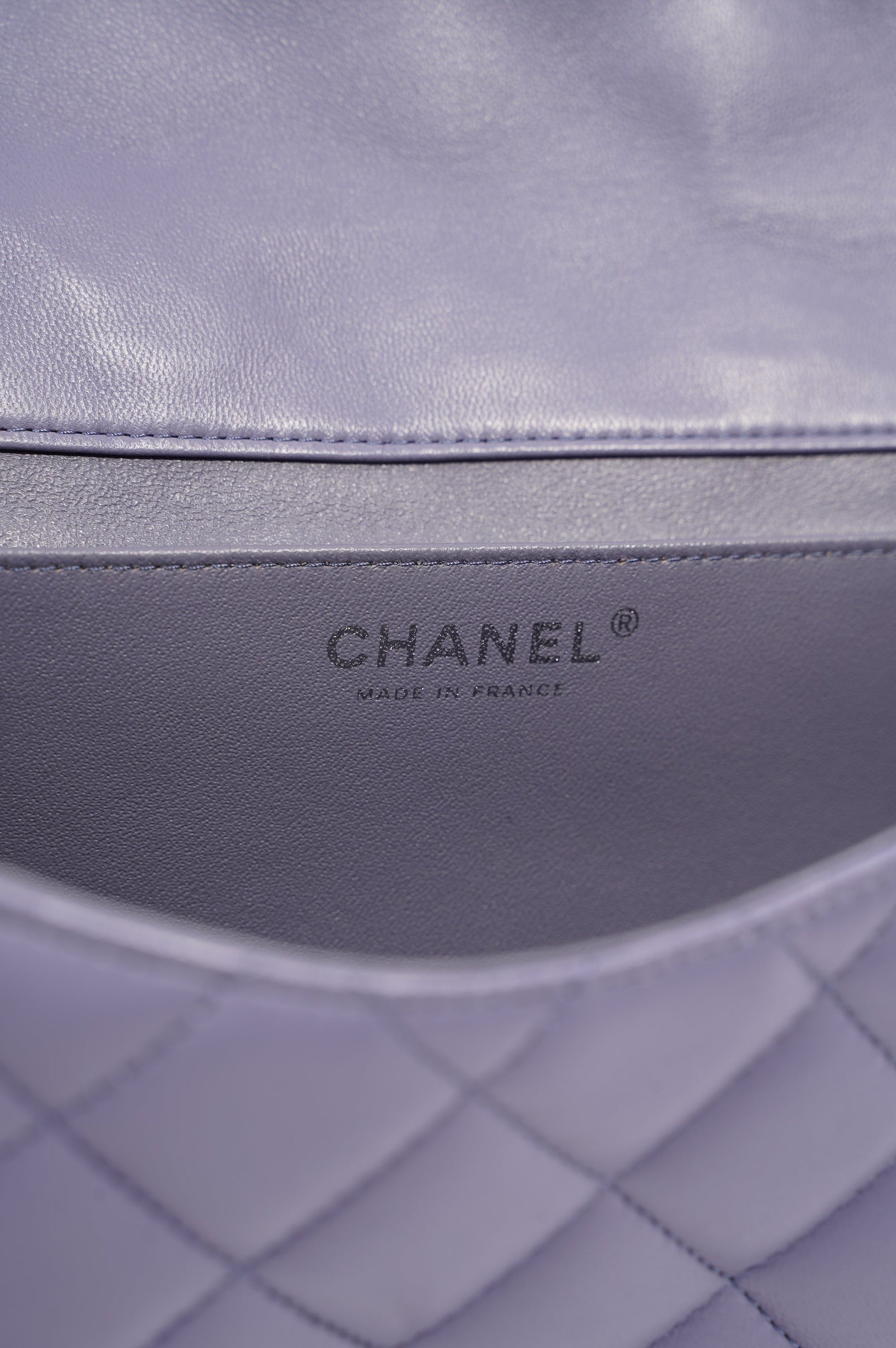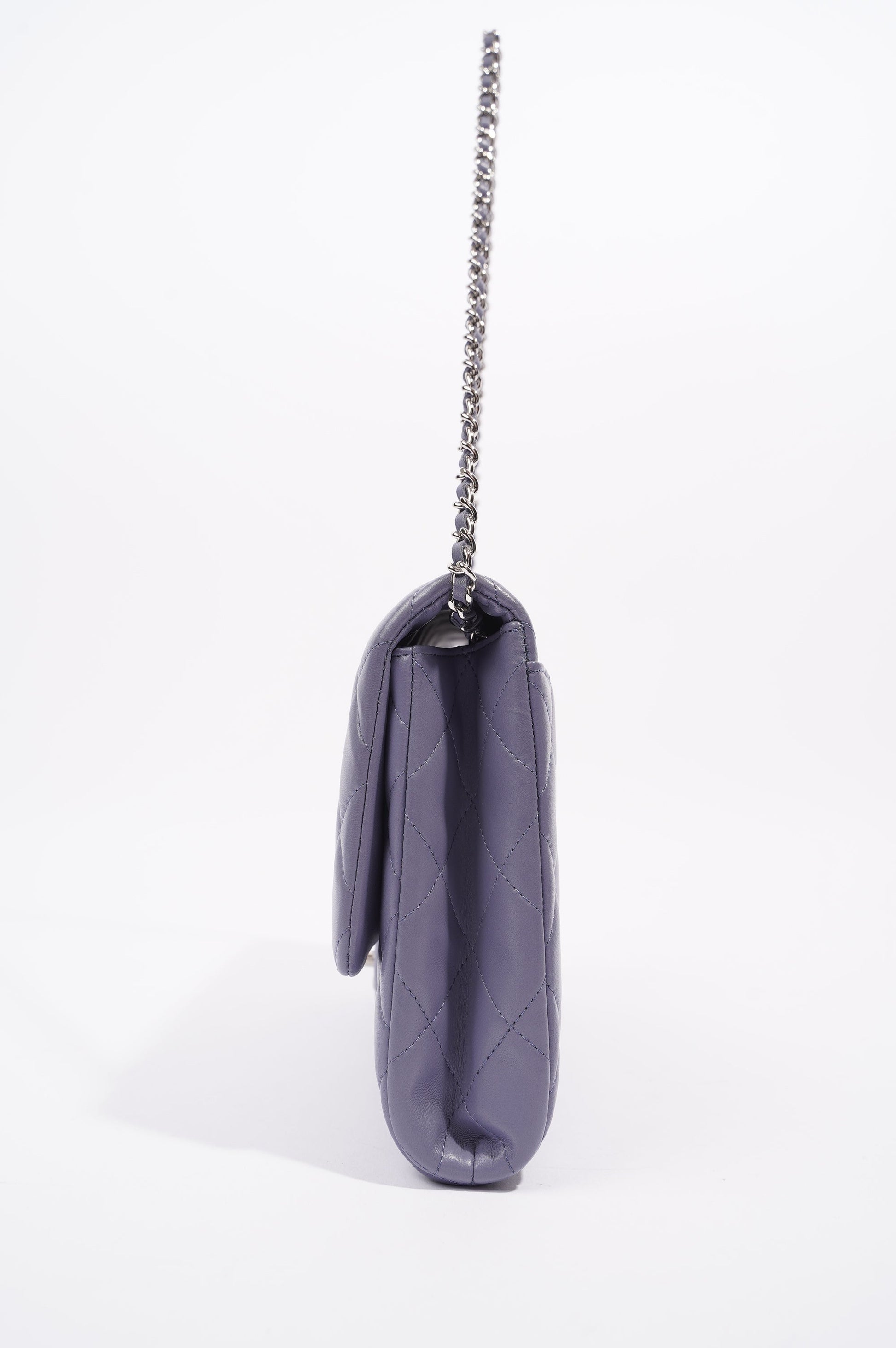 Chanel Womens Lambskin Clutch With Chain Lavender Large