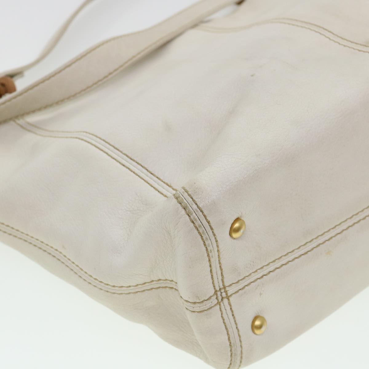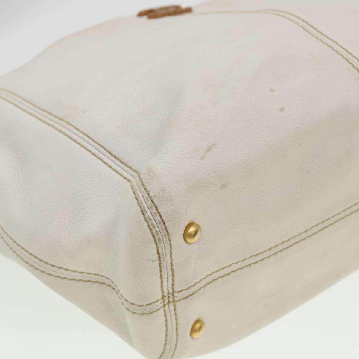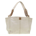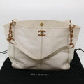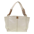 Chanel Wood Chain Tote Bag Caviar Skin White Brown CC yk6580