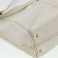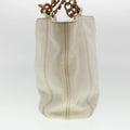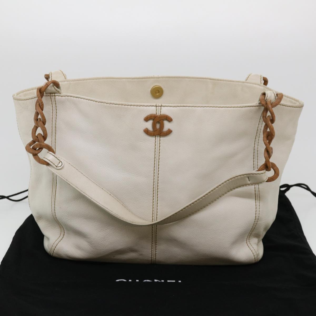 Chanel Wood Chain Tote Bag Caviar Skin White Brown CC Auth yk6580