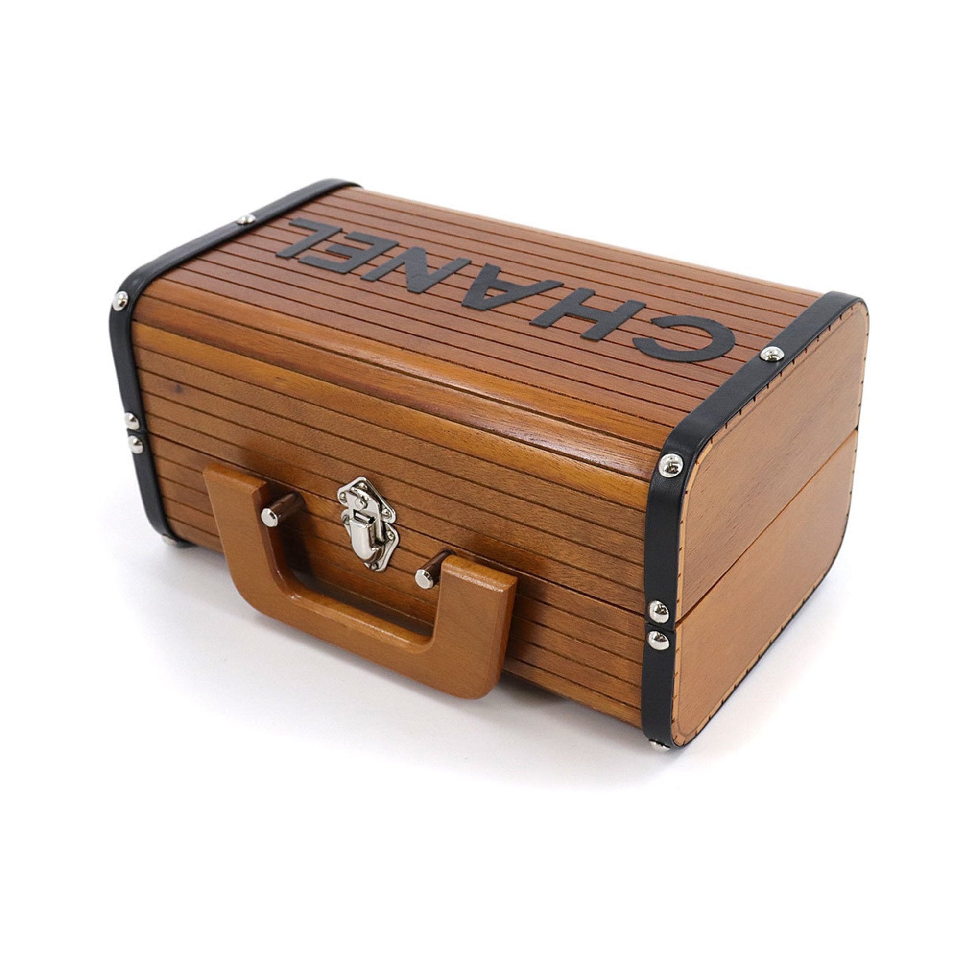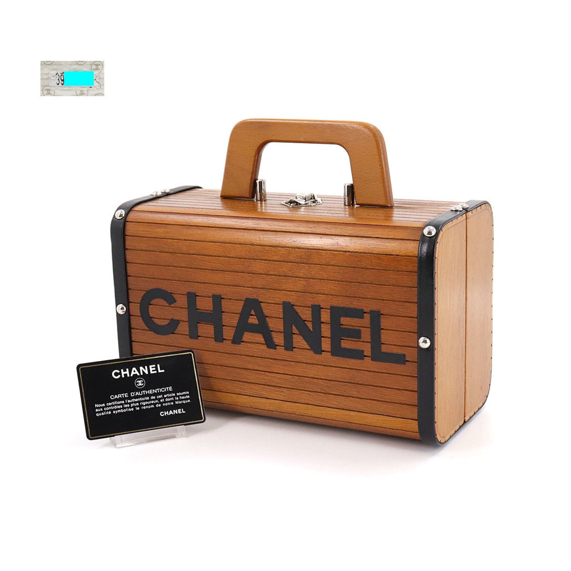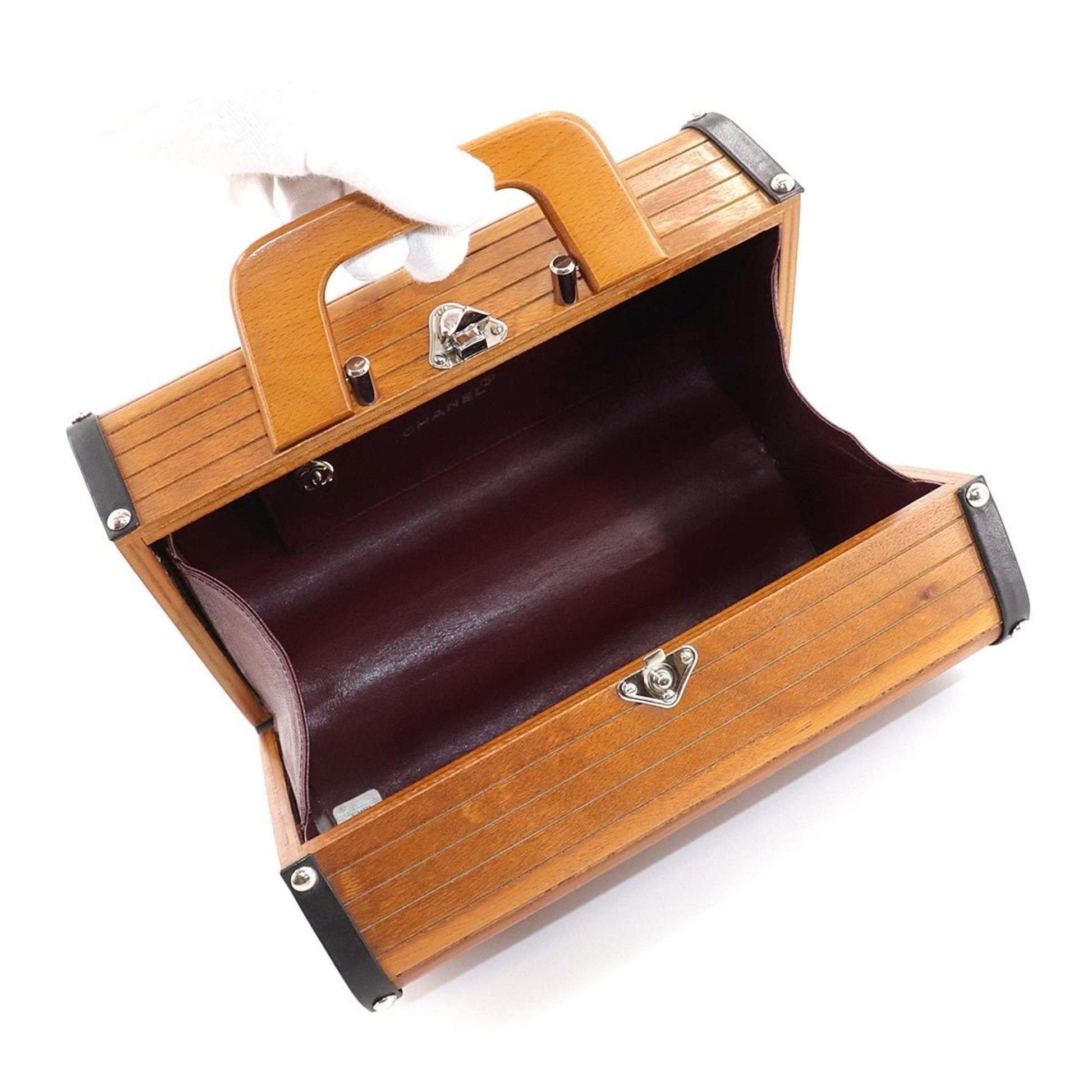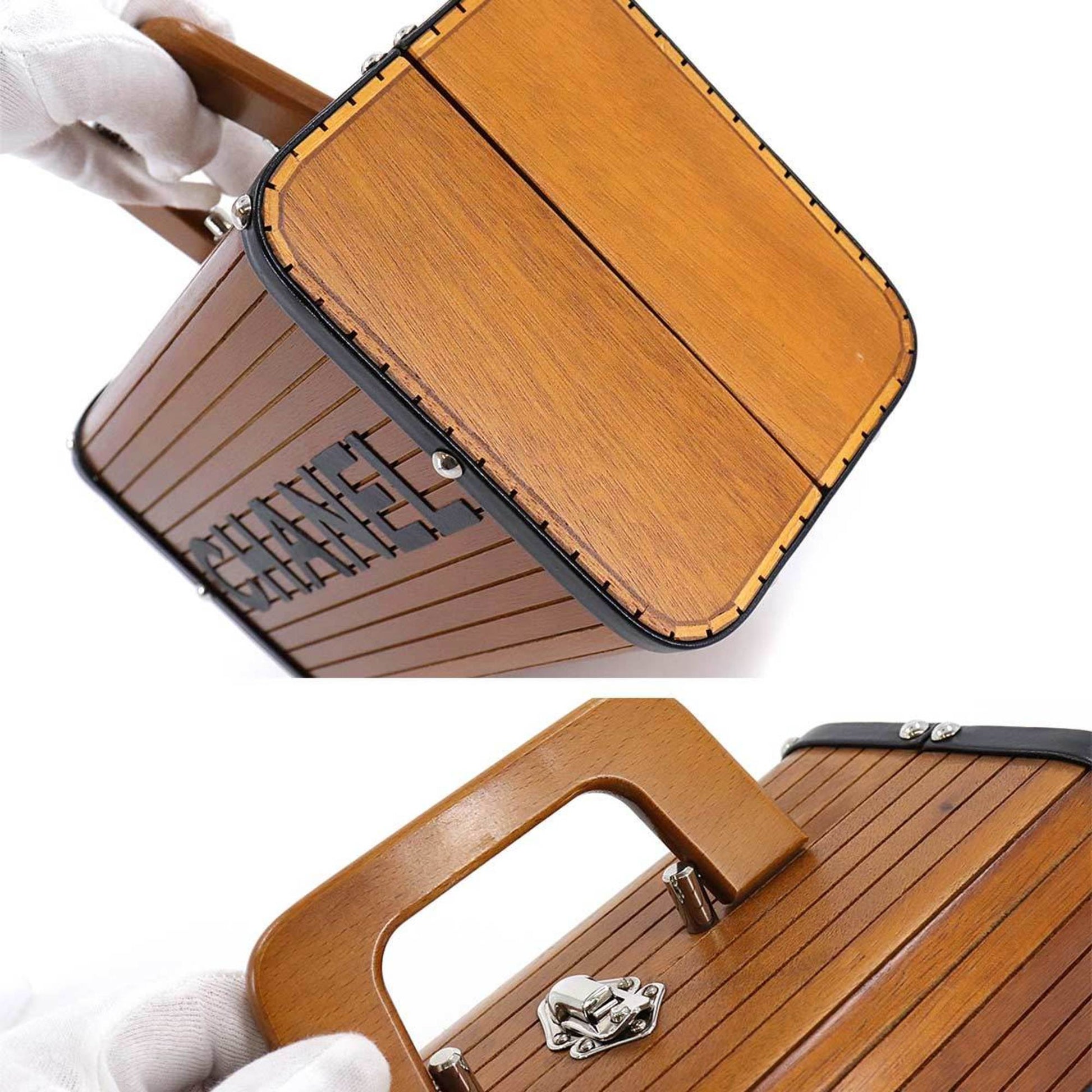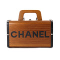 Chanel wood vanity hand Bag leather brown black silver metal fittings vintage Wood Vanity