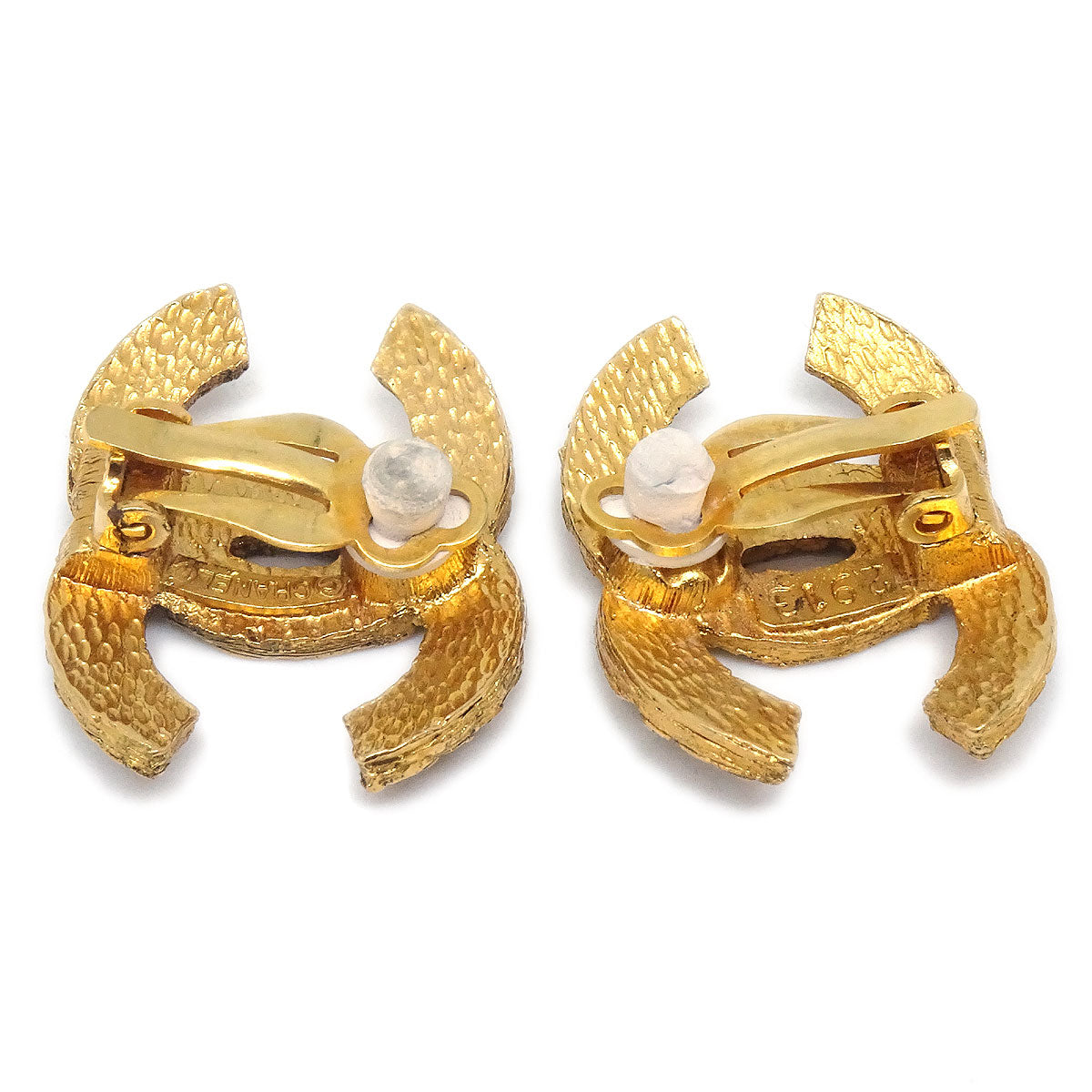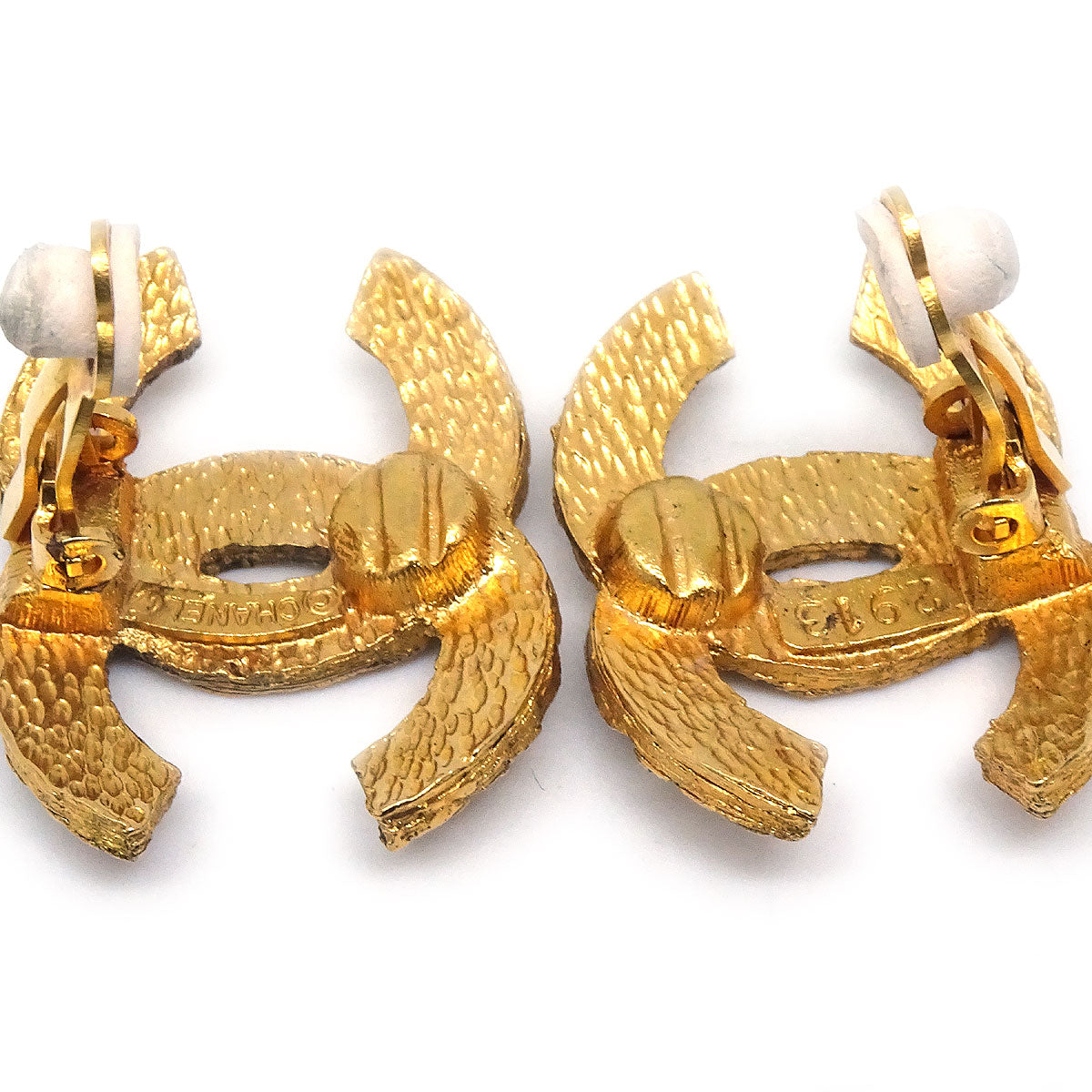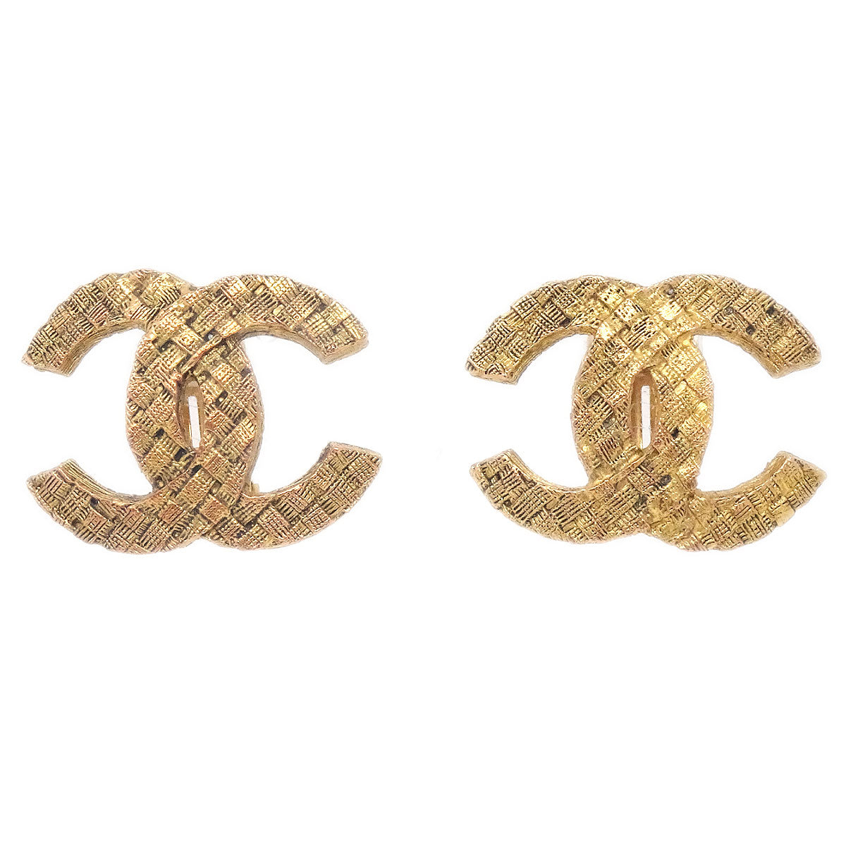 CHANEL Woven CC Earrings Clip-On Gold 2913 26228