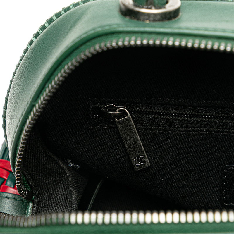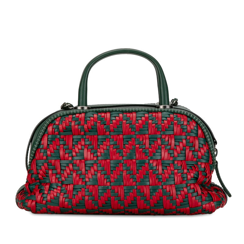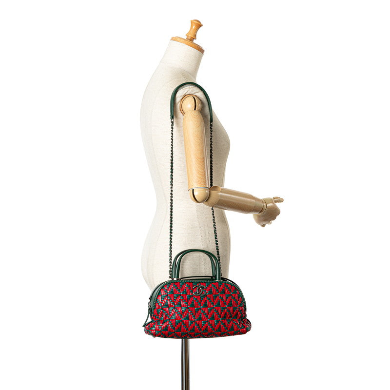 Chanel Woven Leather Bowler Bag Leather Handbag in Good condition