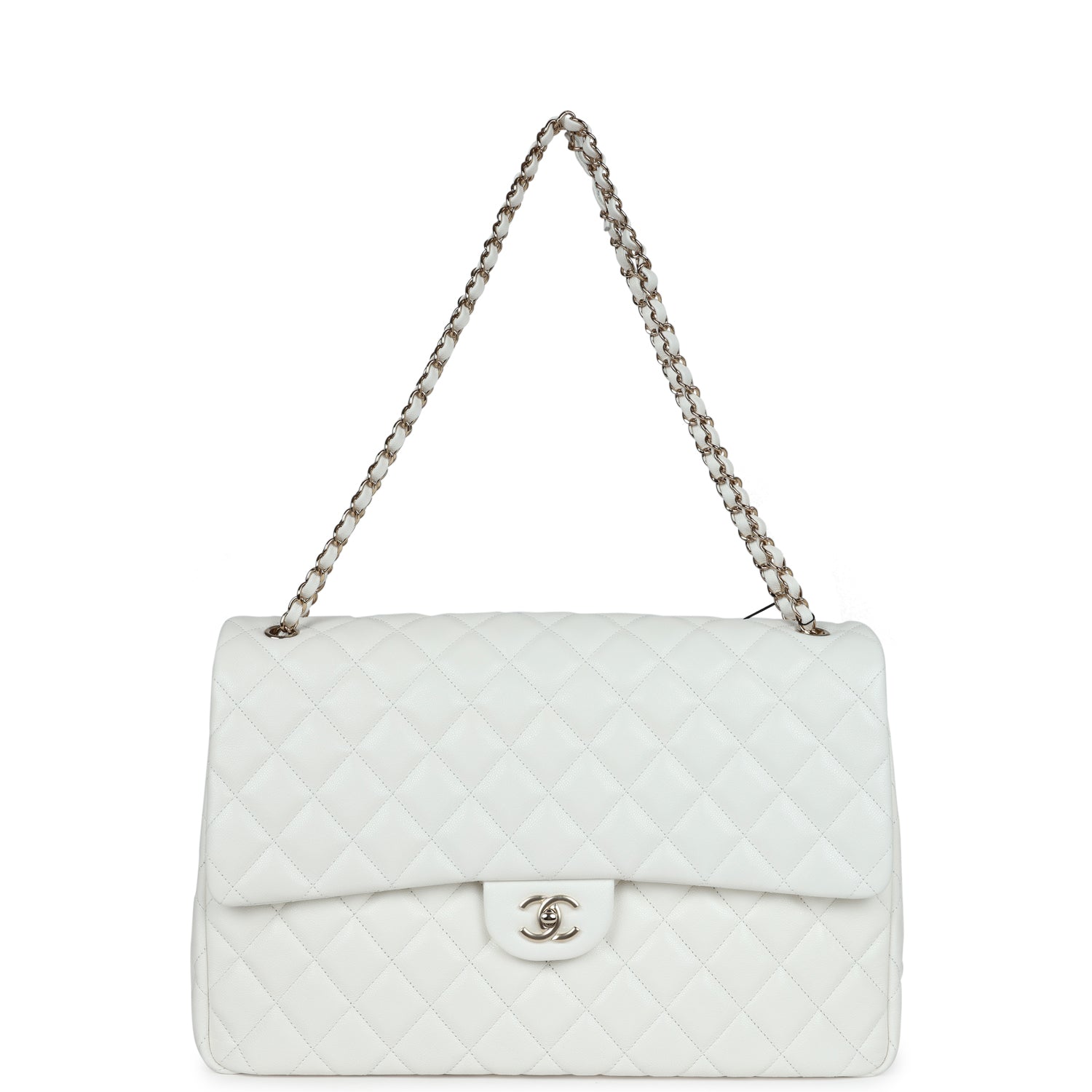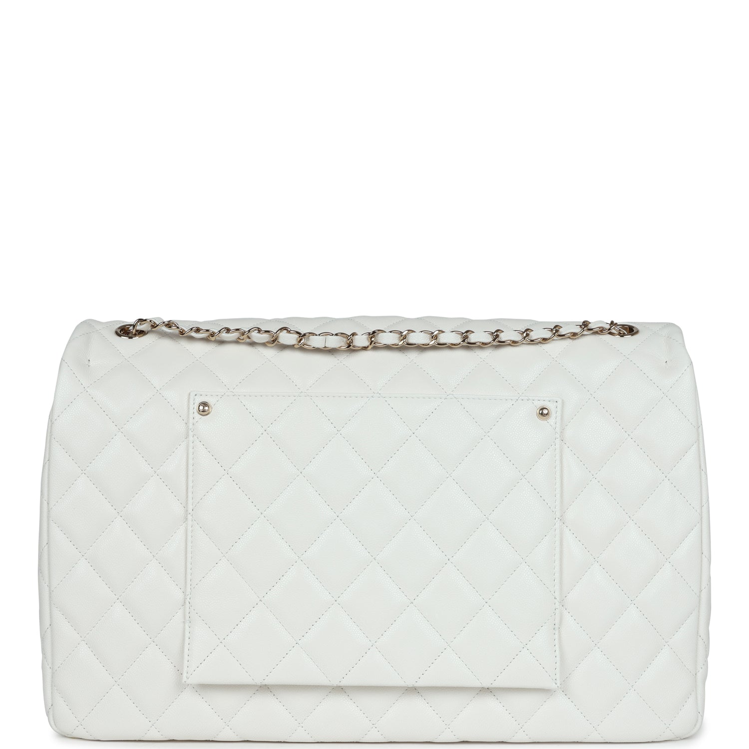 Chanel XXL Flap Bag White Shiny Caviar Light Gold Hardware