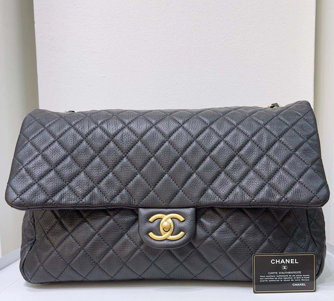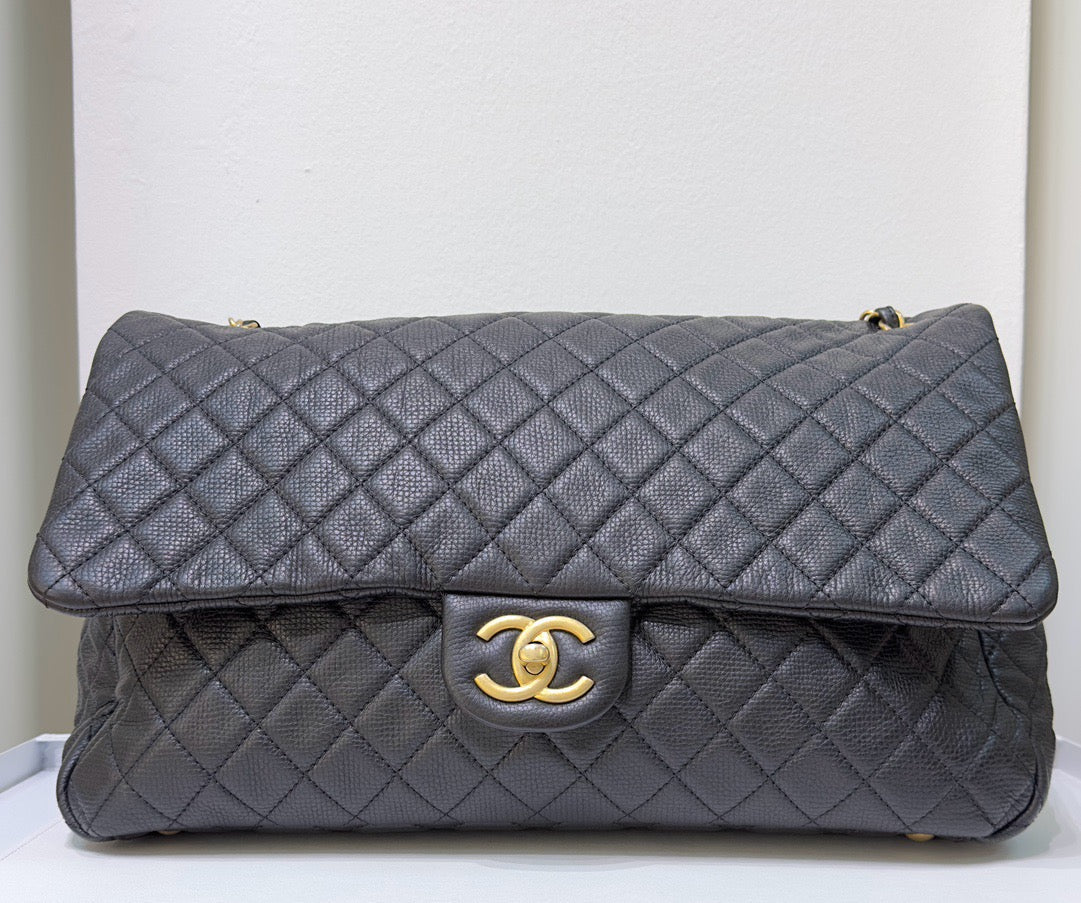 Chanel XXL Travel Calfskin Quilted Flap Bag Black GHW