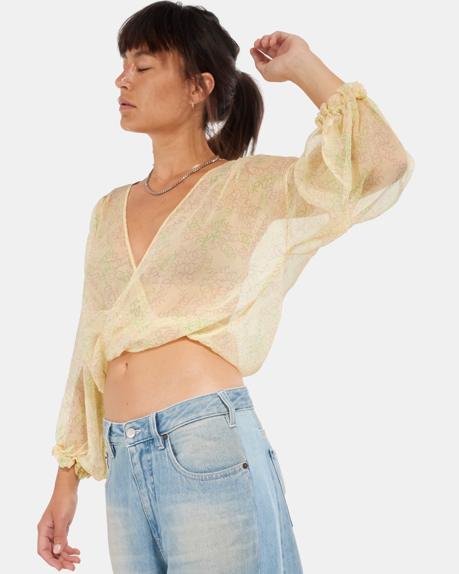 Chanel Yellow Silk CC Logo Wrap Top - 44