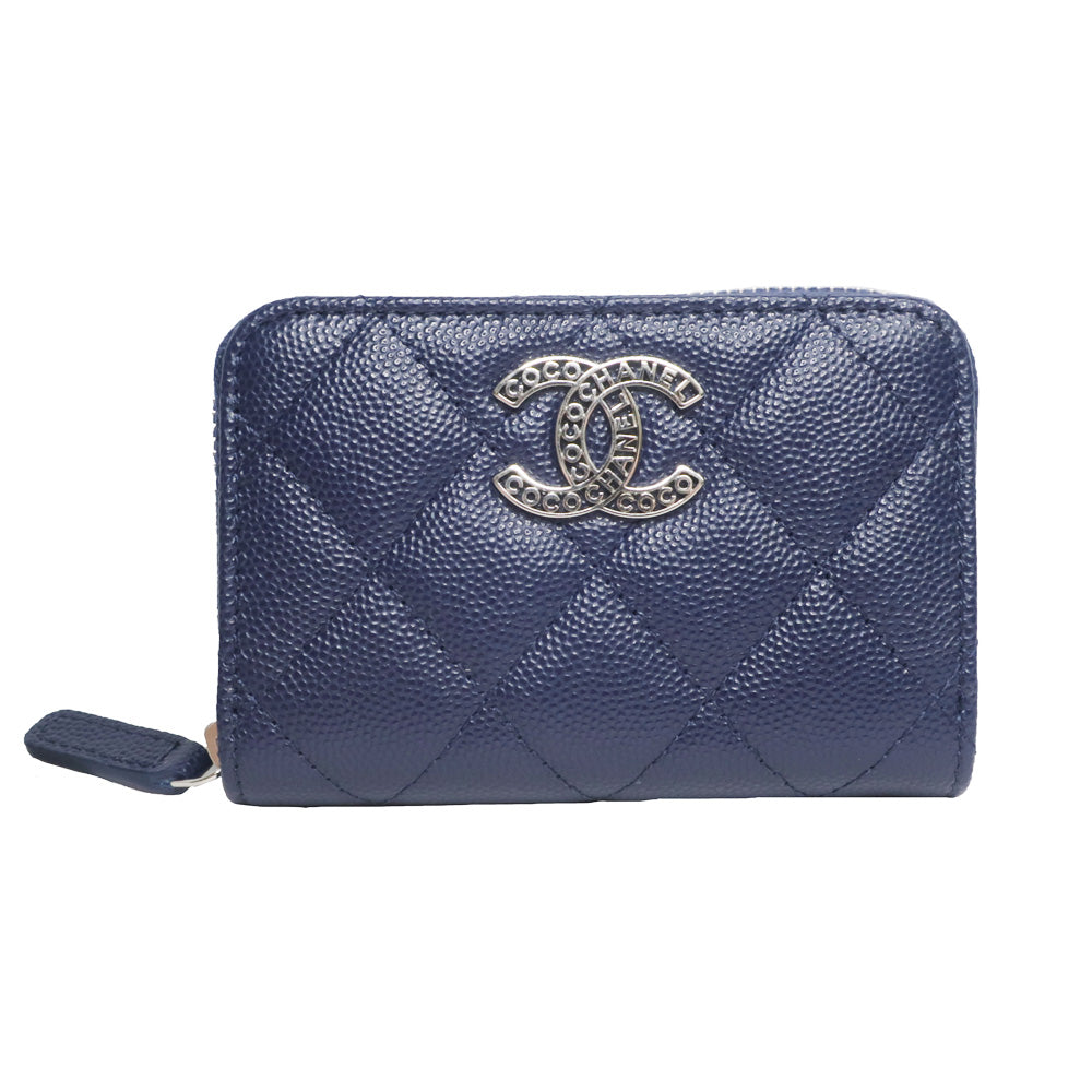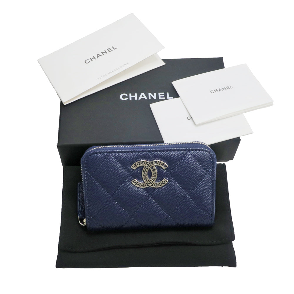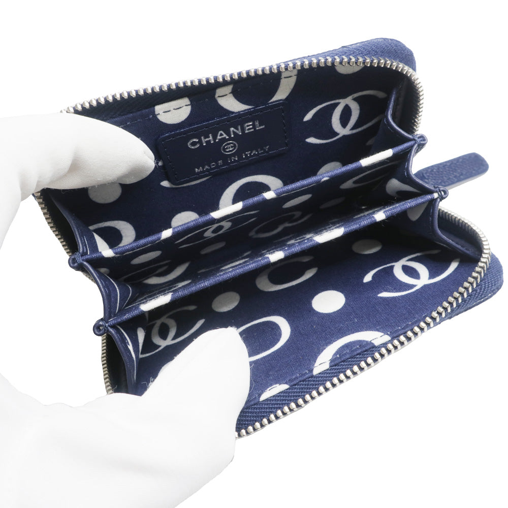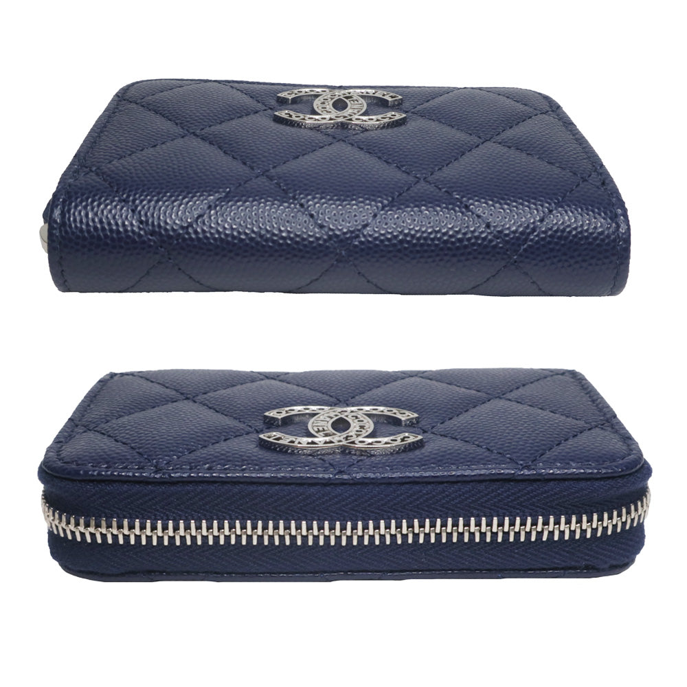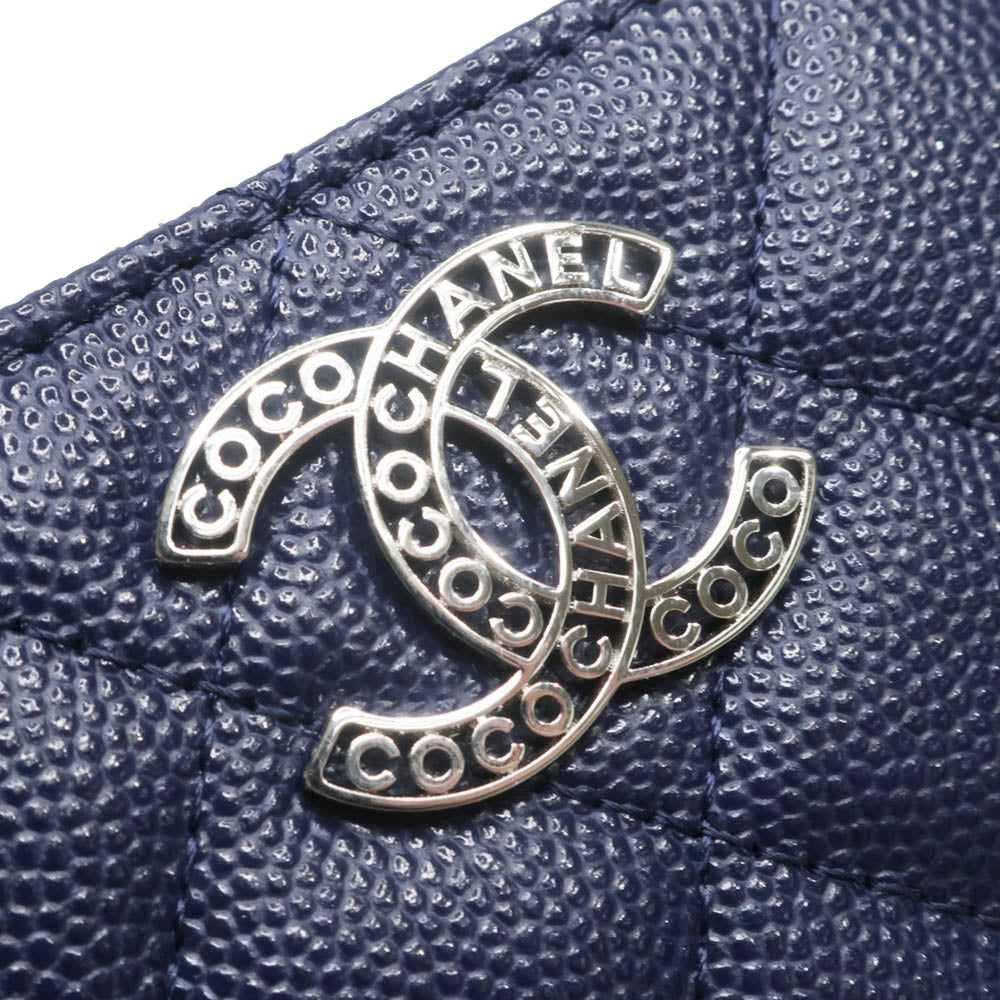 Chanel Zip Coin Pass Coin Case Wallet Matrasse Navy Caviar S