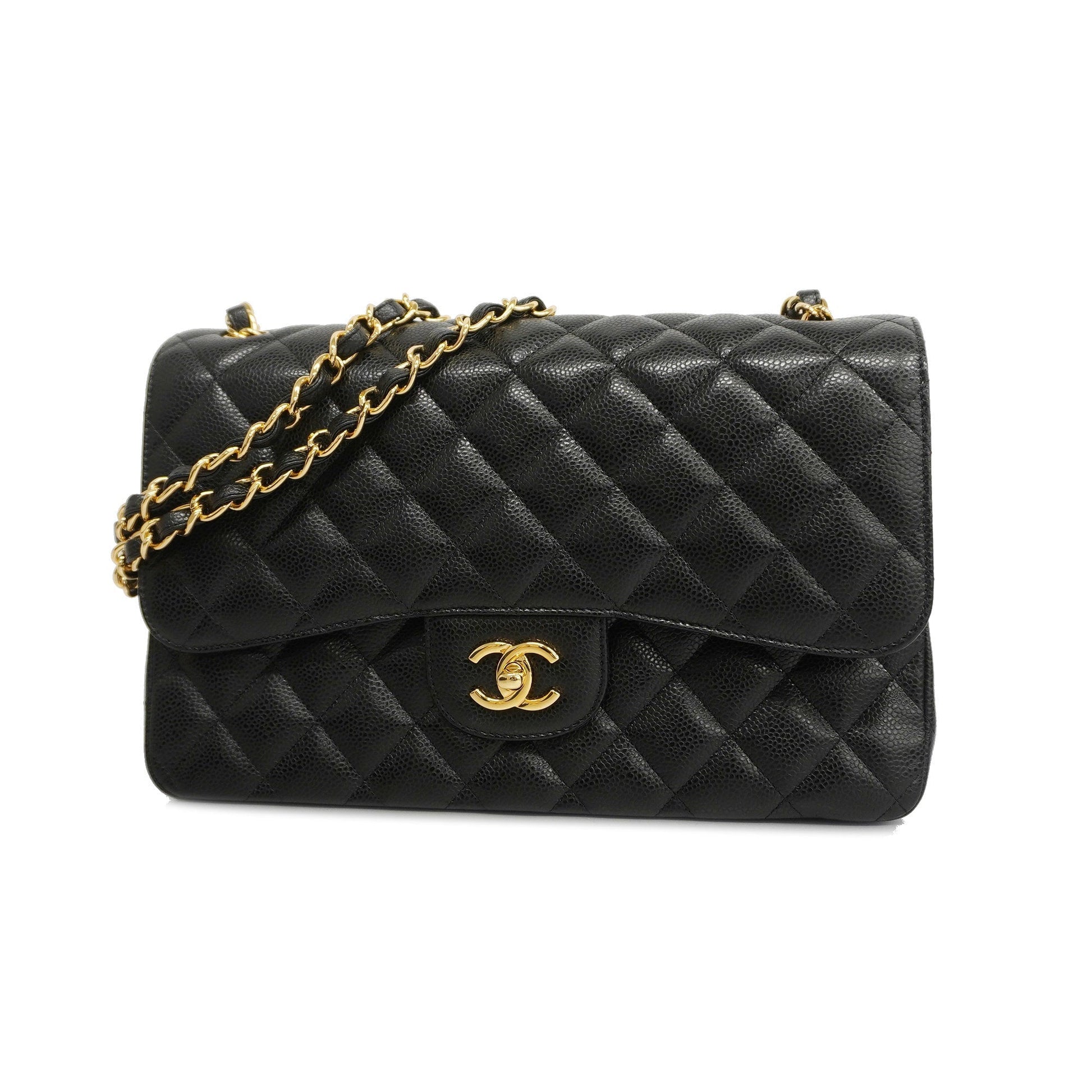 [3bd4366-e-g] Chanel Big Matelasse W Flap W Chain Women's Caviar Leather Shoulder Bag