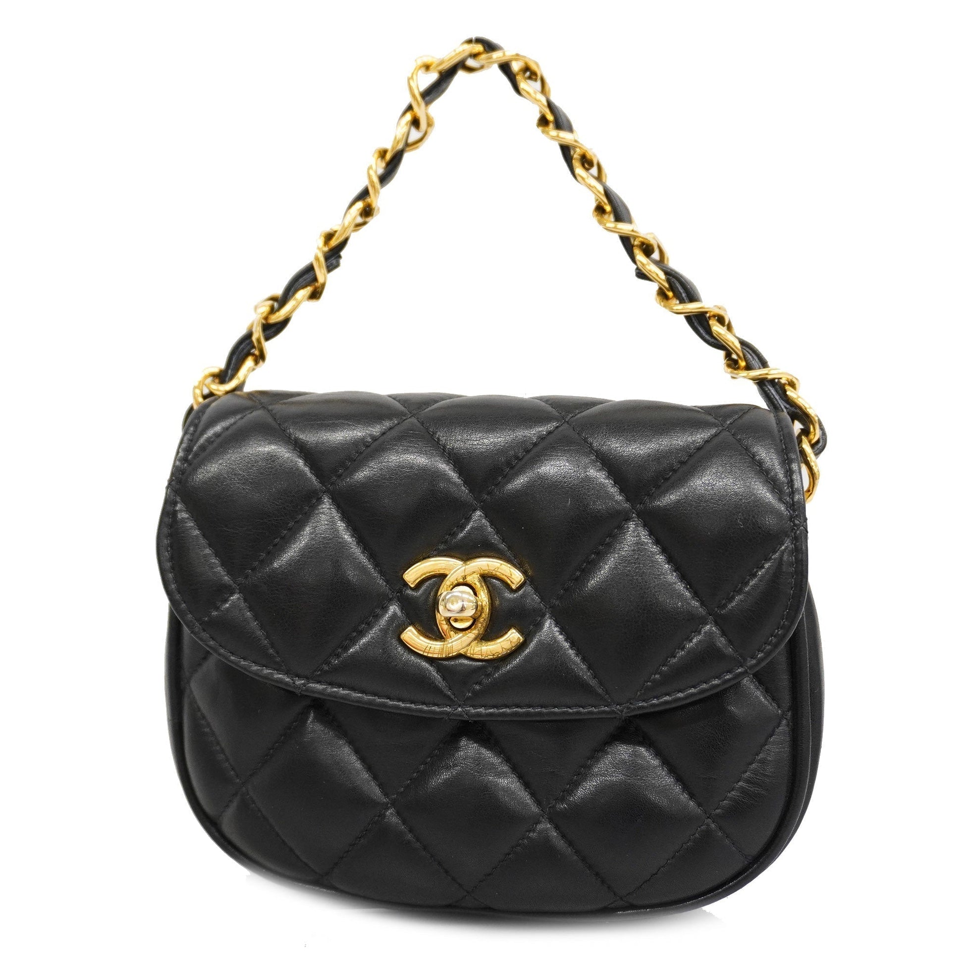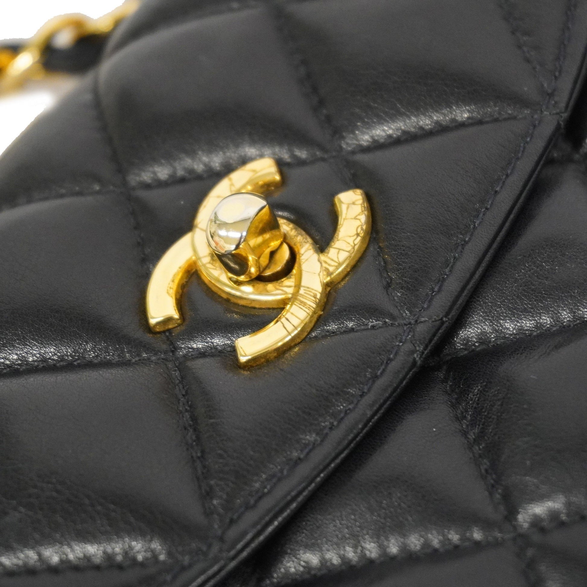 Chanel[3bd5060] handBag Matelasse lambskin black gold metal