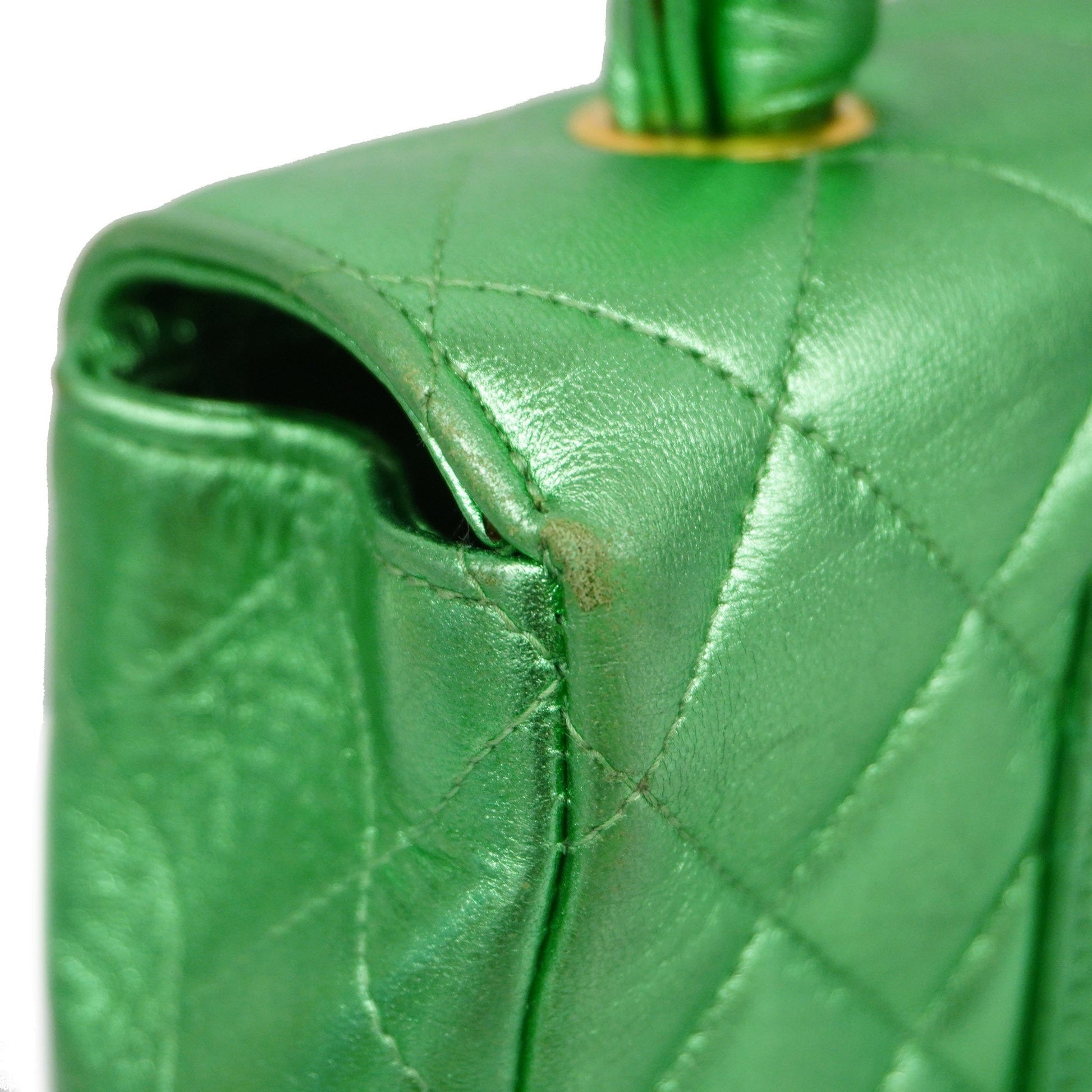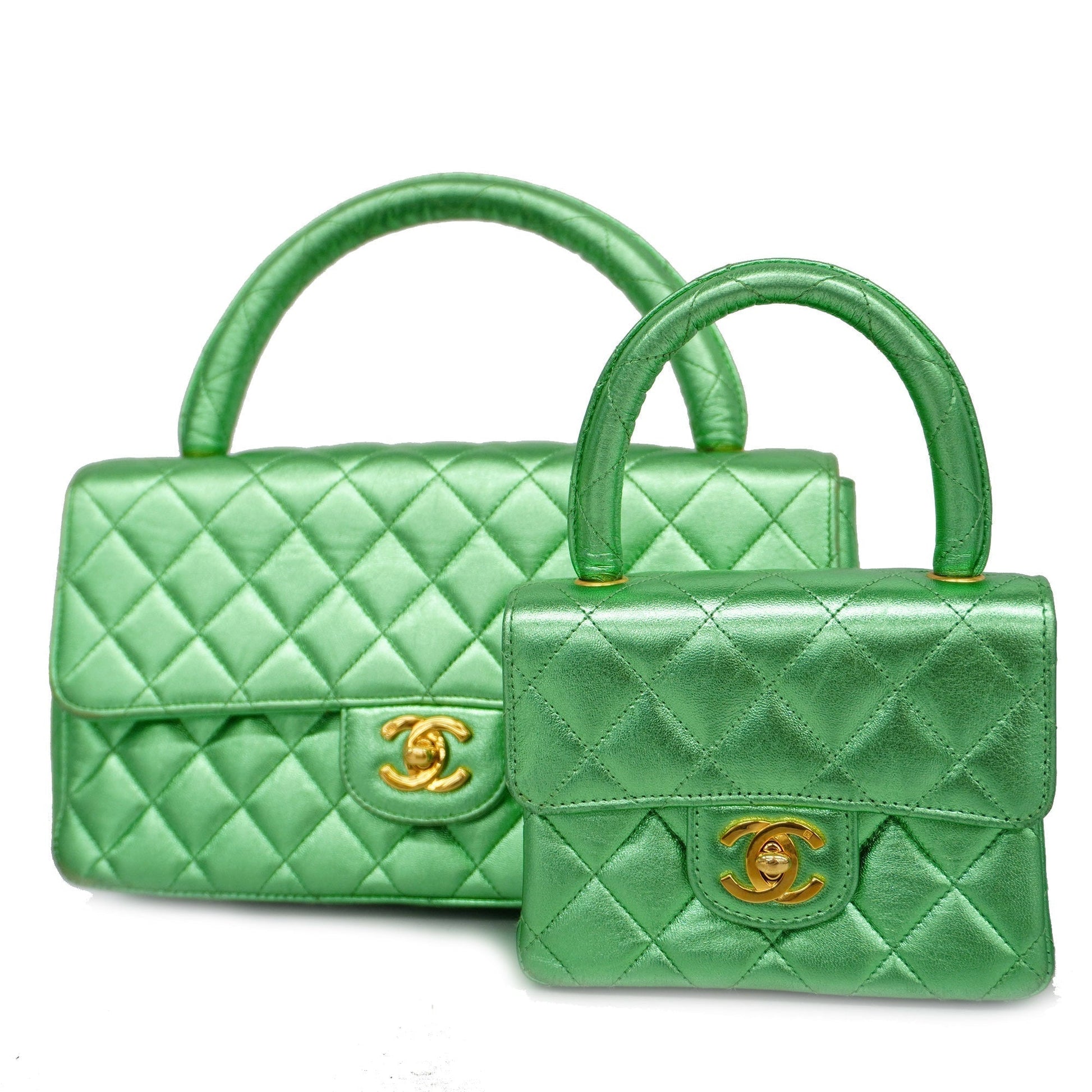 [3ca0443] ChanelhandBag Matelasse parent-child Bag lambskin metallic green gold metal