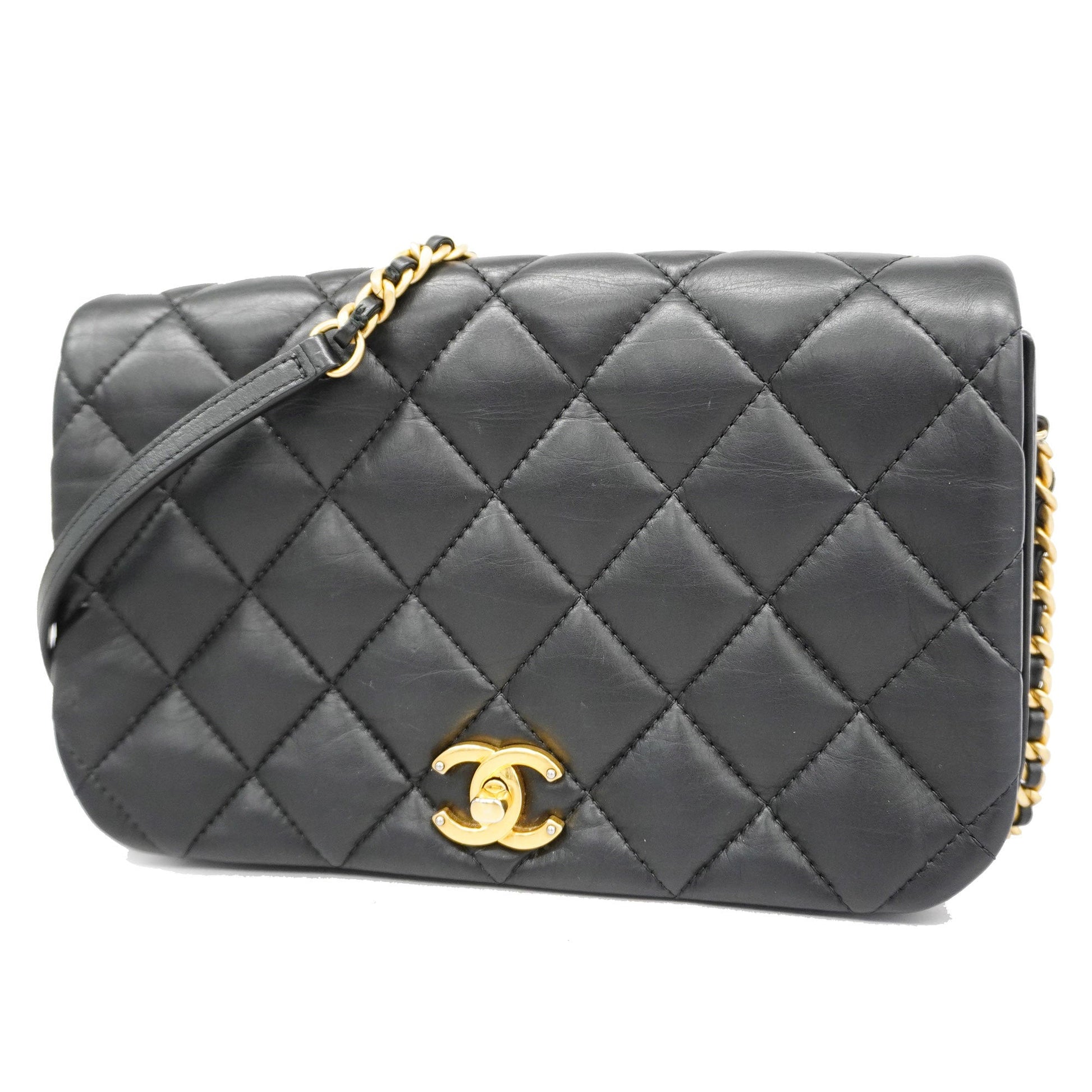 [3ca0444] ChanelShoulder Bag Matelasse Chain Shoulder Lambskin Black Gold metal