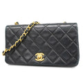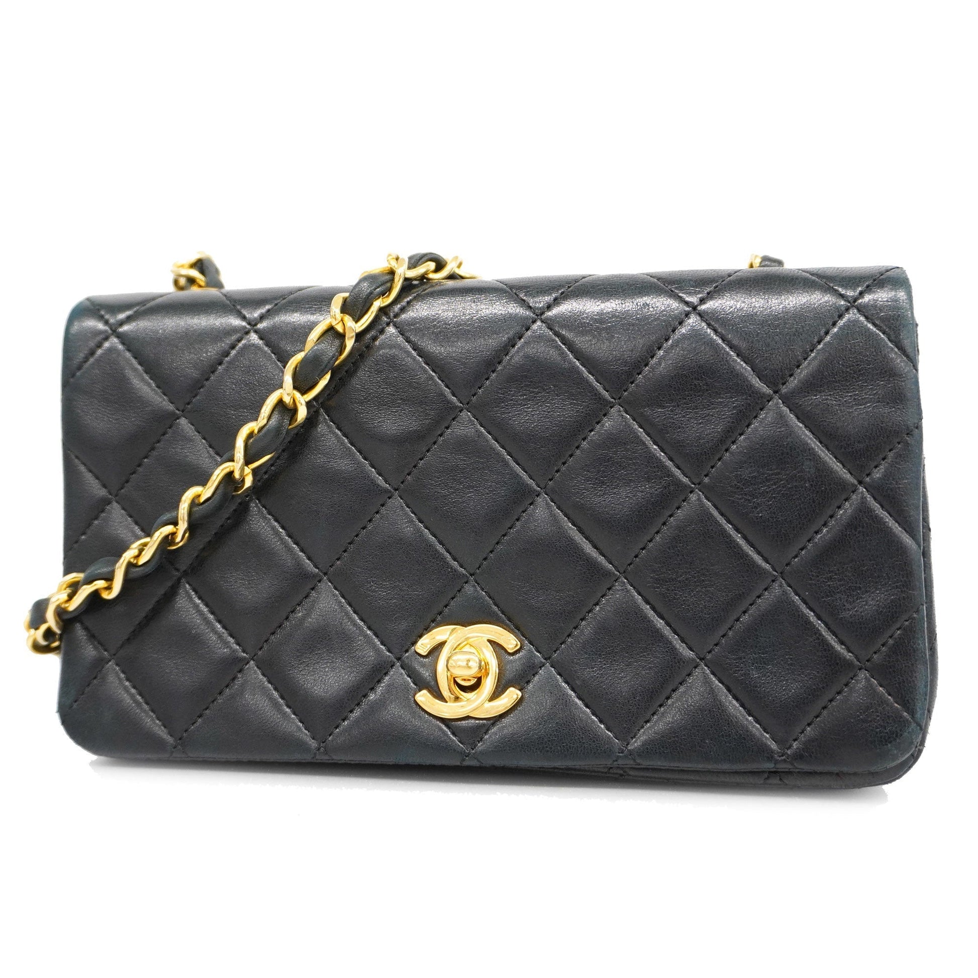 [3ca0446] ChanelShoulder Bag Matelasse Single Chain Lambskin Black Gold metal