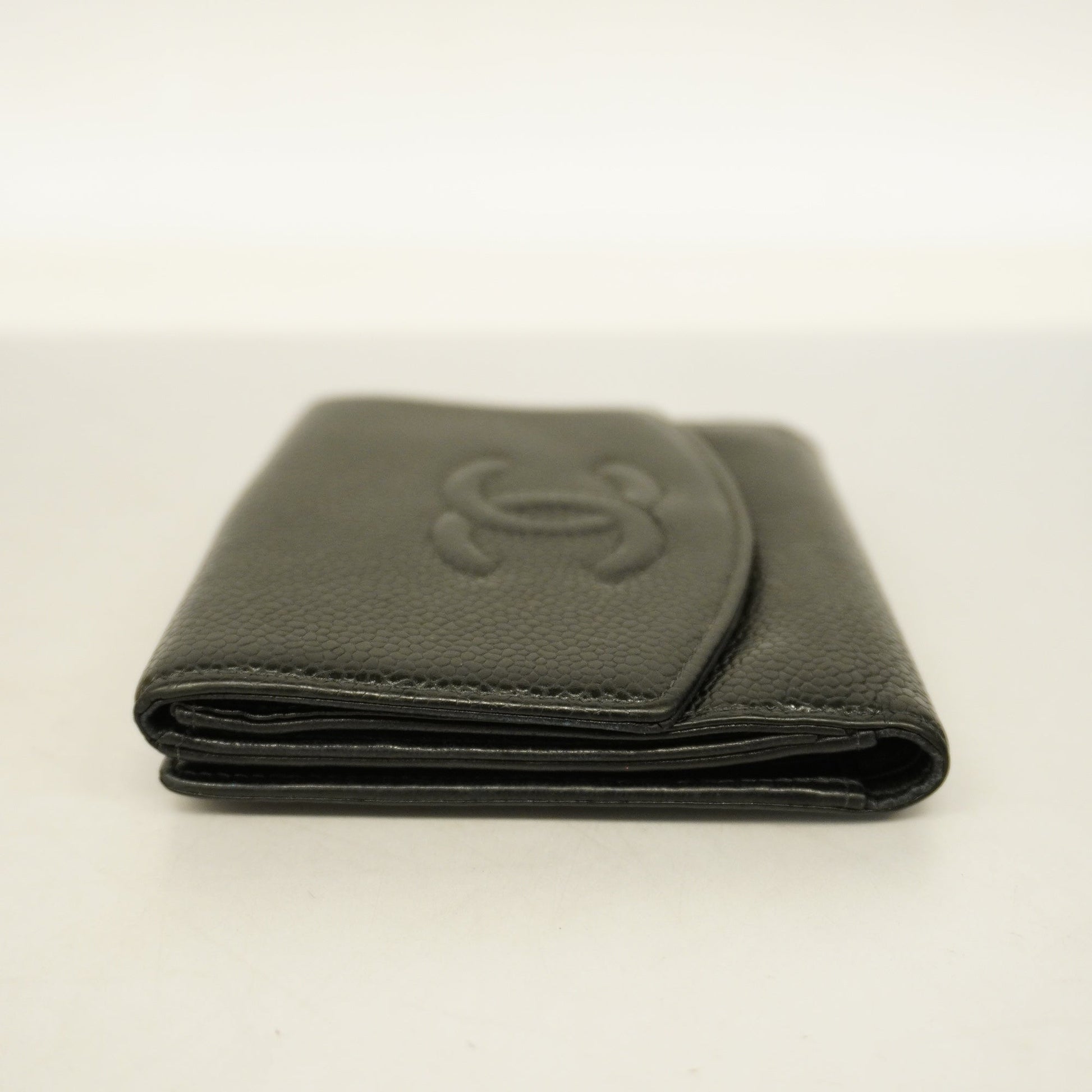 Chanel[3cc2369] Auth wallet caviar skin black gold metal