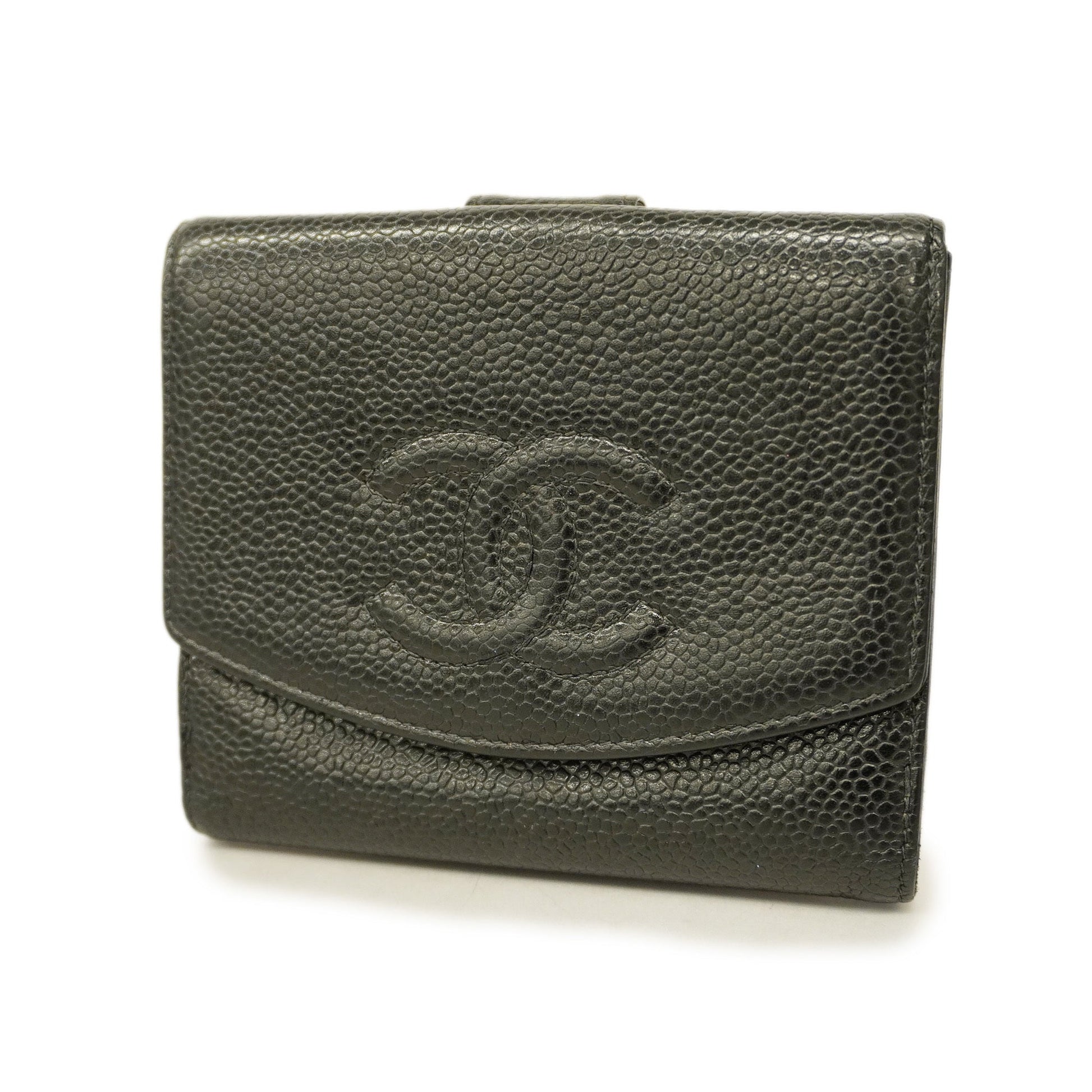 [3cc2369] Auth Chanel wallet caviar skin black gold metal