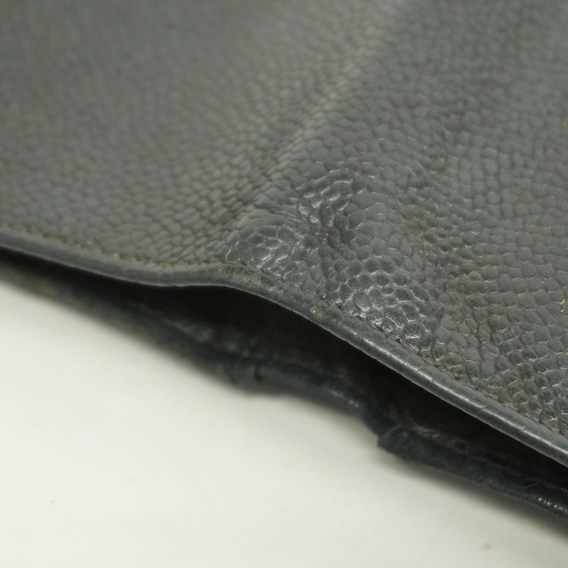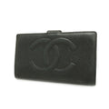 Chanel[3cc2399] Auth long wallet caviar skin black gold metal