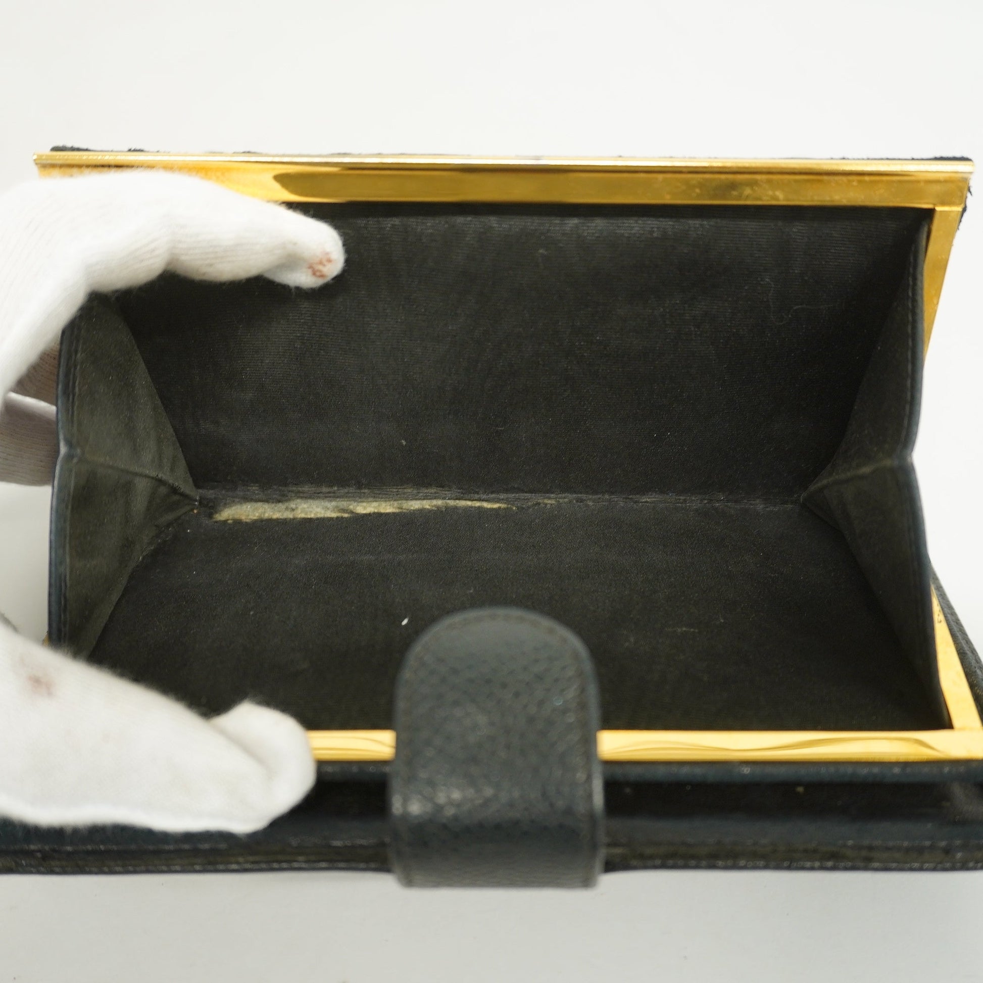 [3cc2399] Auth Chanel long wallet caviar skin black gold metal