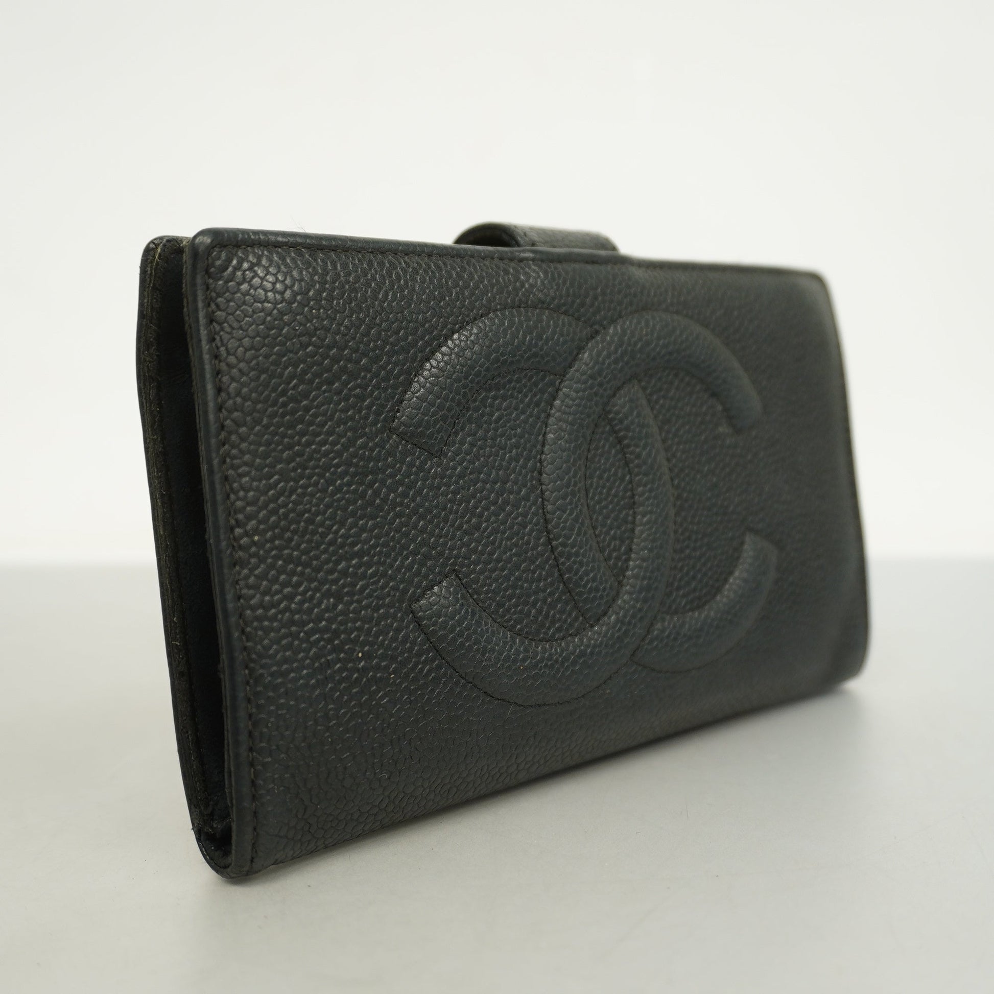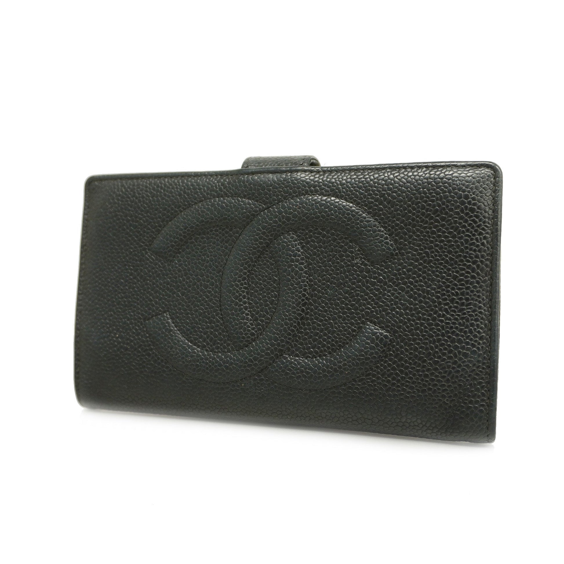 Chanel[3cc2399] long wallet caviar skin black gold metal