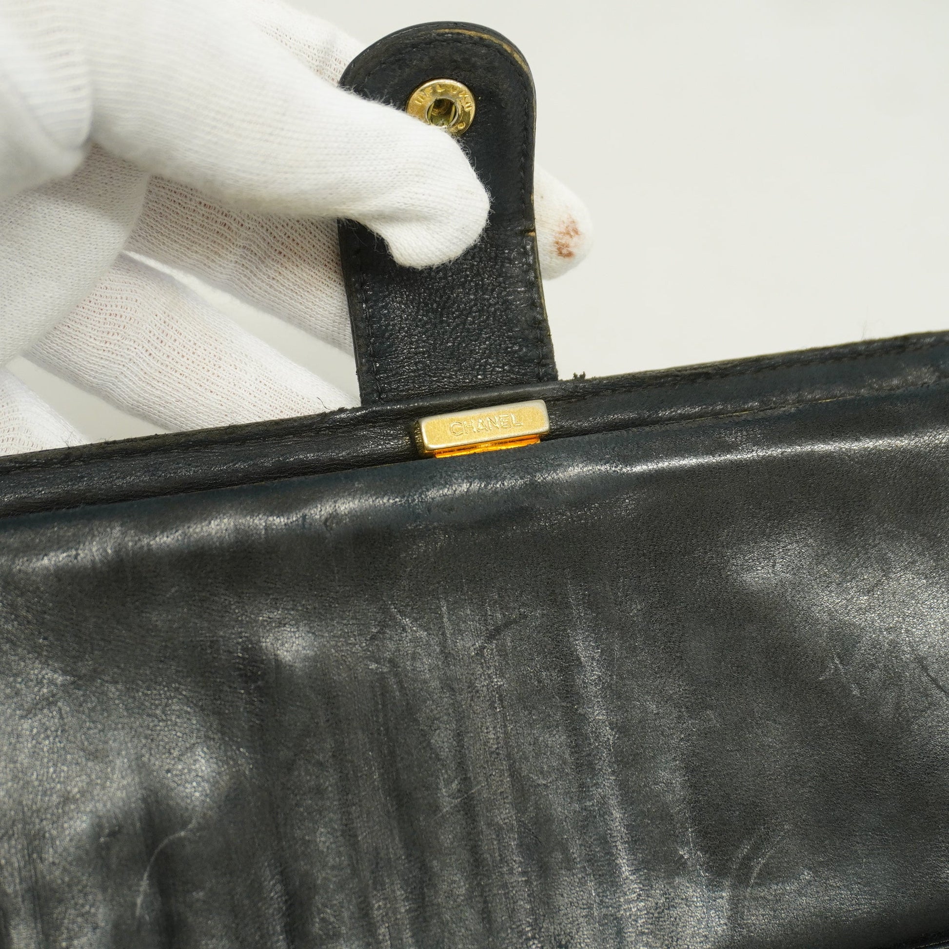 [3cc2399] Chanellong wallet caviar skin black gold metal