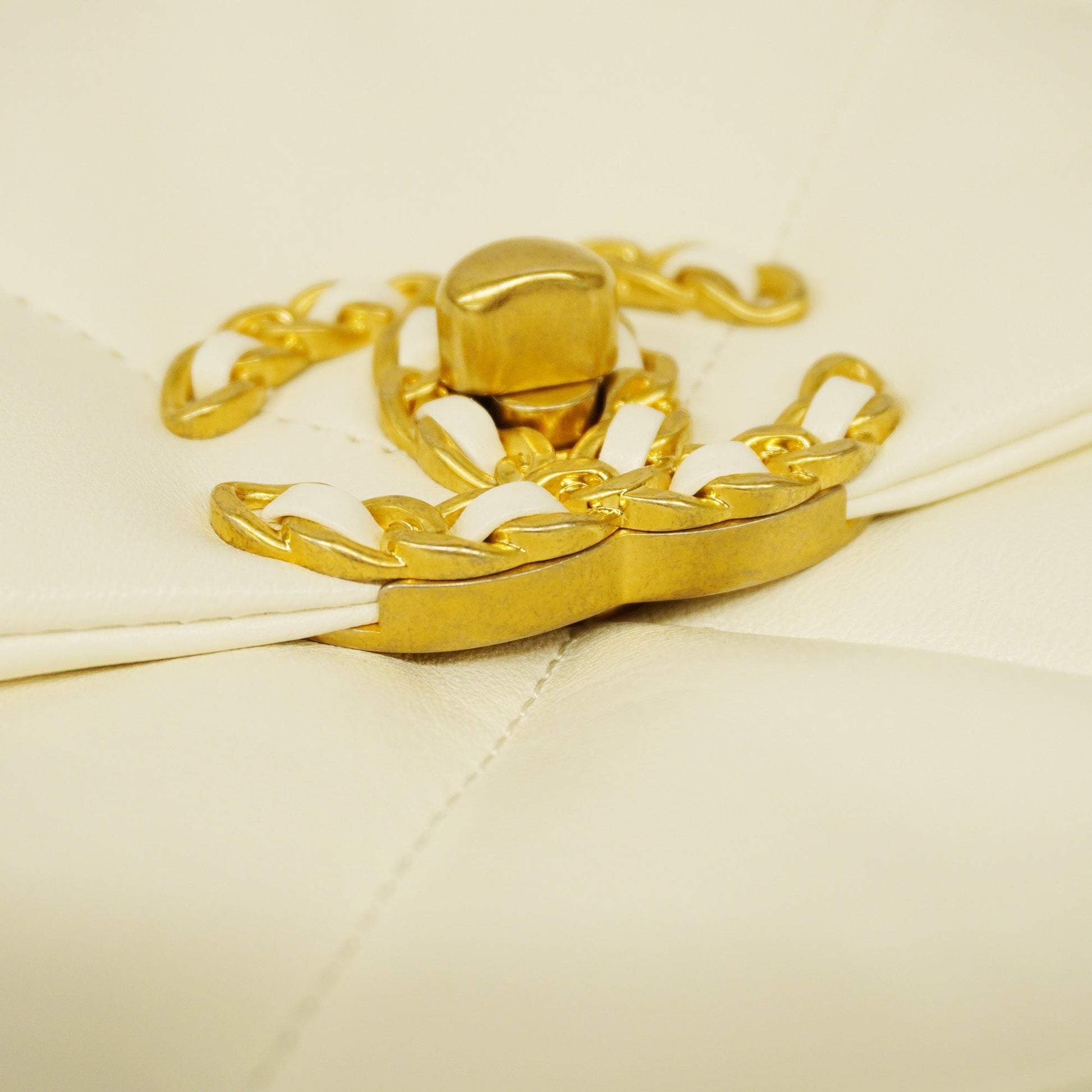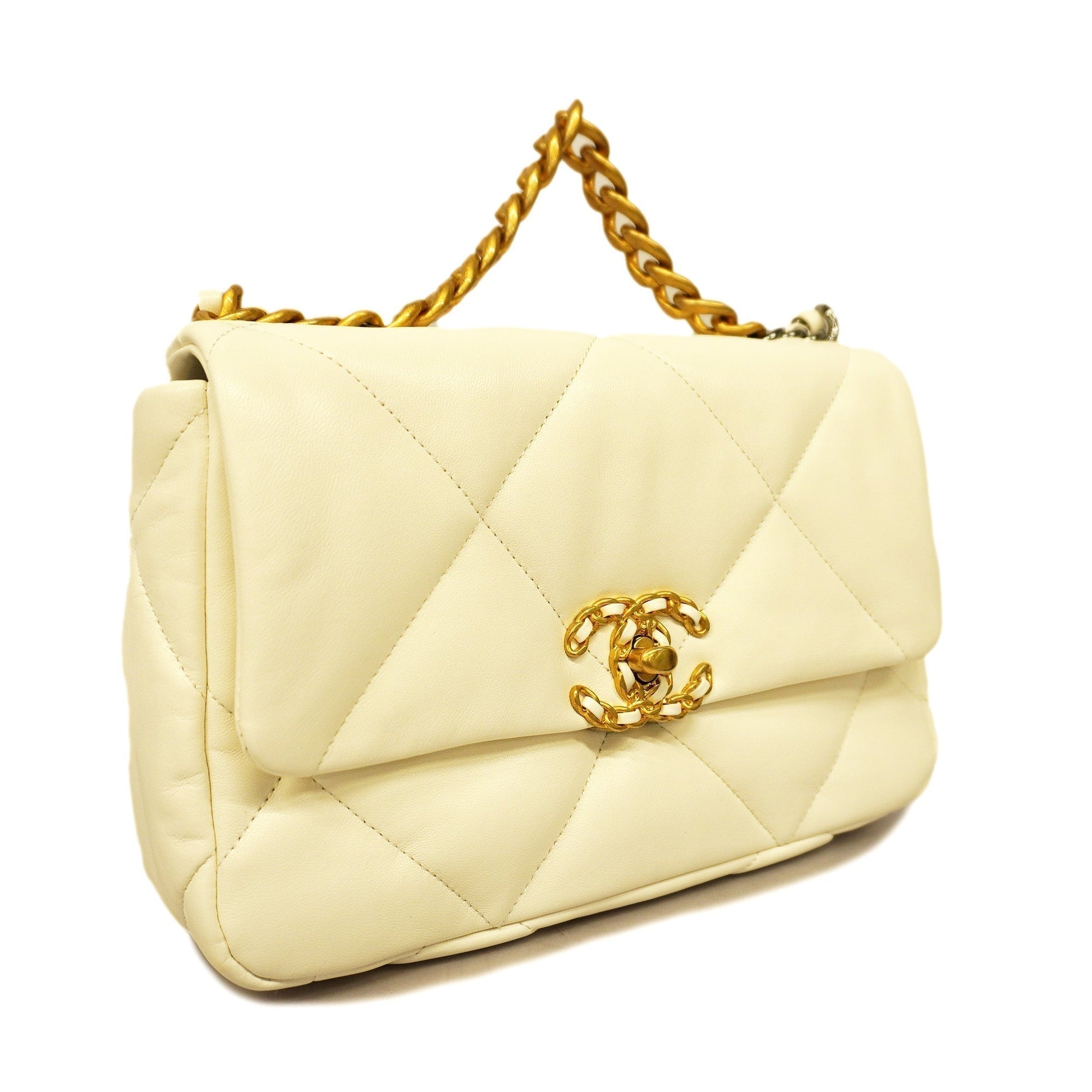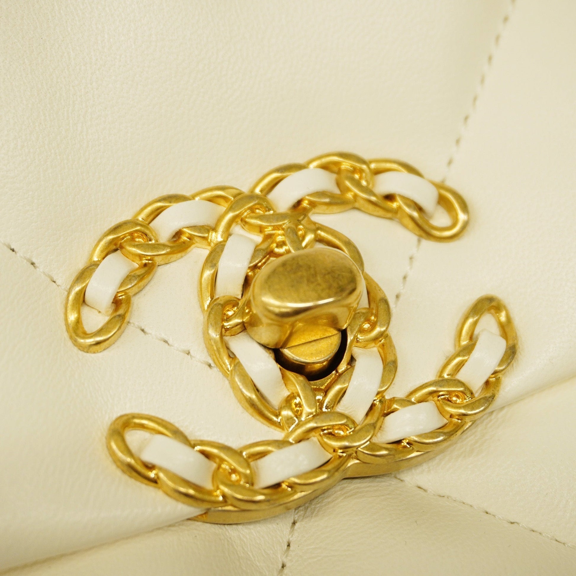 Auth Chanel 1.9 Chain Shoulder Women's Leather Shoulder Bag White