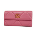 ChanelAuth 19 Gold Hardware Women's Lambskin Long Wallet [bi-fold] Pink