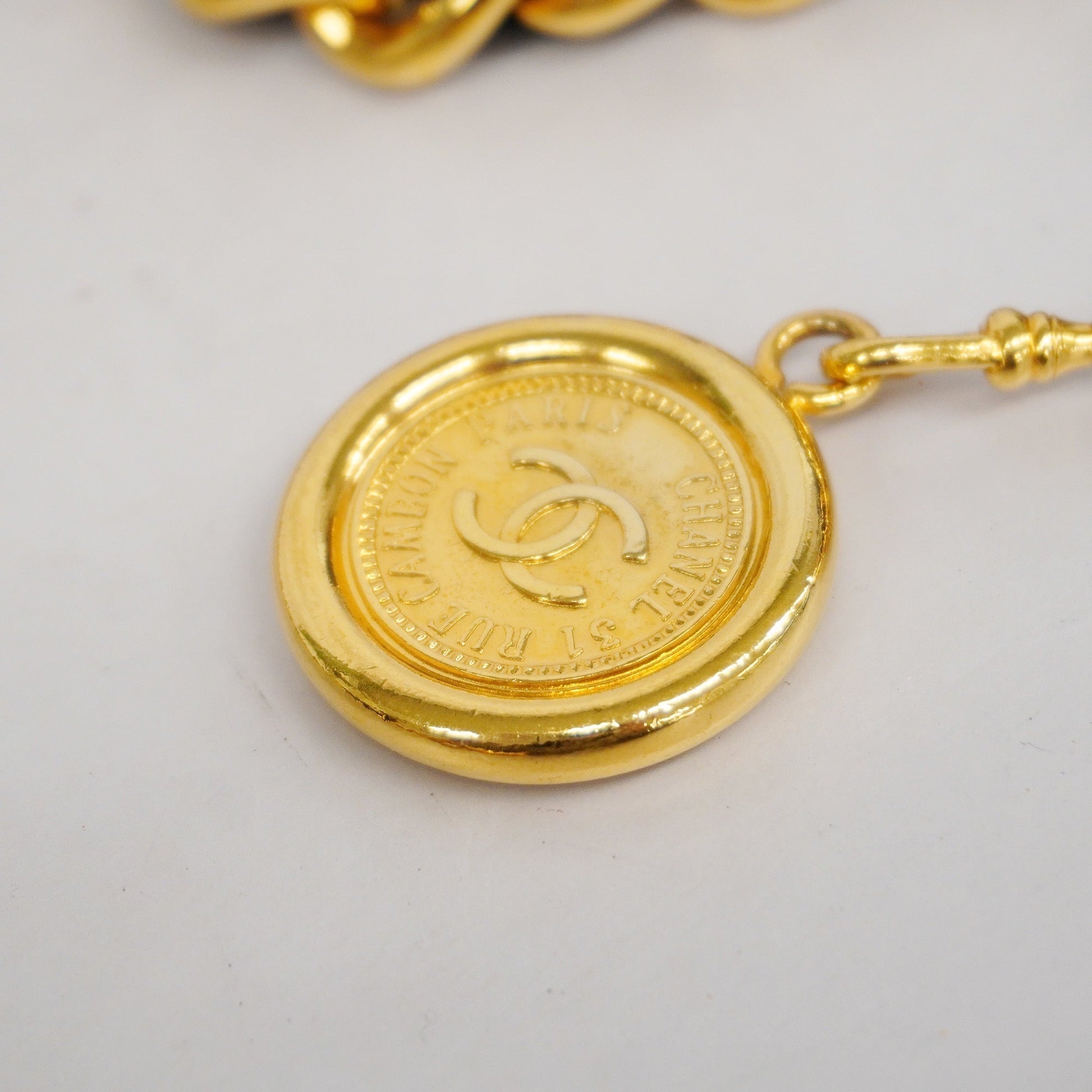 Auth Chanel Belt Gold Metal Women's Leather Chain Belt Black