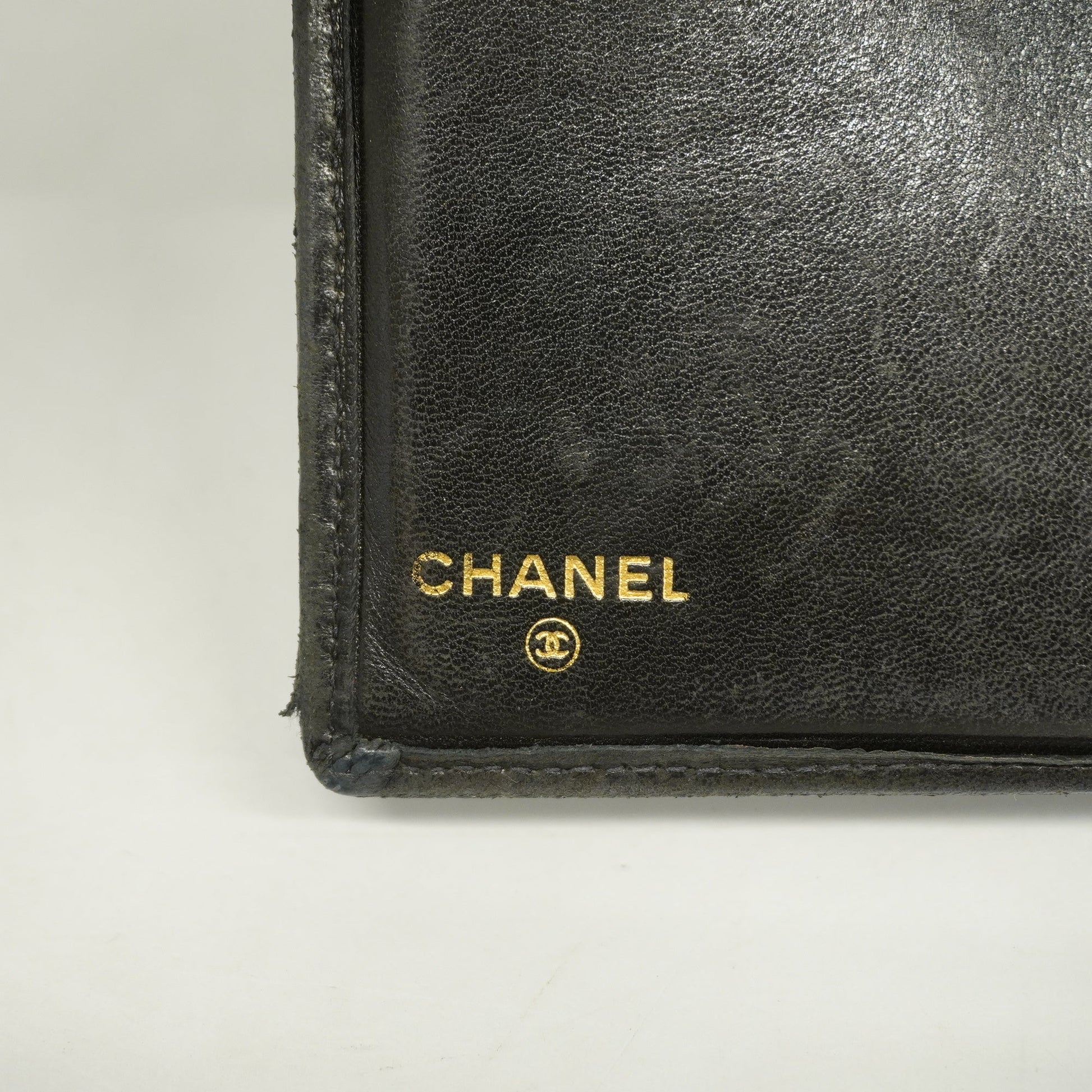 ChanelAuth Bicolor Bi-fold Wallet Women's Lambskin Black