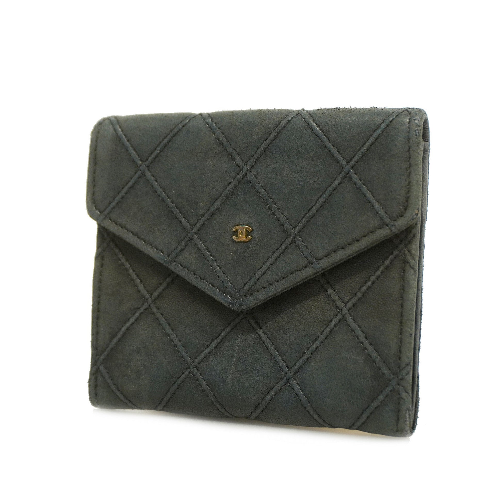 ChanelAuth Bicolor Gold Metal Fittings Lambskin Coin Purse/coin Case Black