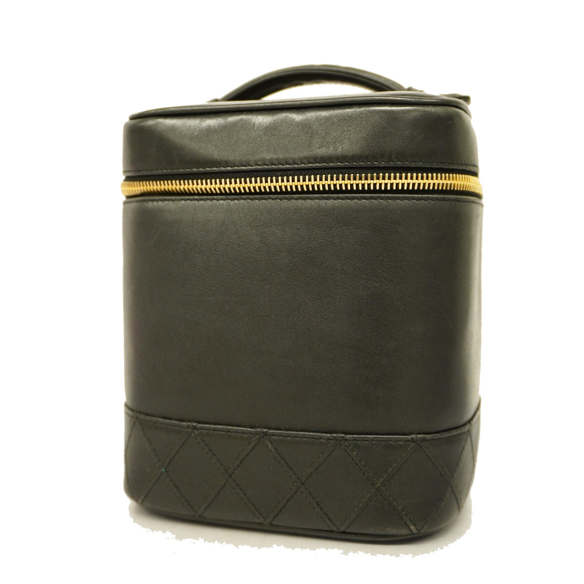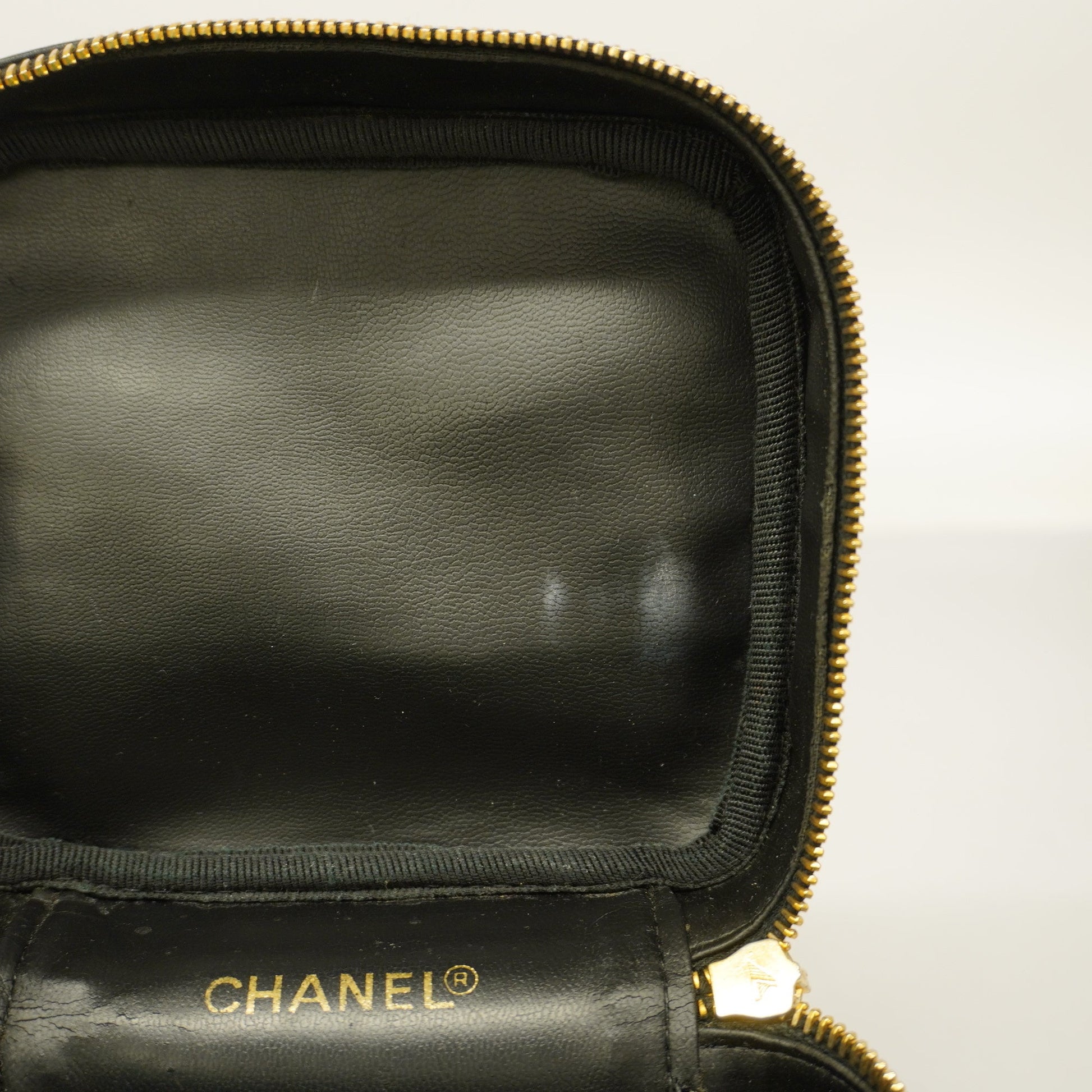 Auth Chanel Bicolor Vanity Bag Women's Leather Vanity Bag Black