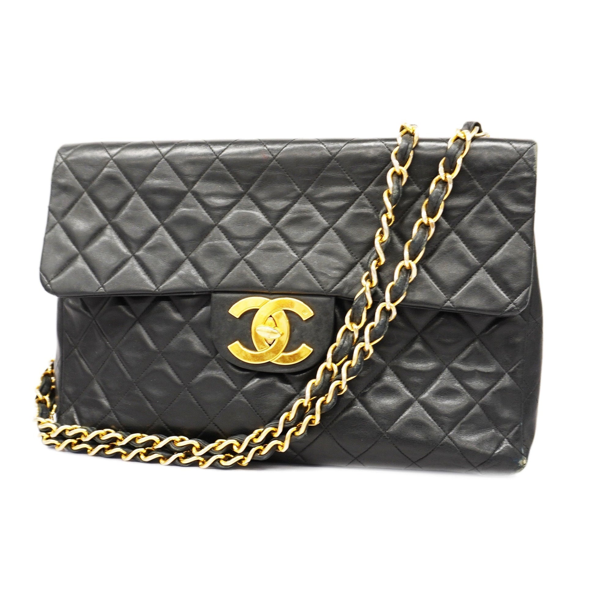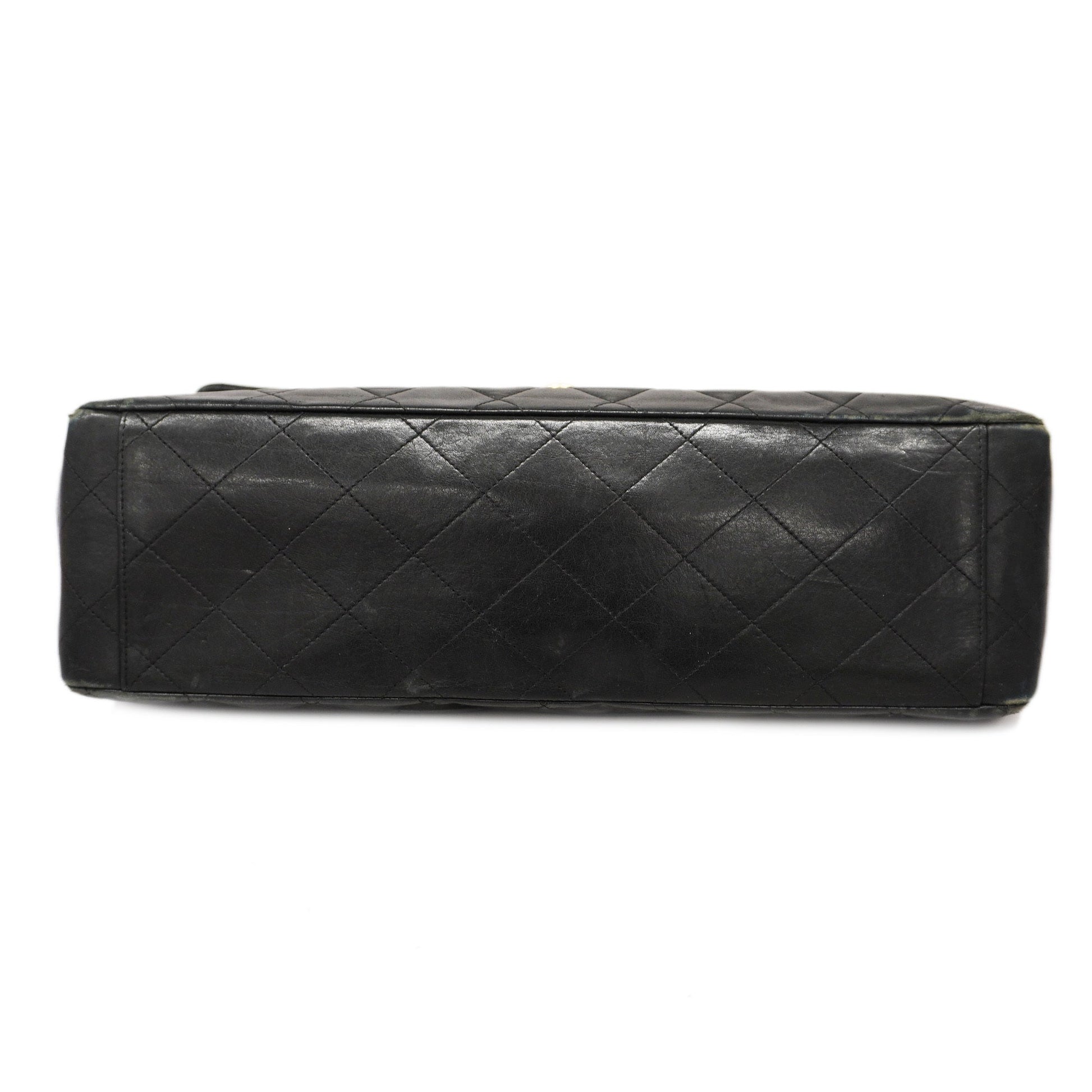 ChanelAuth Big Matelasse W Chain Women's Leather Shoulder Bag Black