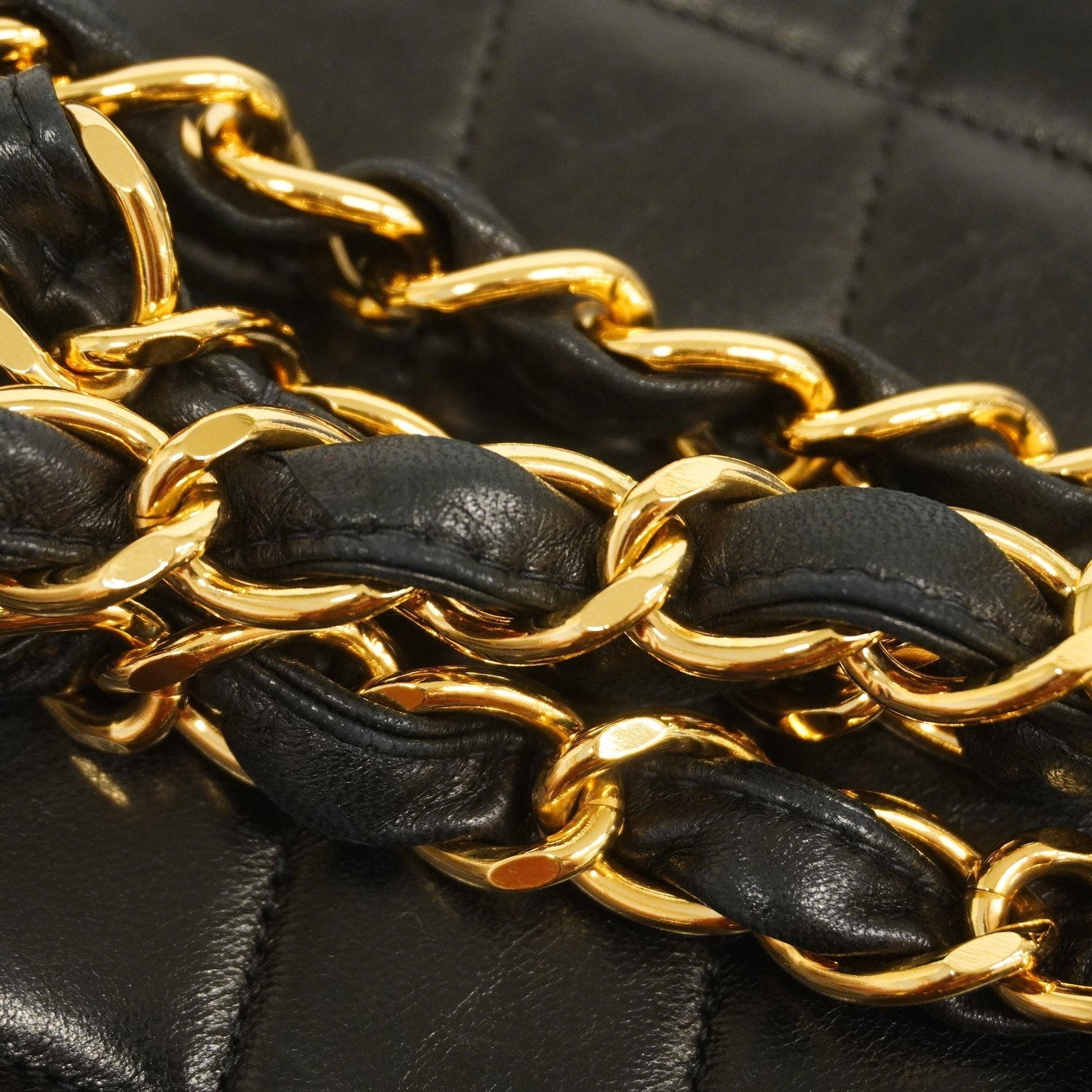 Auth Chanel Big Matelasse W Chain Women's Leather Shoulder Bag Black