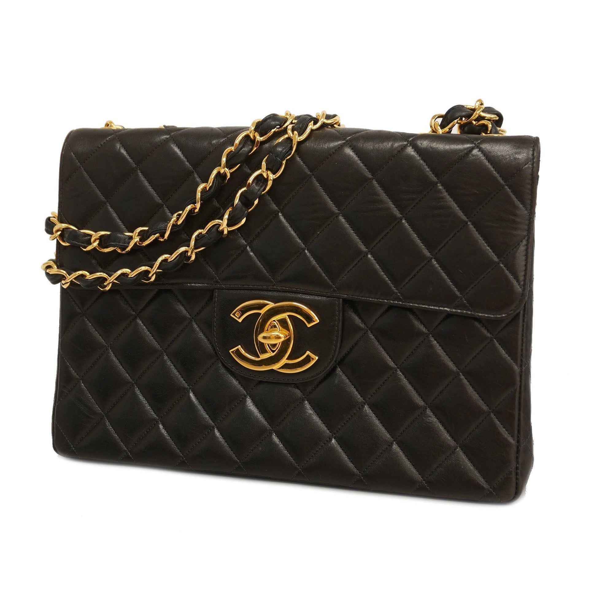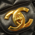 ChanelAuth Big Matelasse W Chain Women's Leather Shoulder Bag Black