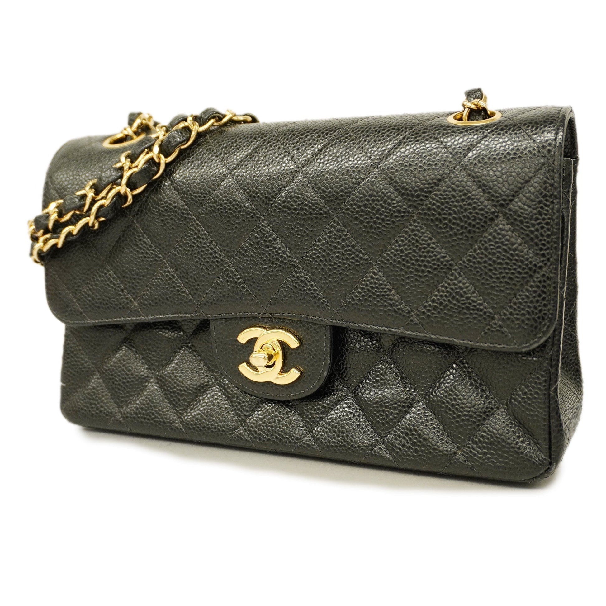 ChanelAuth Big Matelasse W Flap W Chain Women's Caviar Leather Shoulder Bag
